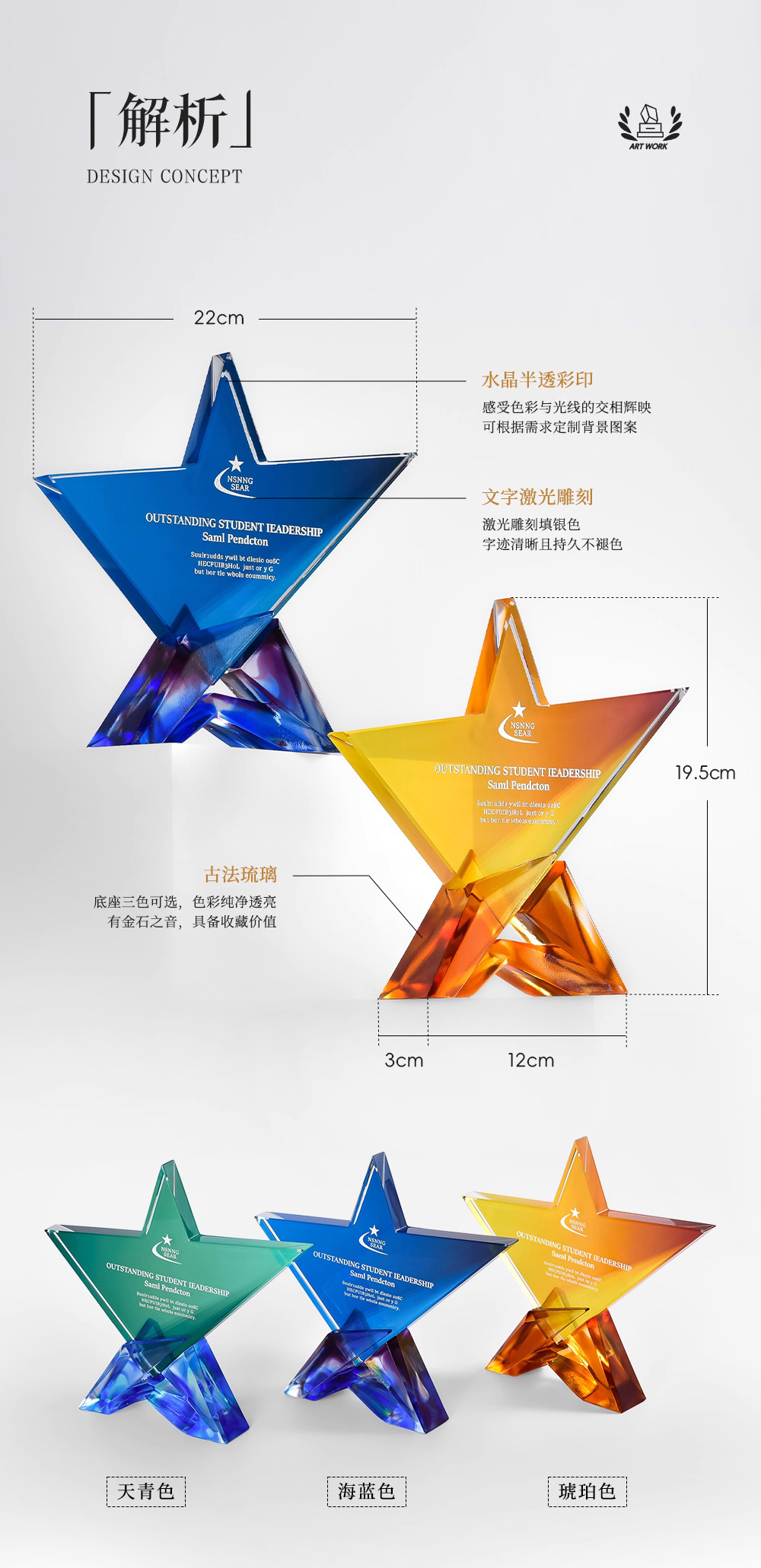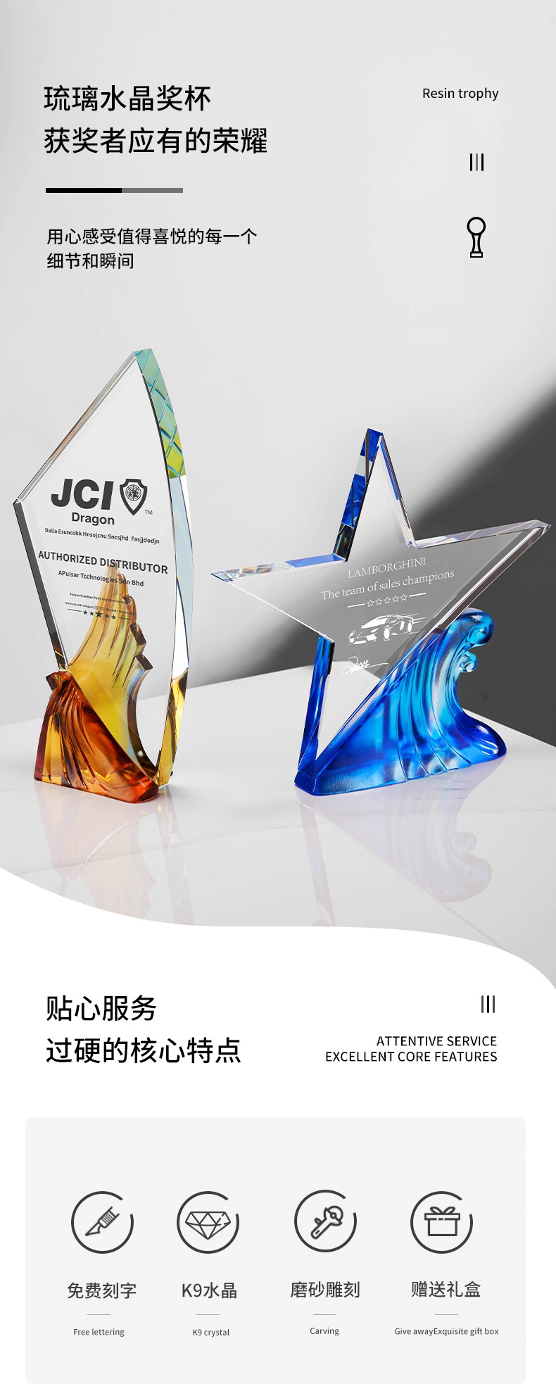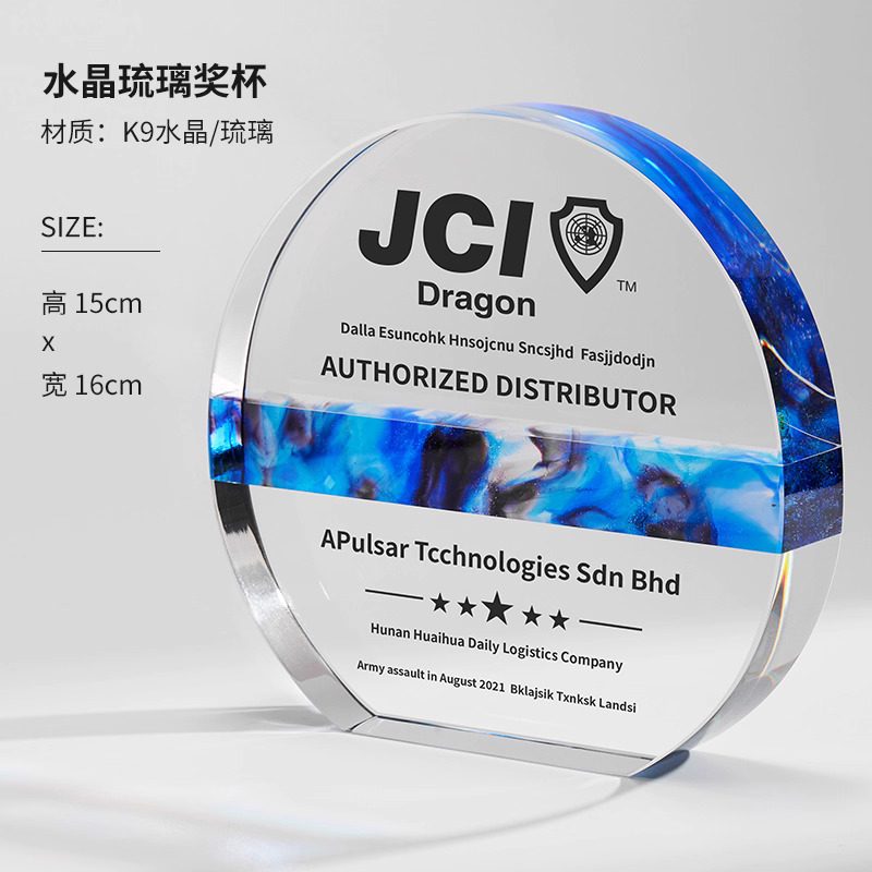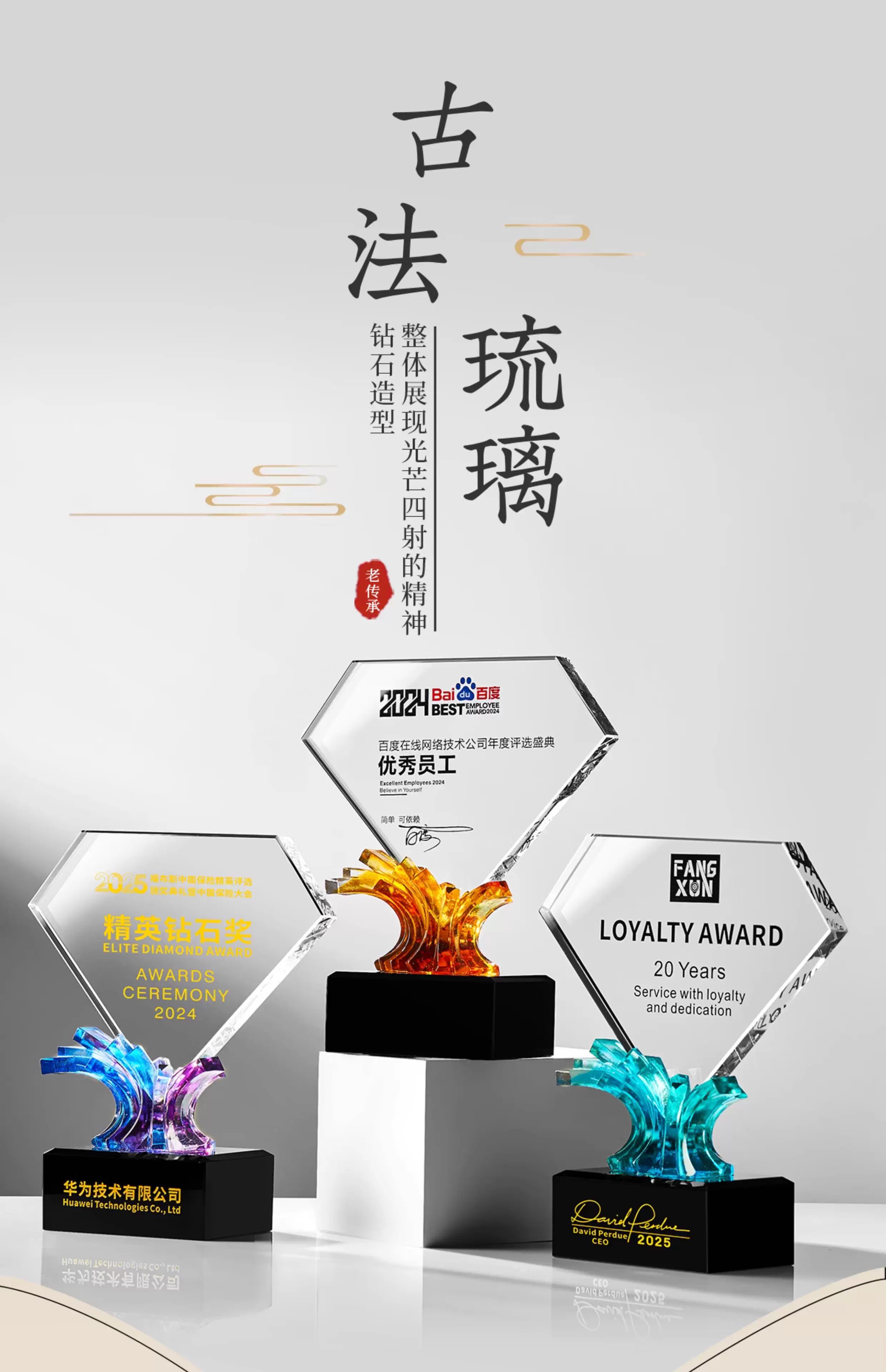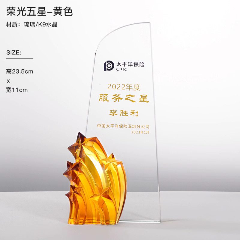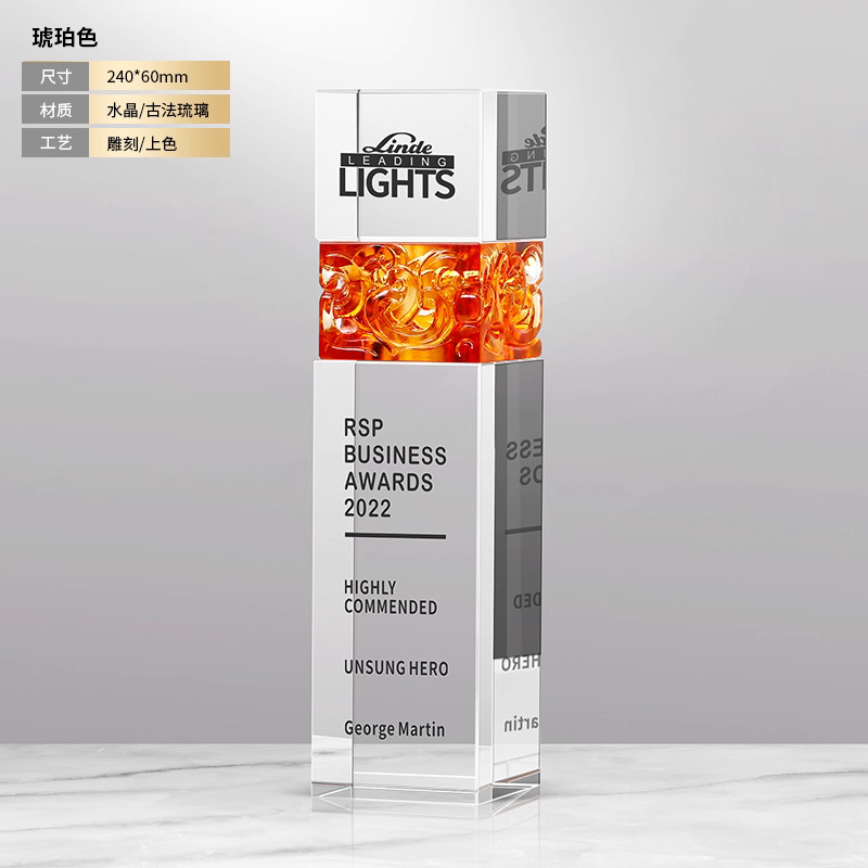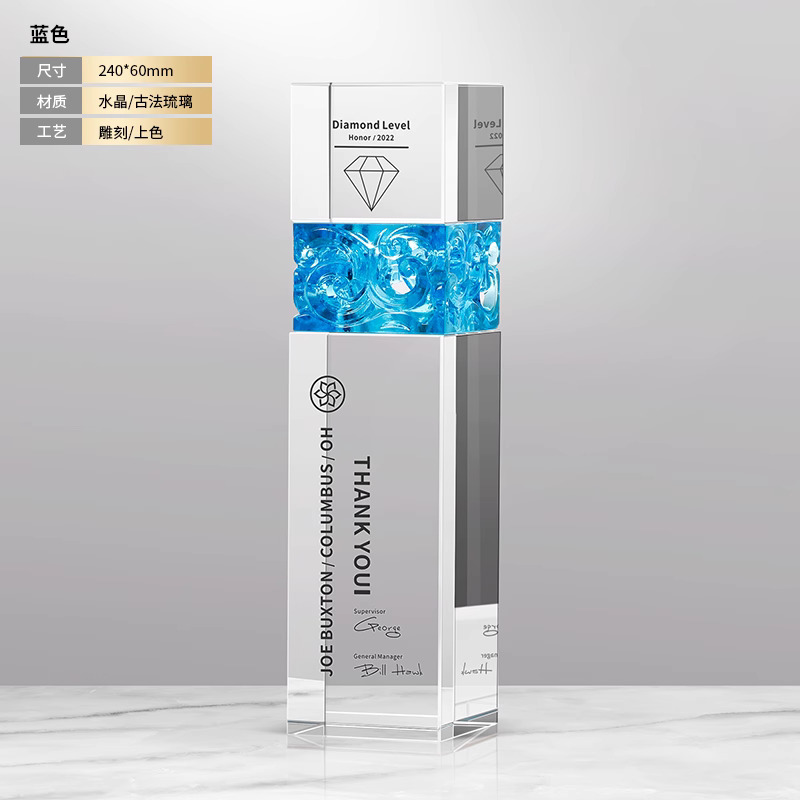 281 / 【琉璃水晶奖杯】新款高档创意琉璃水晶奖杯定制定做奖牌订做制作优秀员工年会颁奖