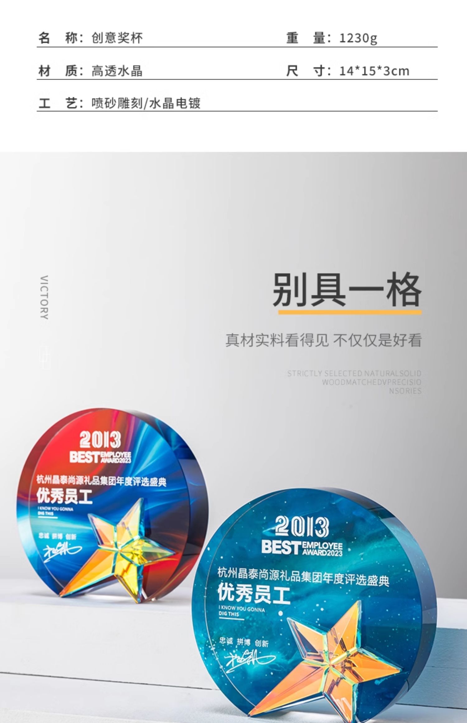 210 / 高档炫彩创意彩色水晶奖杯比赛冠军企业周年年会优秀员工荣誉纪念