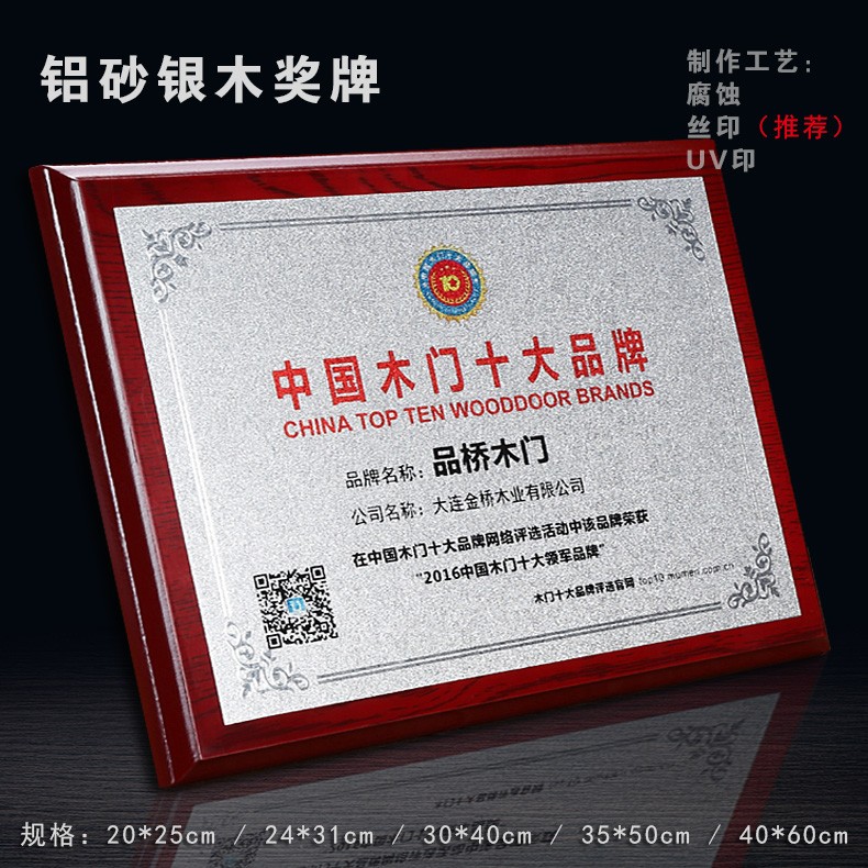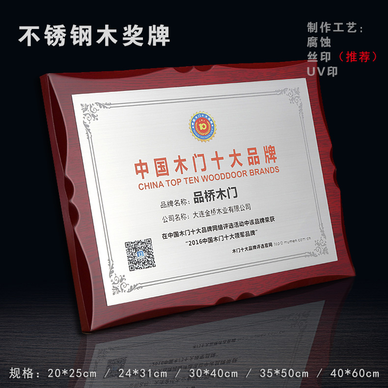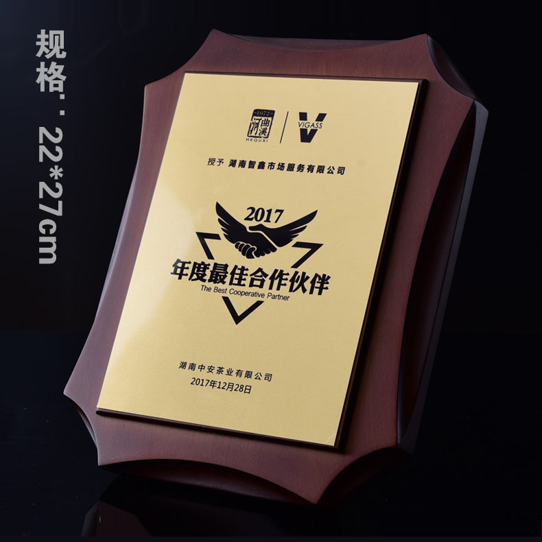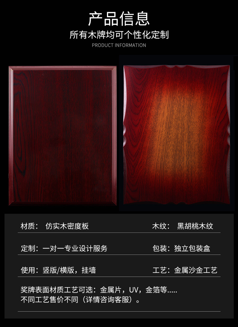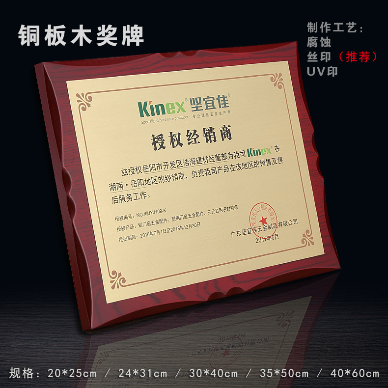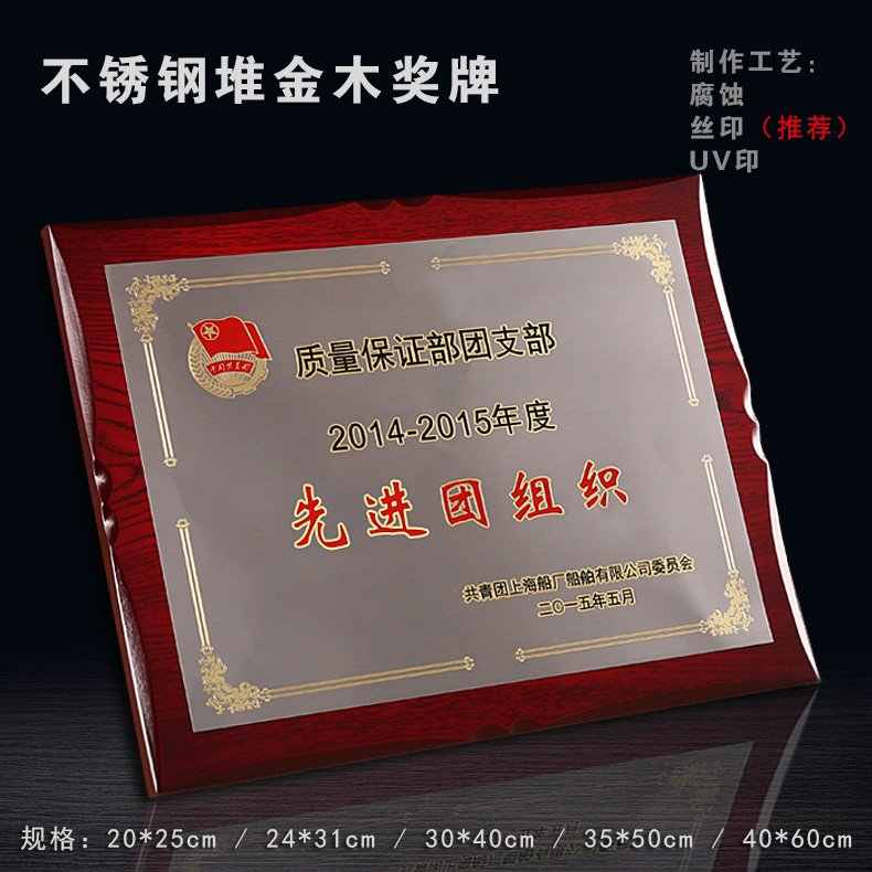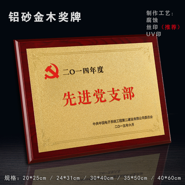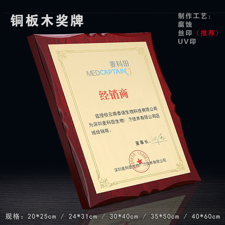 508 / 沙金钛金不锈钢堆金奖牌定做腐蚀铜牌木托授权牌金箔沙金木质奖牌木托牌匾标牌