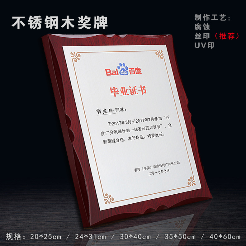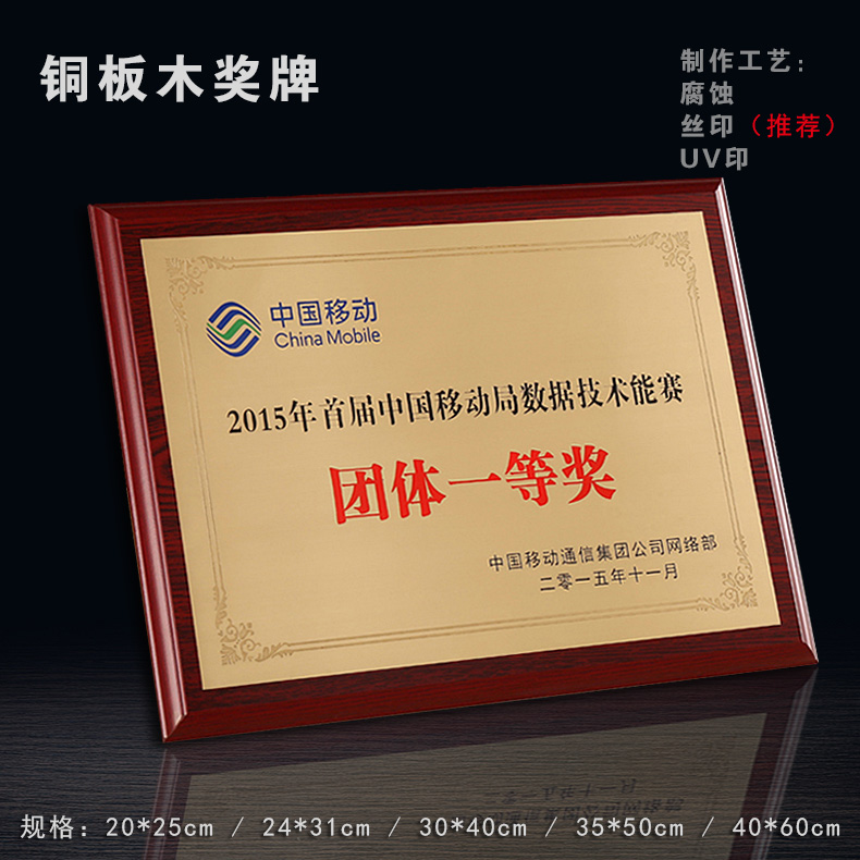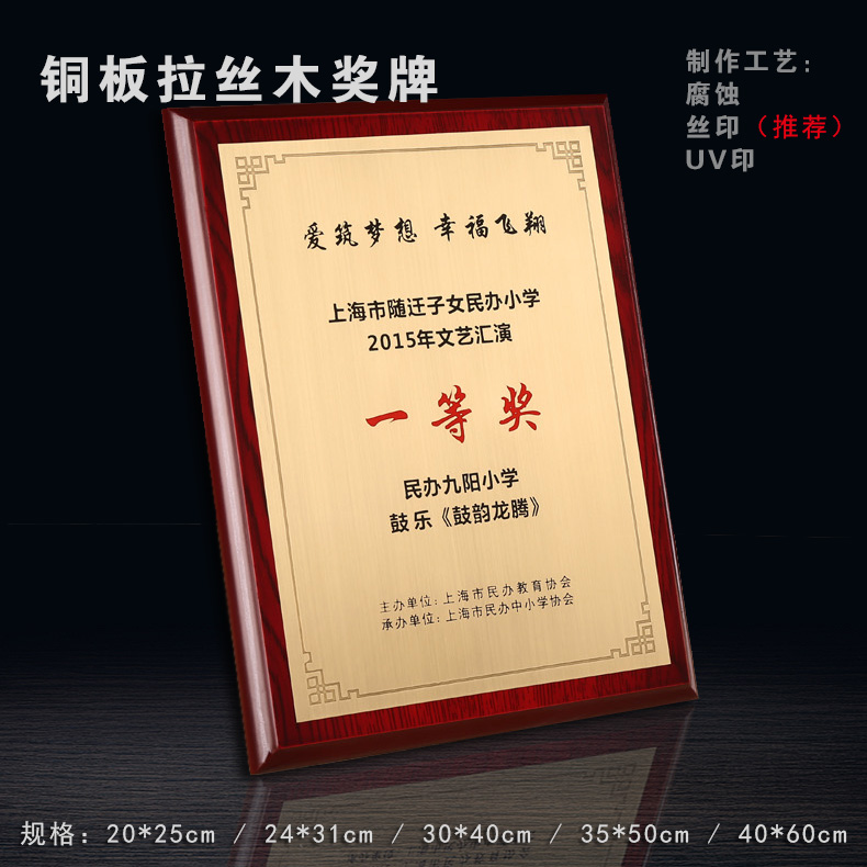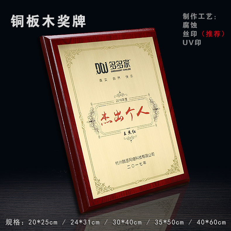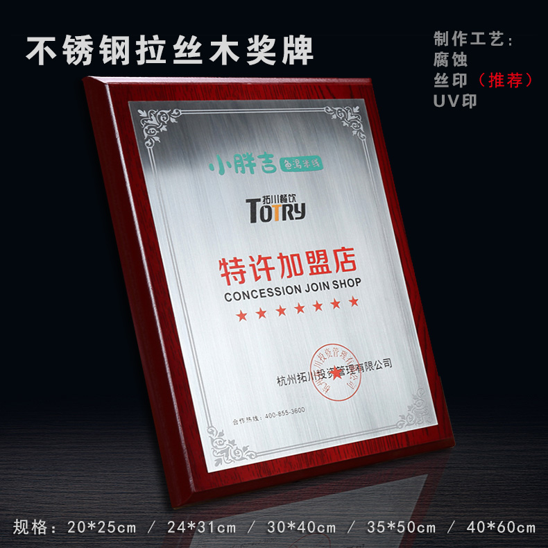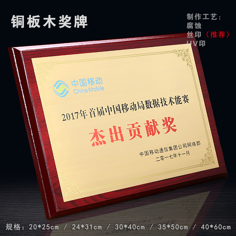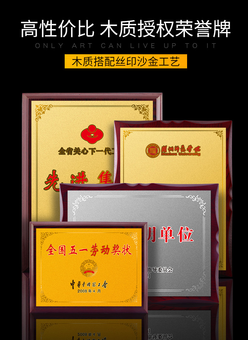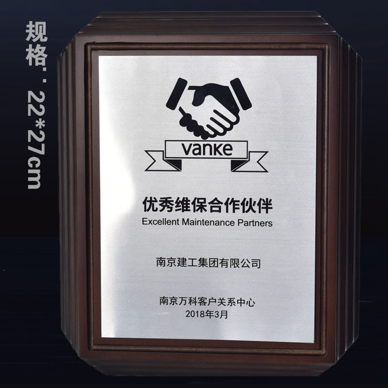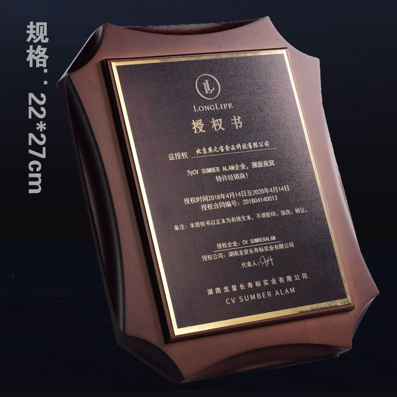 508 / 沙金钛金不锈钢堆金奖牌定做腐蚀铜牌木托授权牌金箔沙金木质奖牌木托牌匾标牌