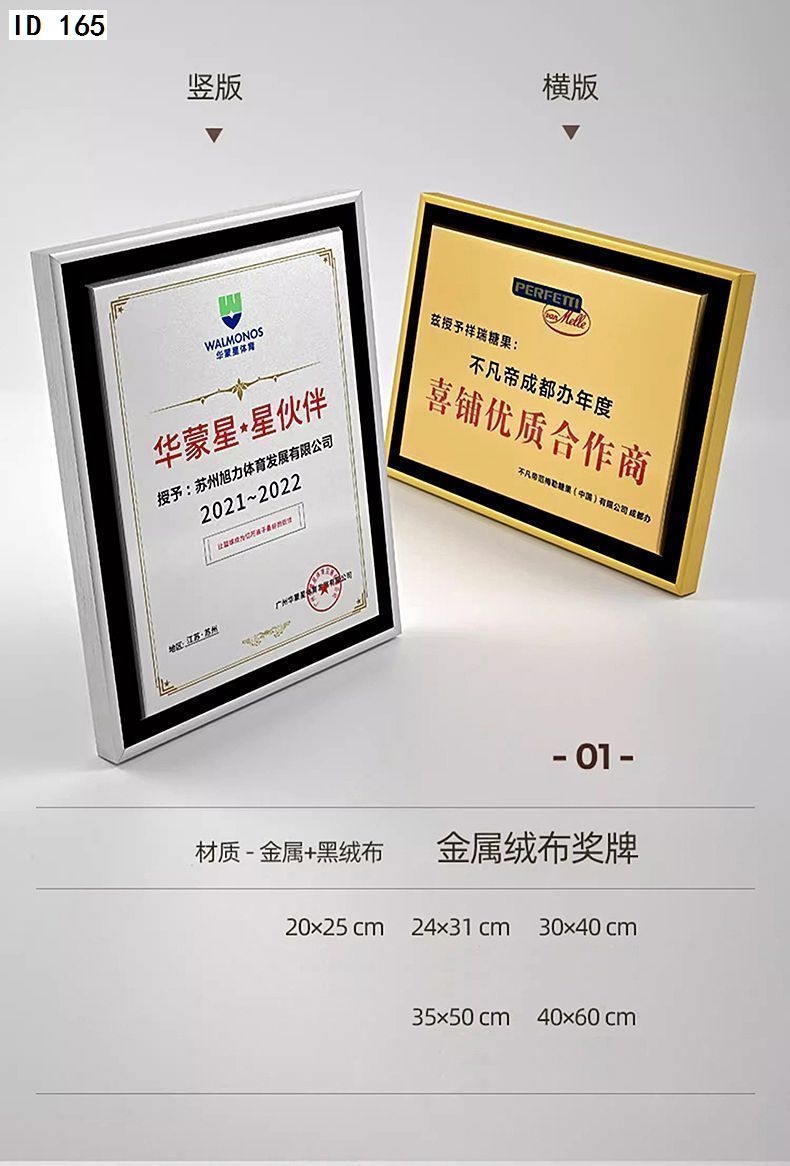 508 / 金属绒布边授权牌经销商荣誉代理商奖牌退休纪念奖杯铜牌定制定做