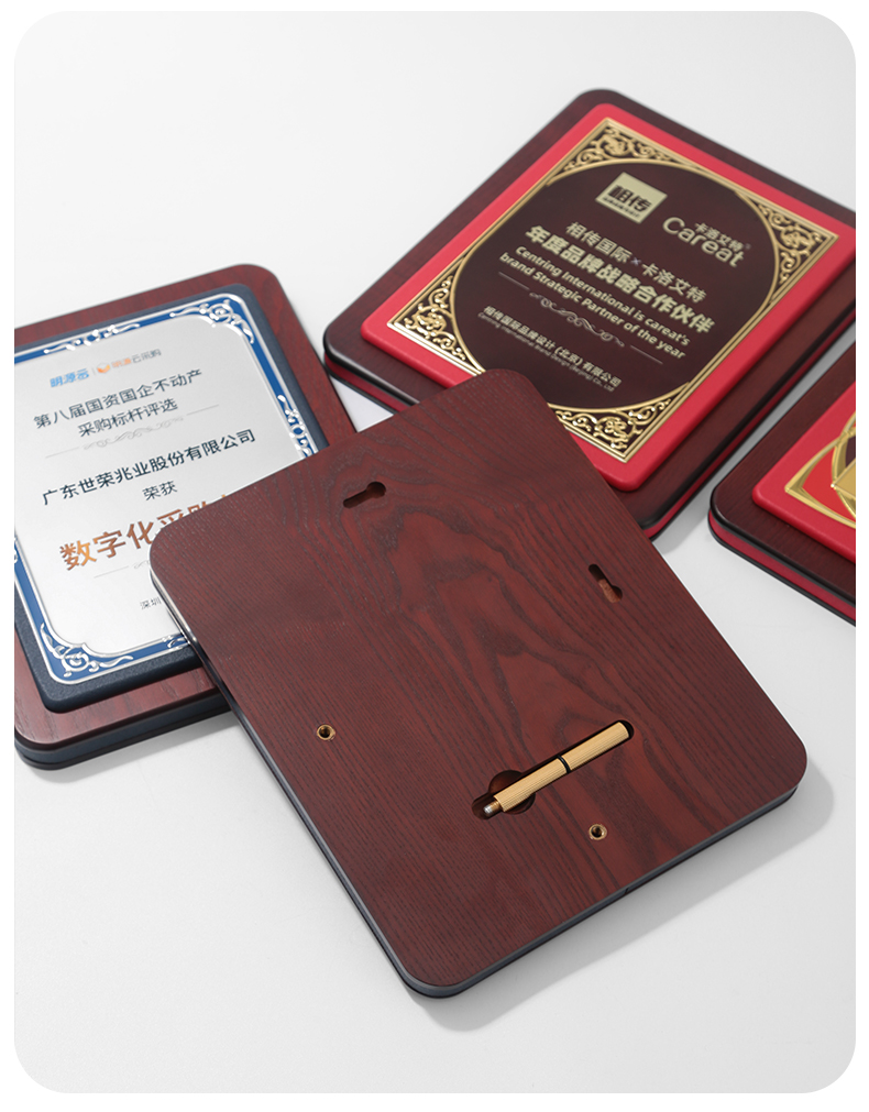 605 / 皮面高档奖牌定制定做授权牌荣誉牌匾定做铜牌实木质代理商金箔授权牌定制