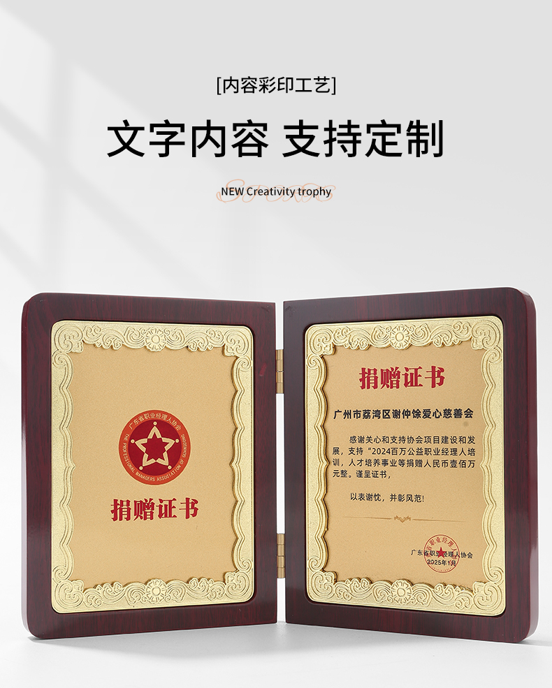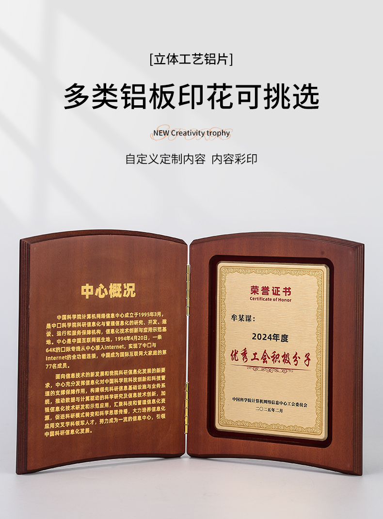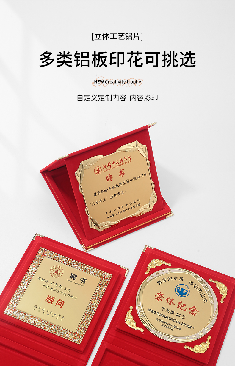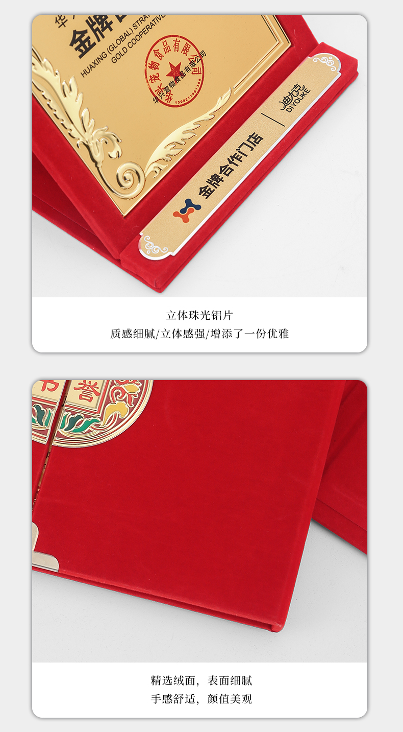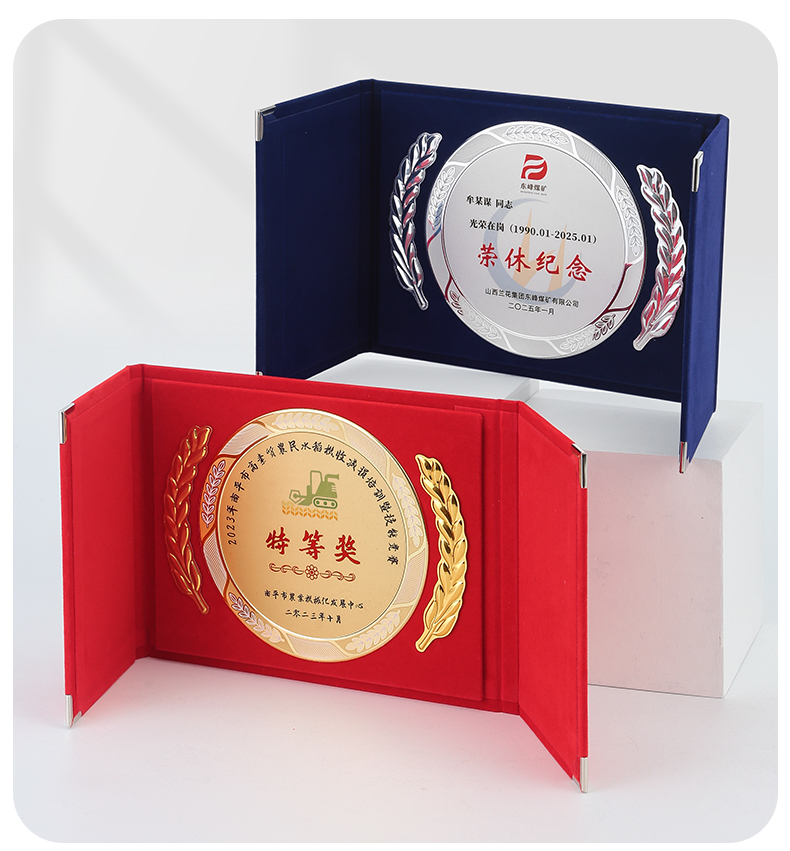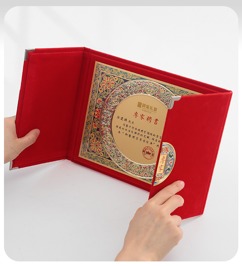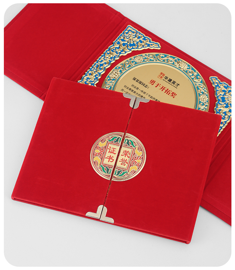 610 / 企业员工荣誉证书定制定做高档聘书授权牌制作折叠盒装奖牌订制