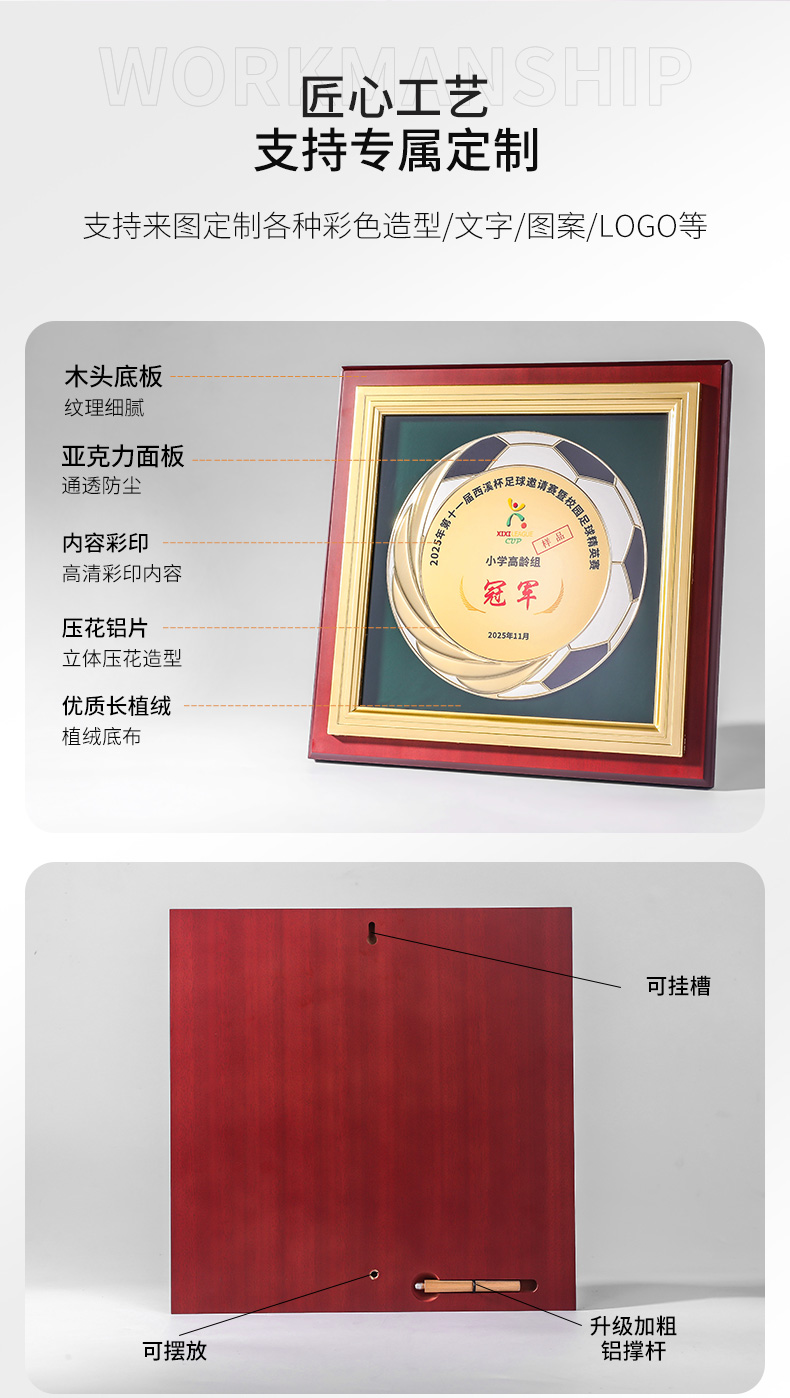 612 / 荣誉木质足球篮球运动乒乓球创意音乐田径羽毛球奖牌定制奖杯立式