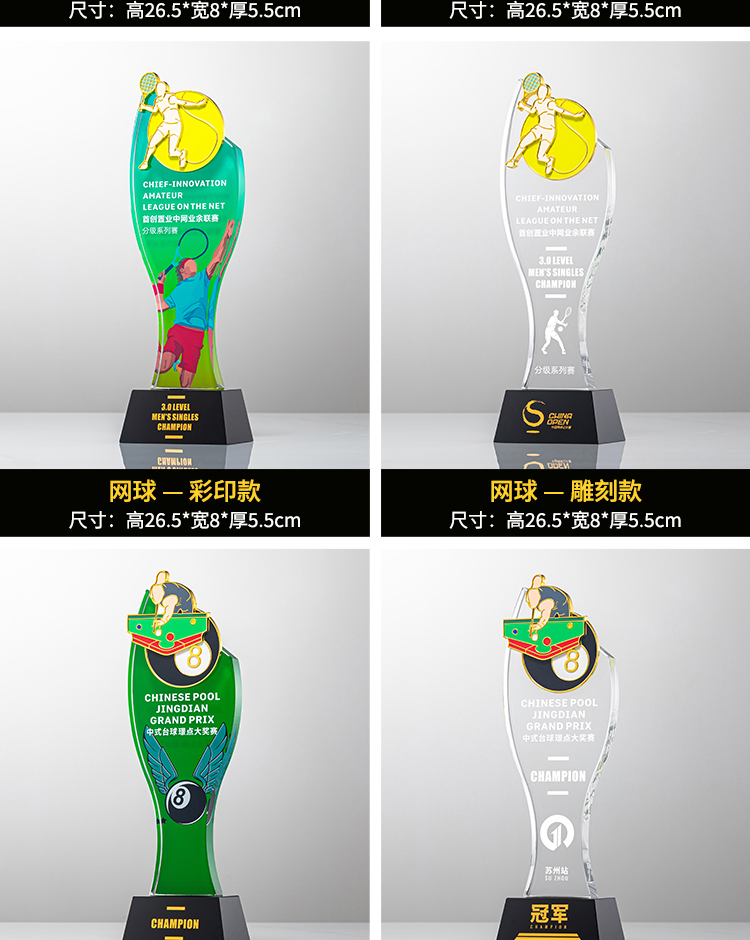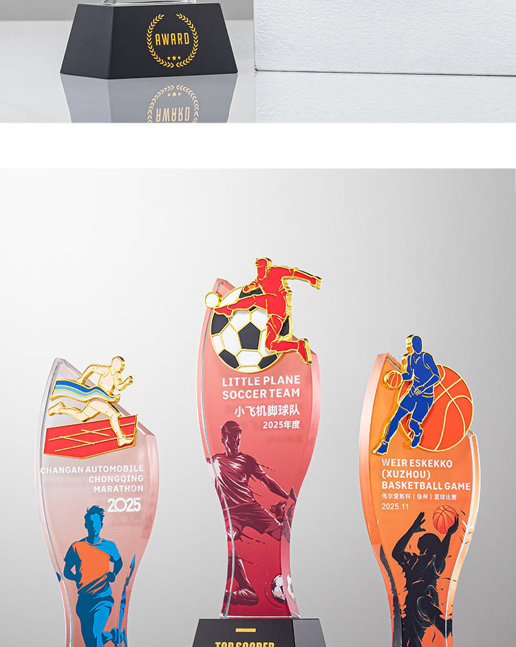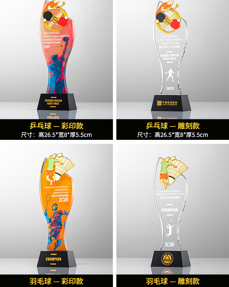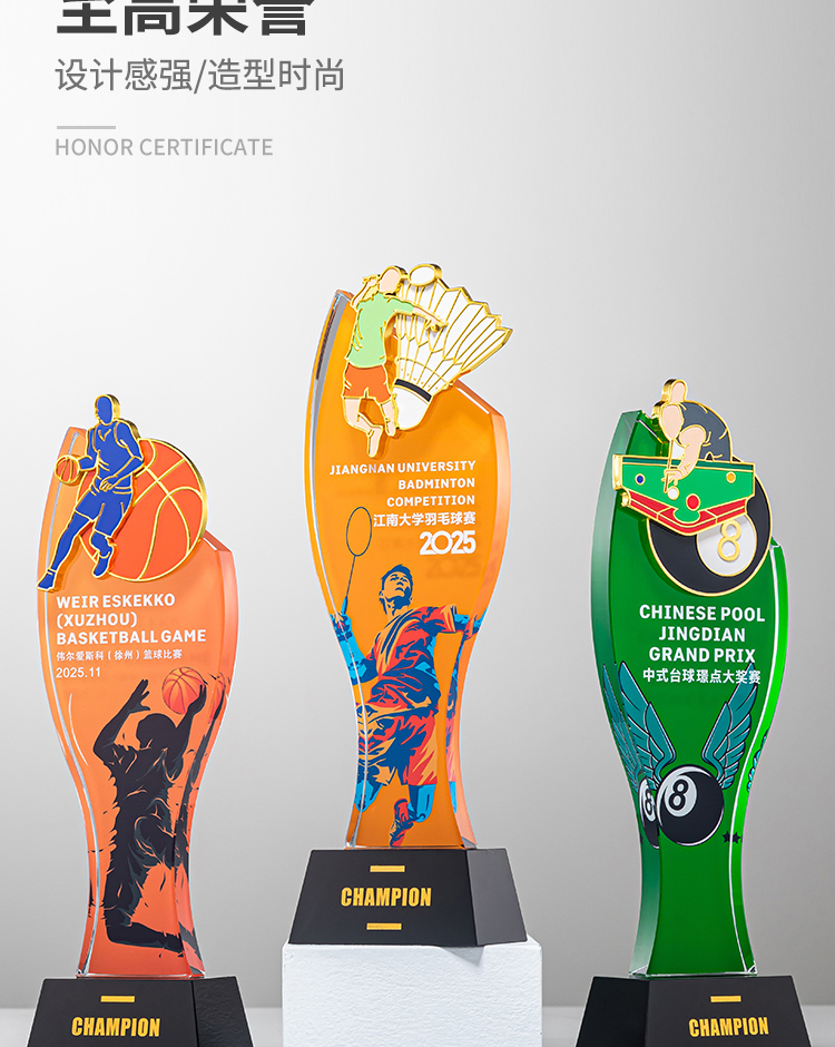 833 / 新款水晶奖杯高档大气创意体育运动会台足篮排乒乓羽毛球比赛奖杯