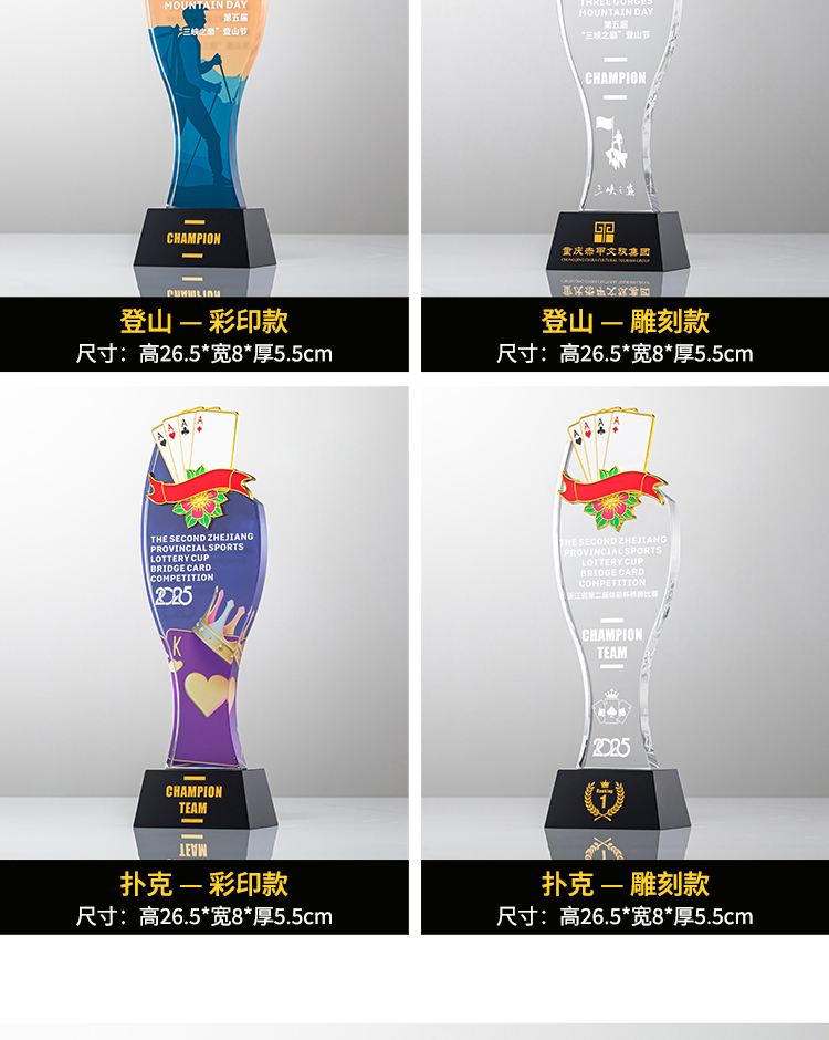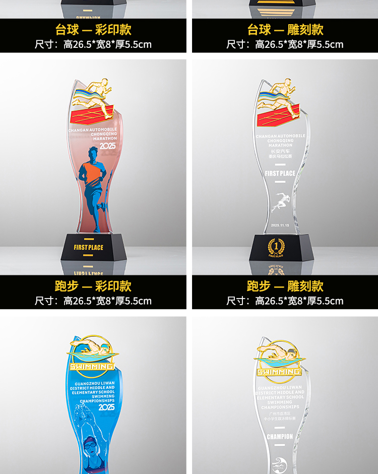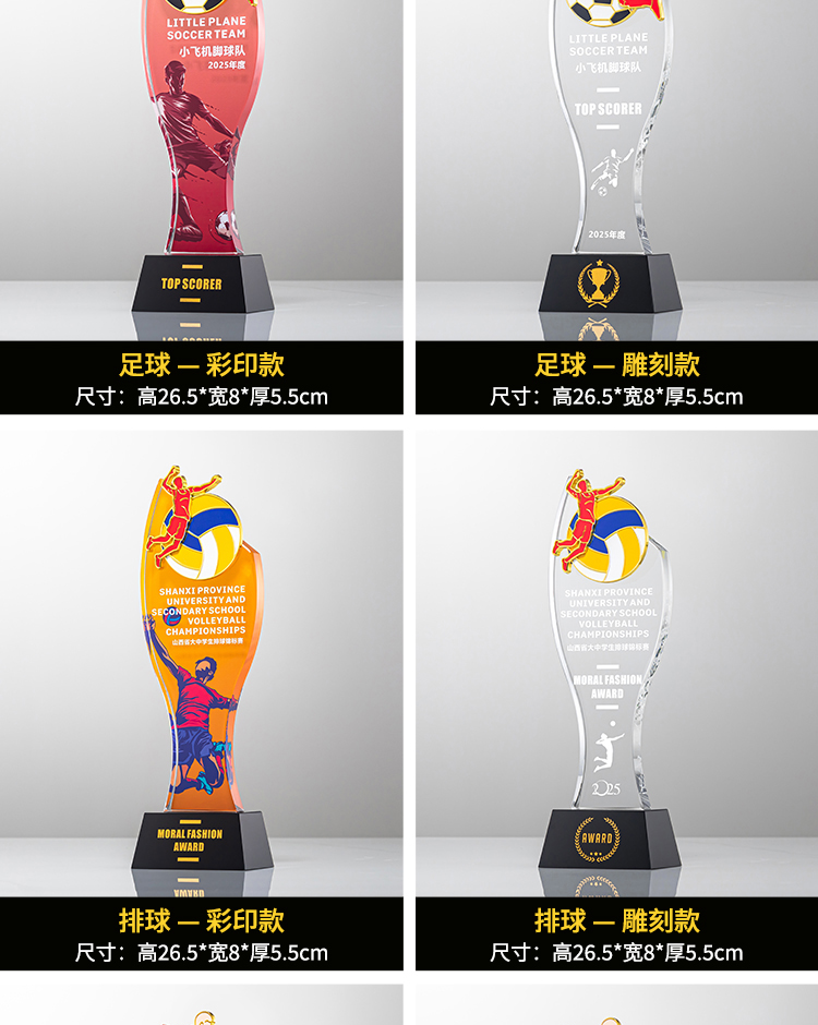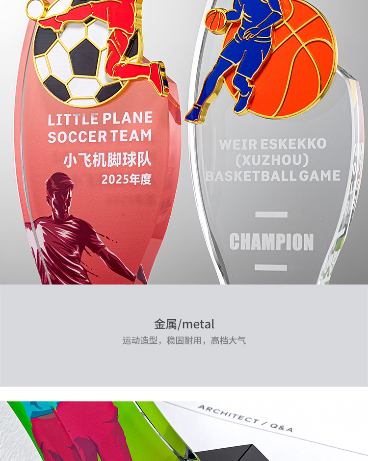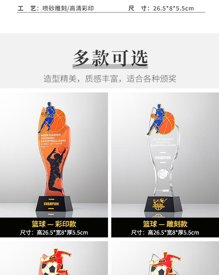 833 / 新款水晶奖杯高档大气创意体育运动会台足篮排乒乓羽毛球比赛奖杯
