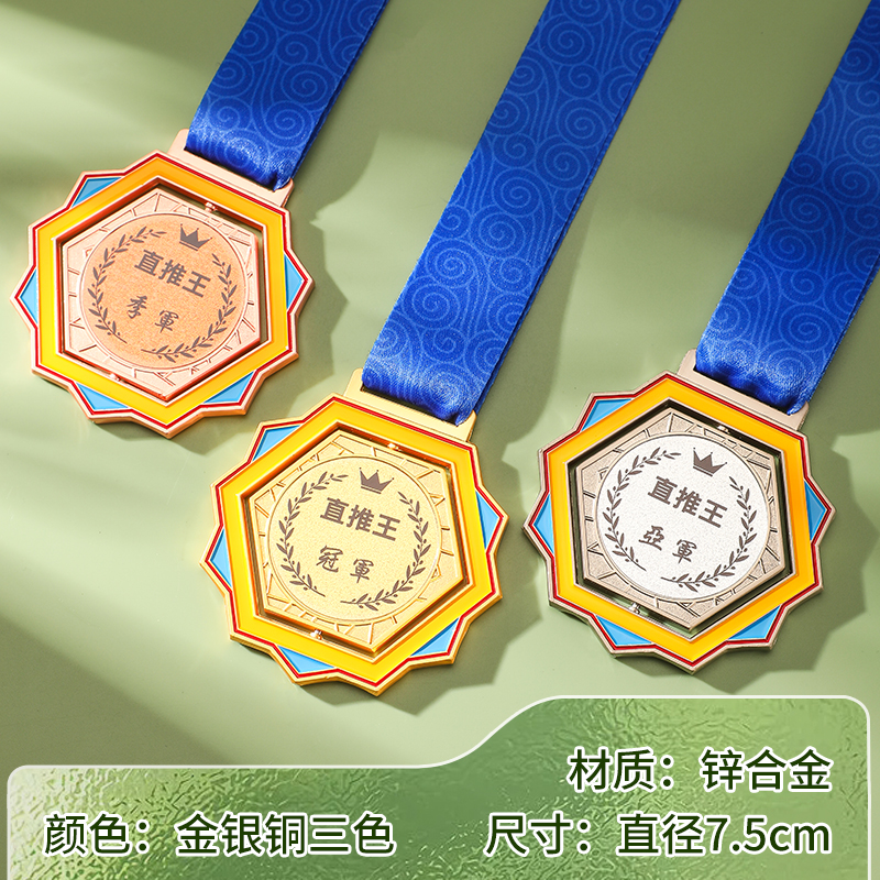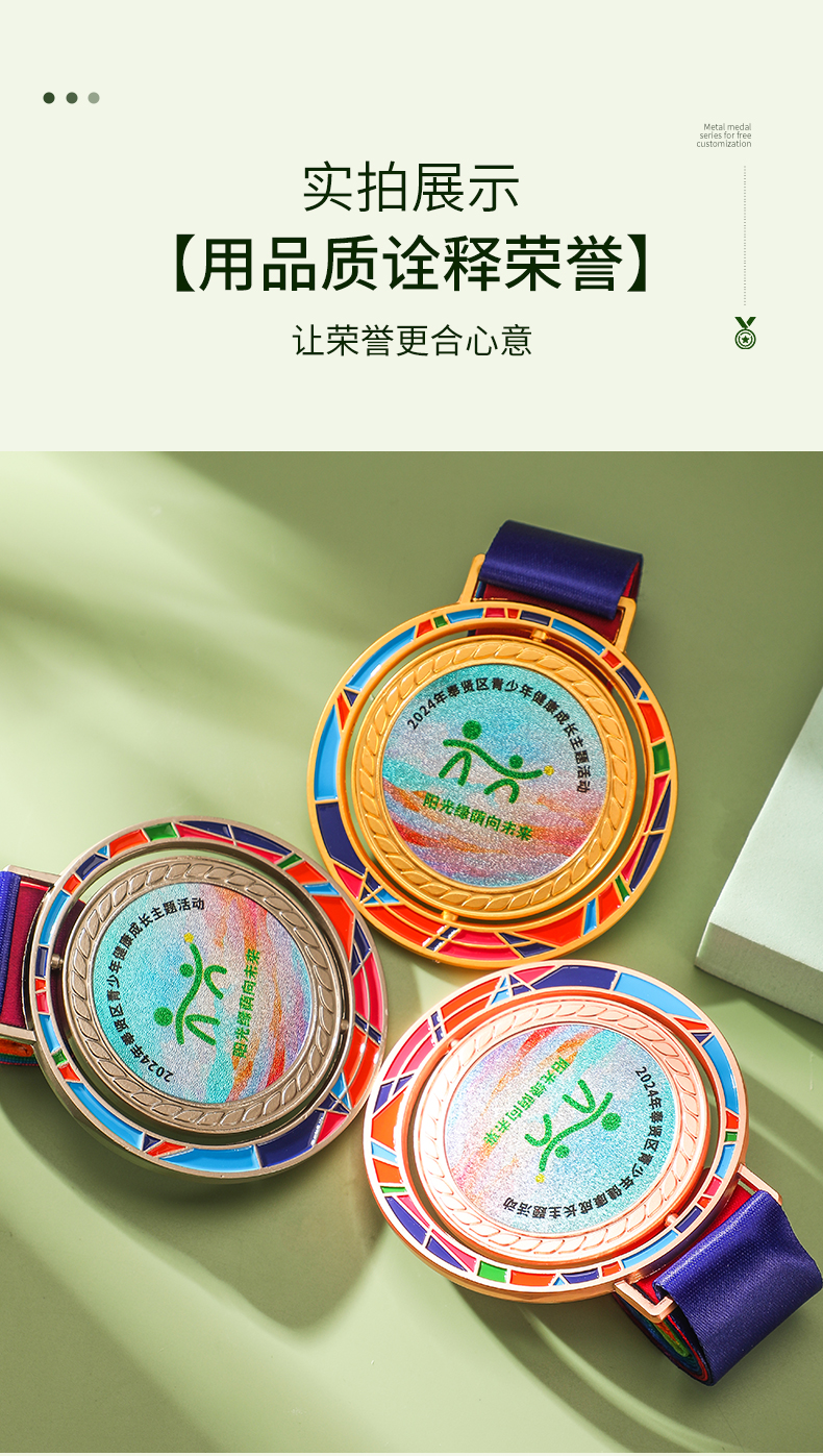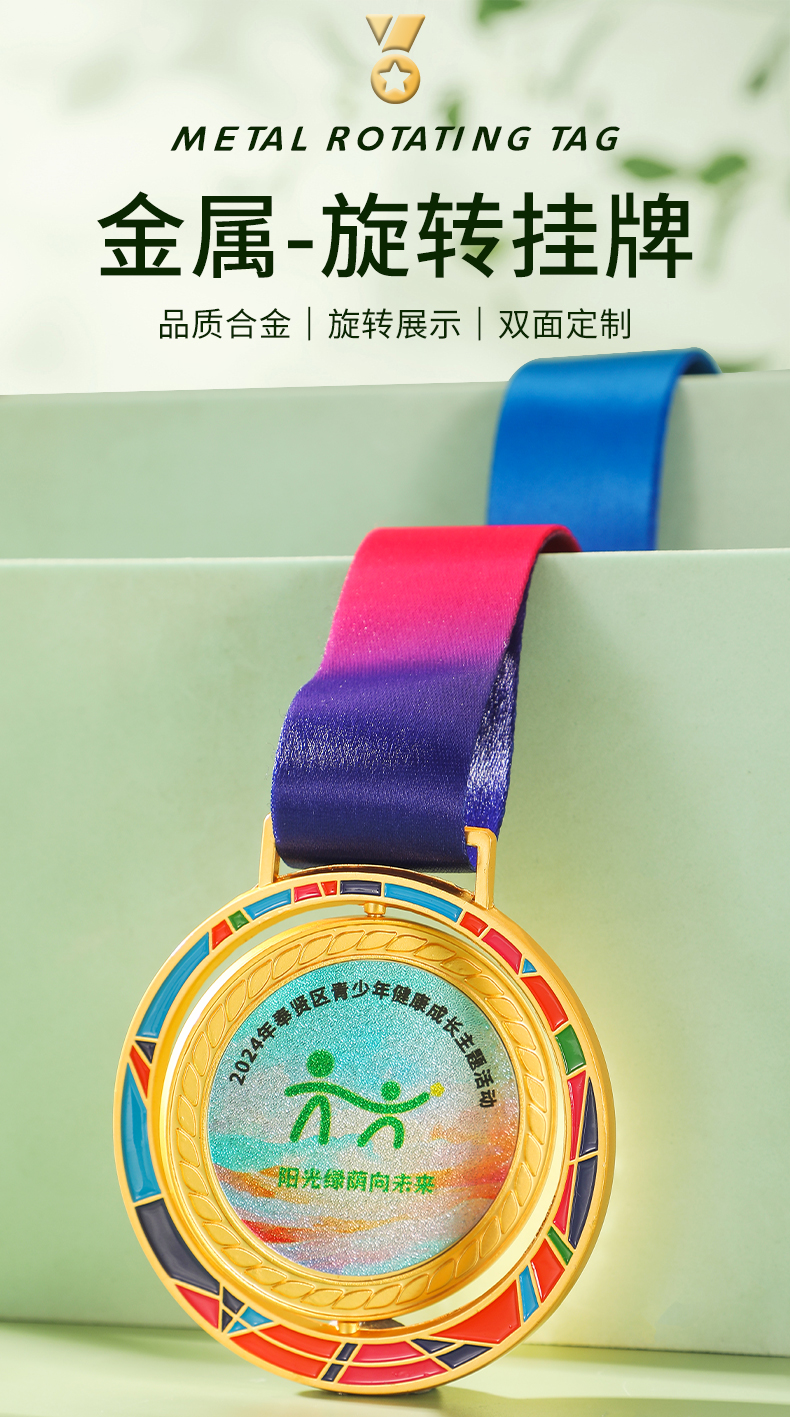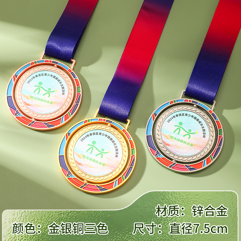 642 / 水晶金属旋转奖牌定制定做运动会马拉松篮球比赛儿童冠军荣誉挂牌