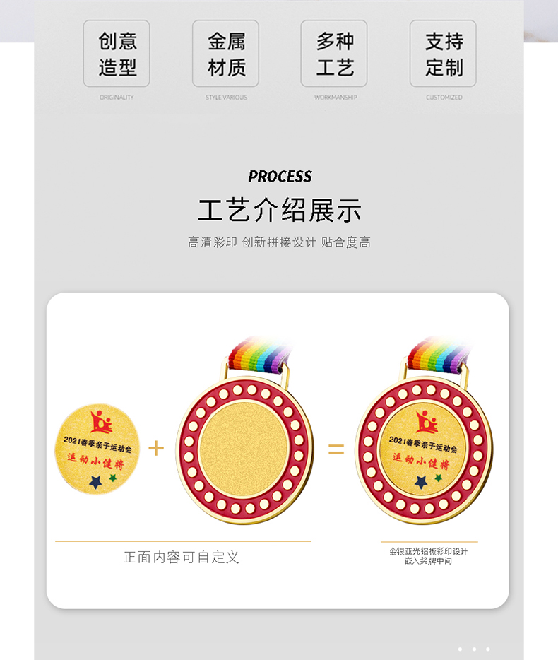 646 / 学生儿童金属奖牌定制定做马拉松运动会冠军挂牌篮球比赛幼儿园儿童奖章