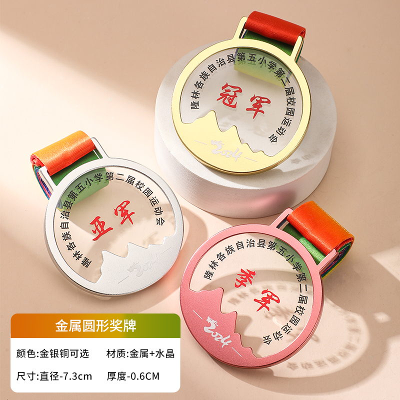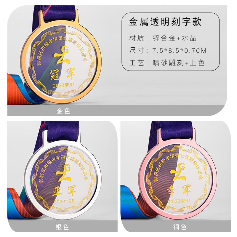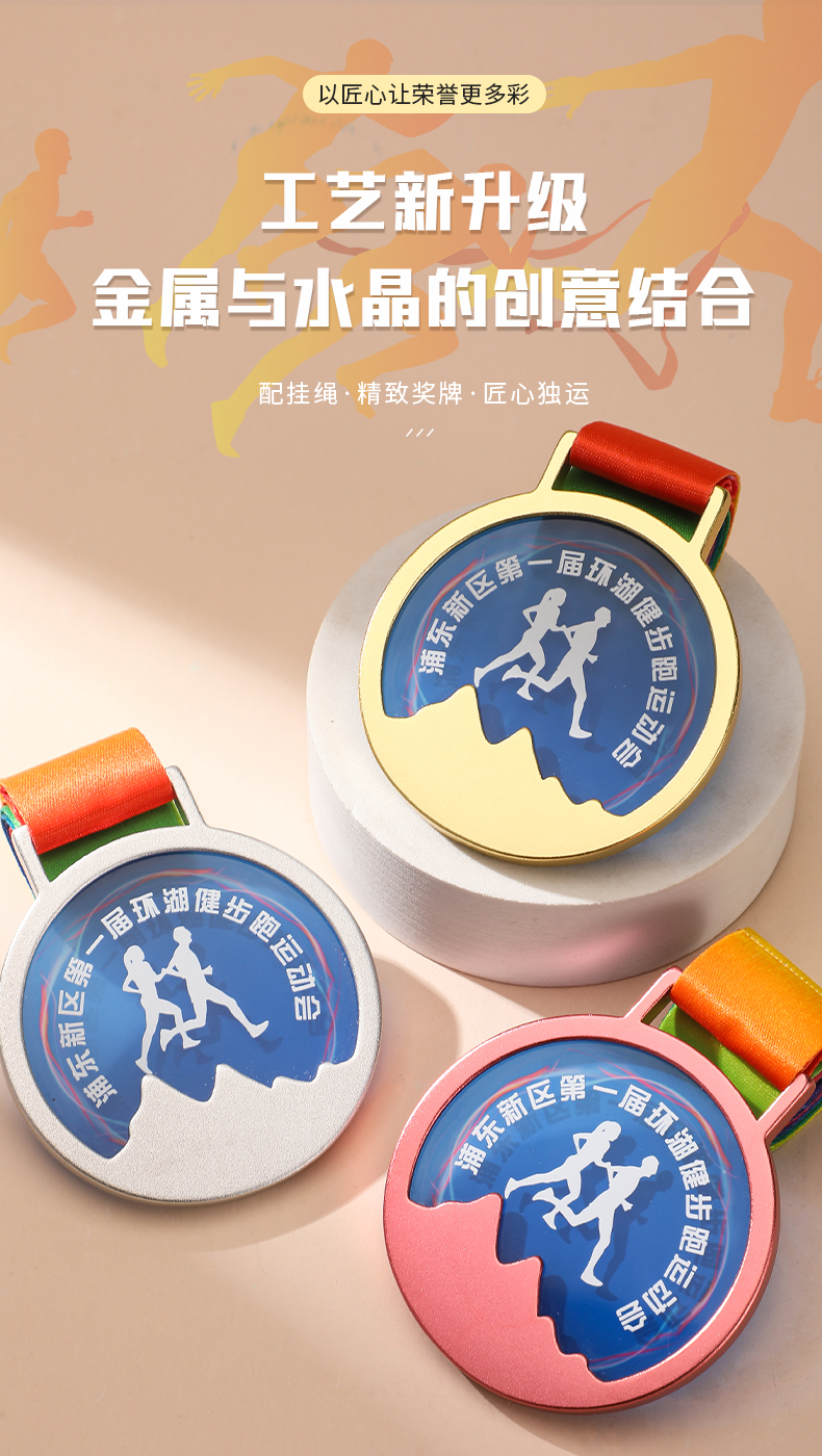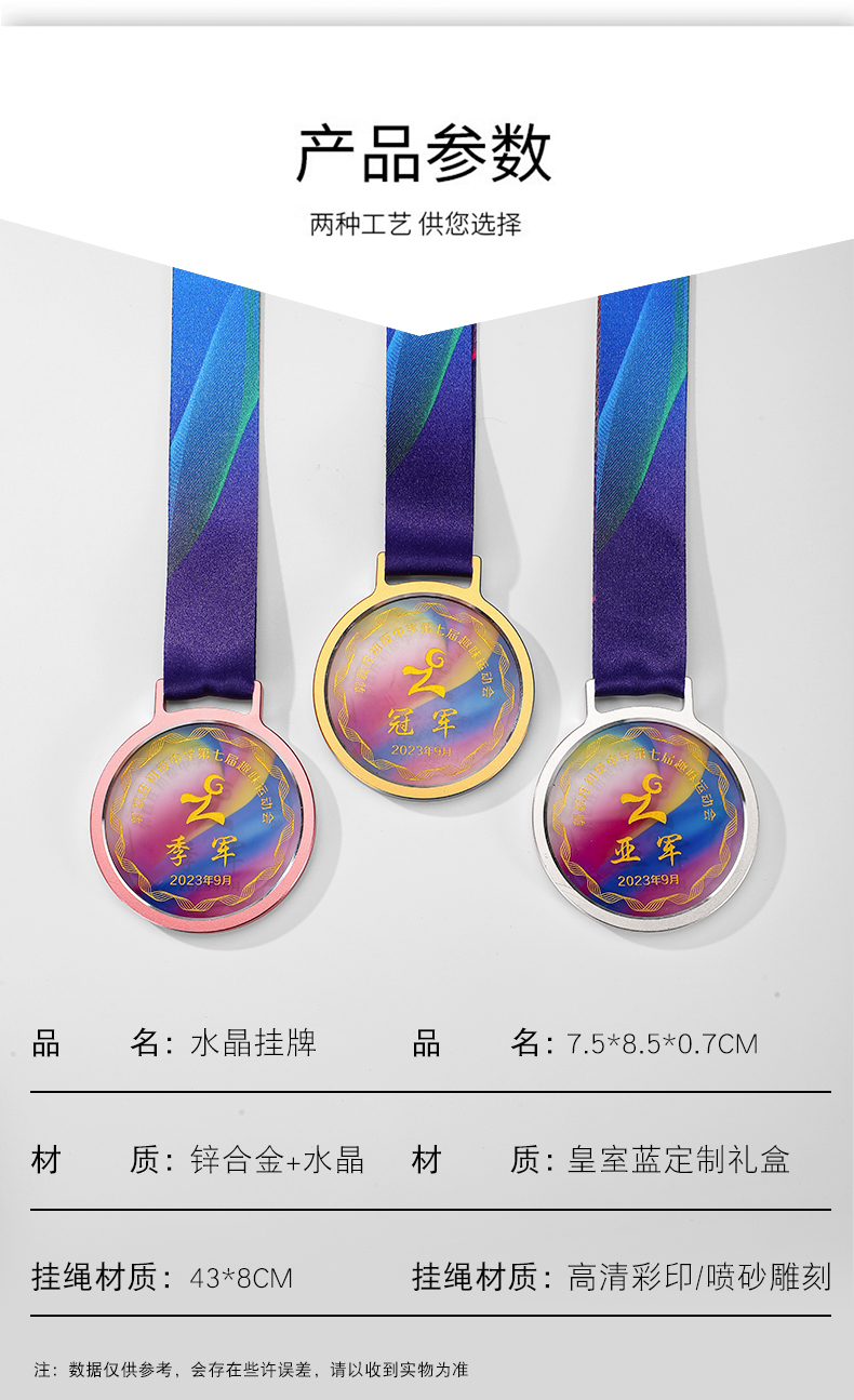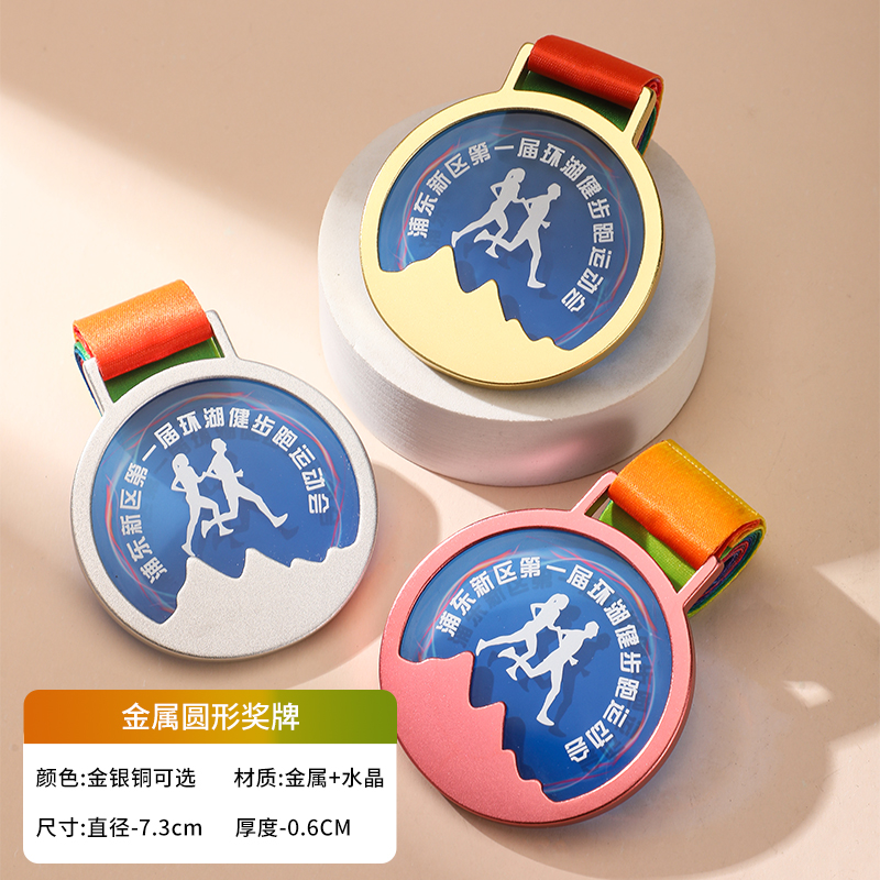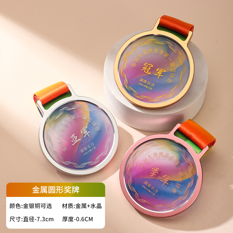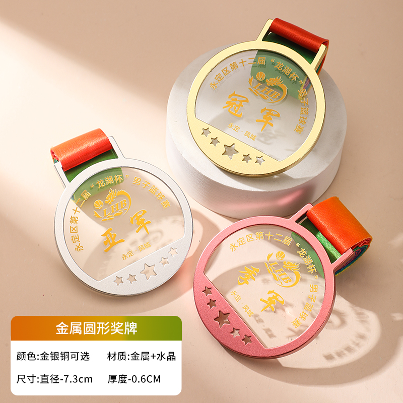 643 / 金属水晶奖牌挂牌定制定做学校职工运动会登山马拉松比赛冠军金牌