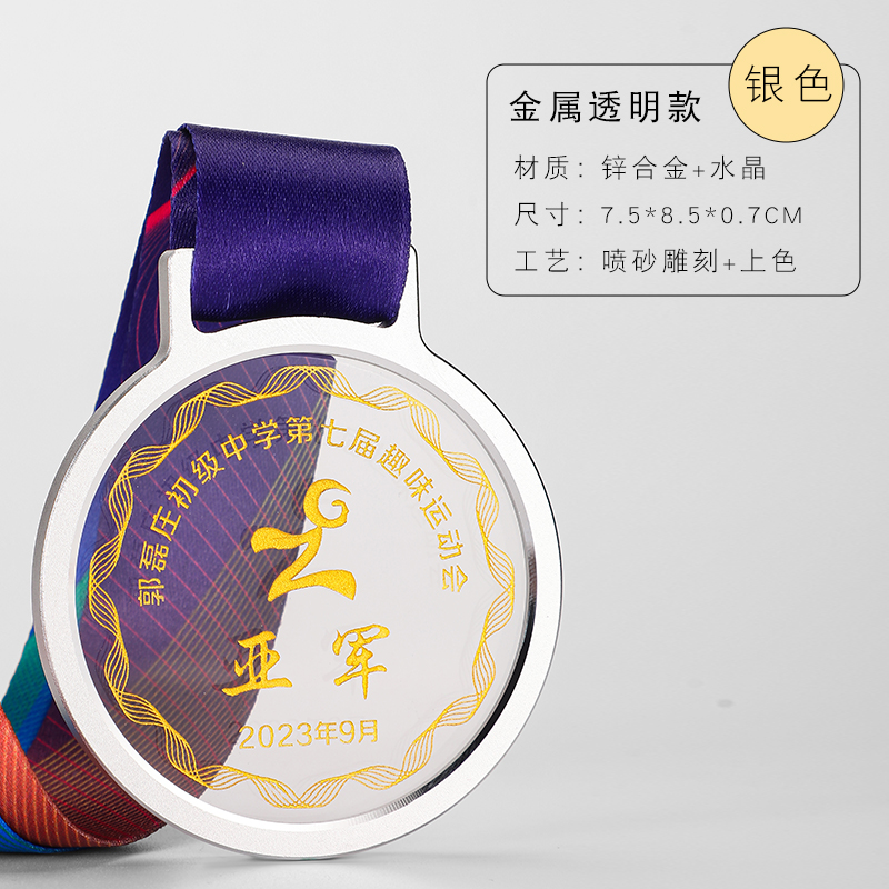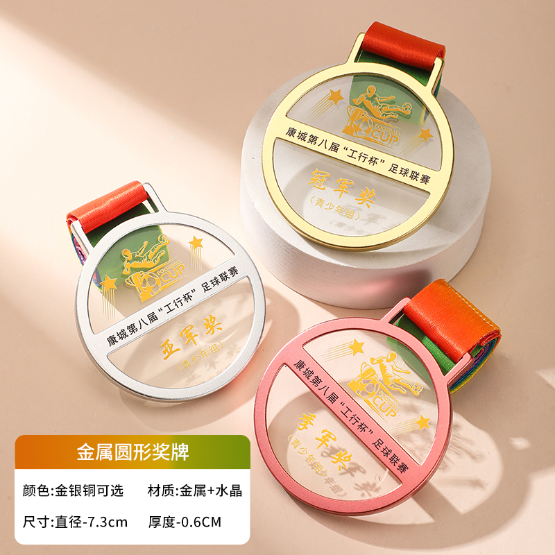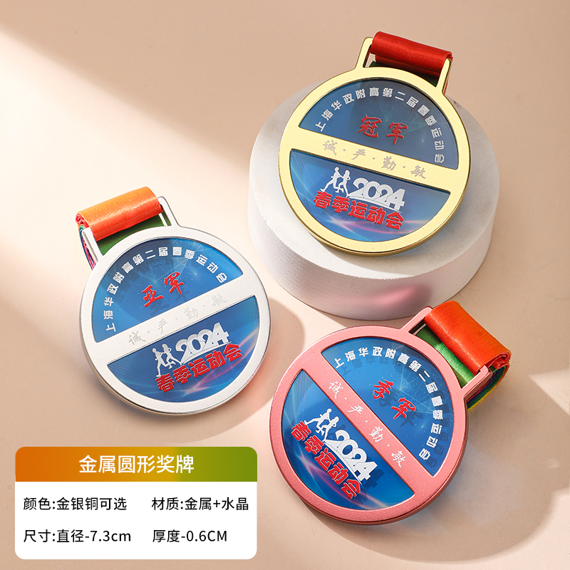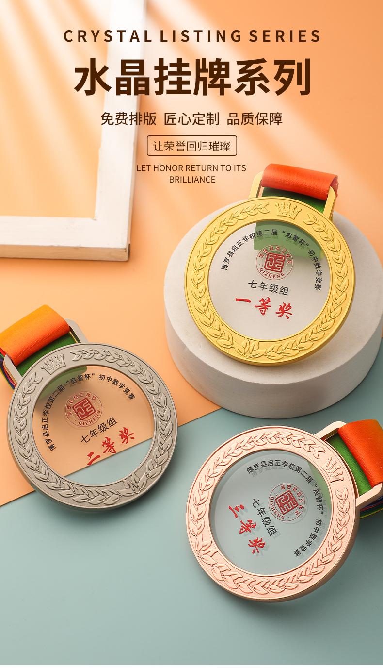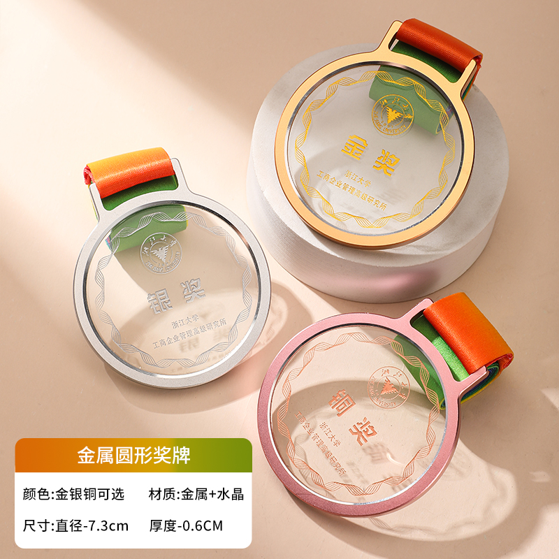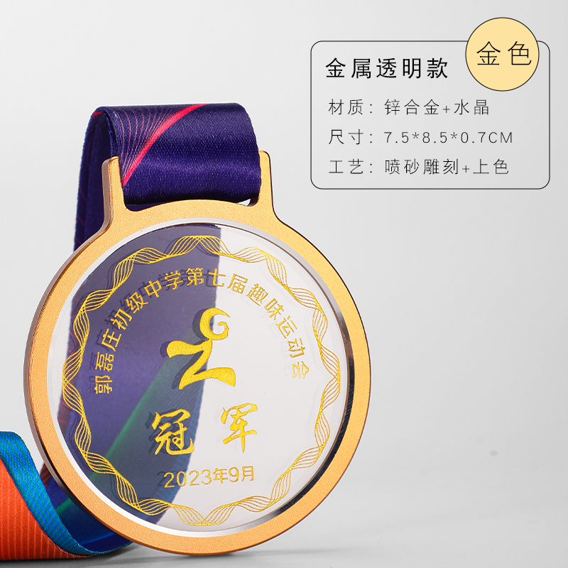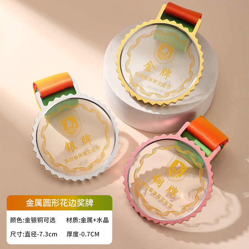 643 / 金属水晶奖牌挂牌定制定做学校职工运动会登山马拉松比赛冠军金牌