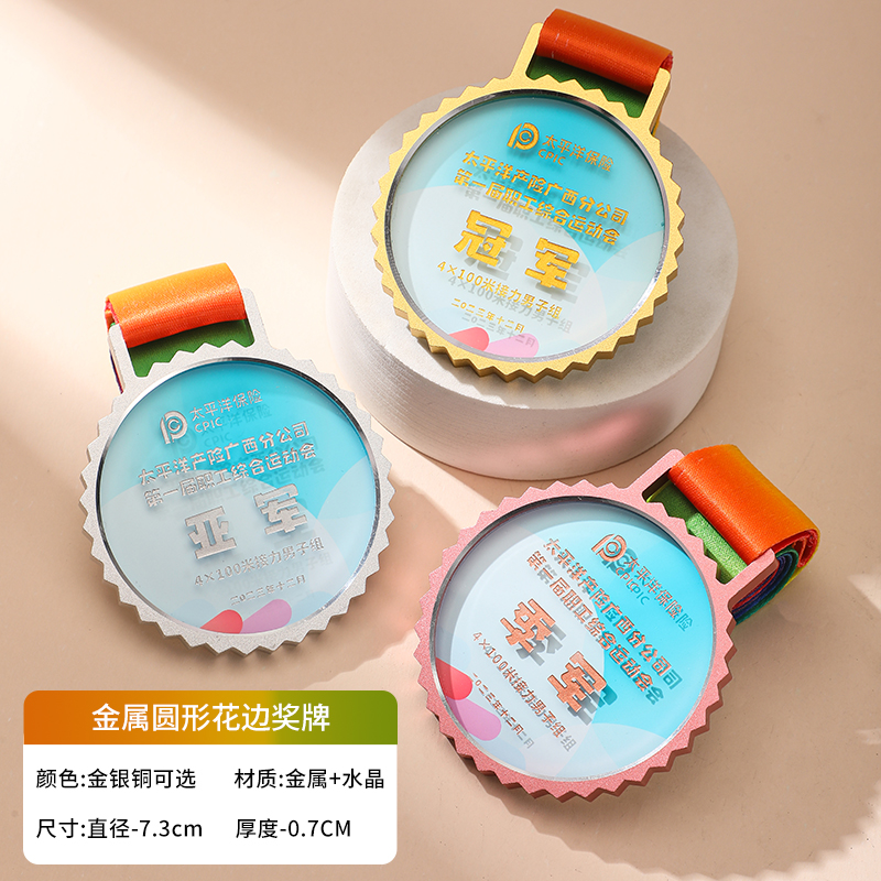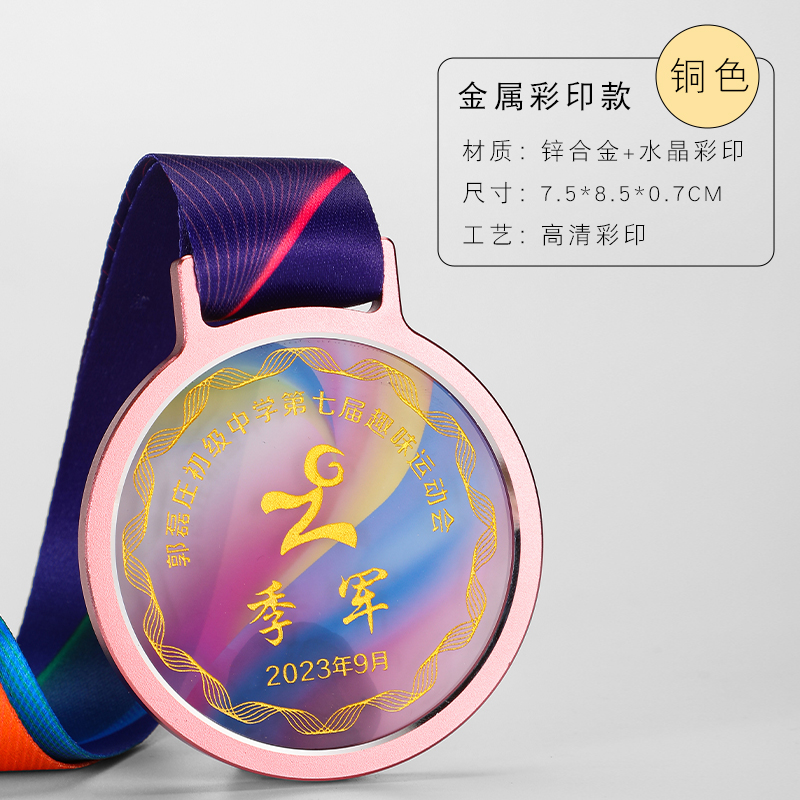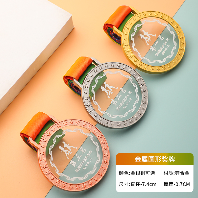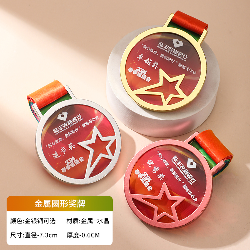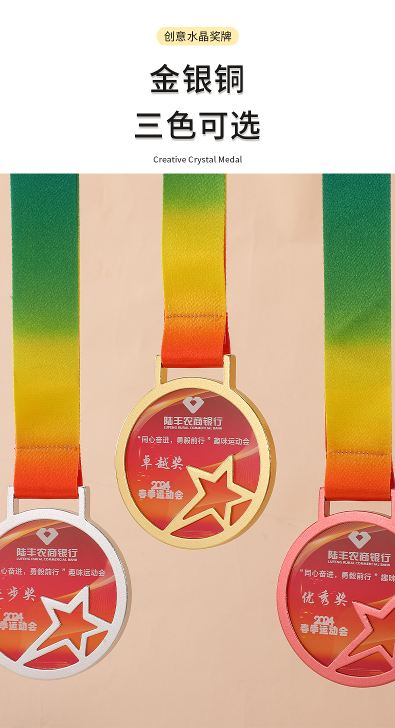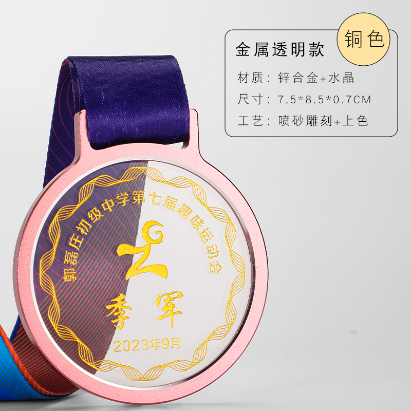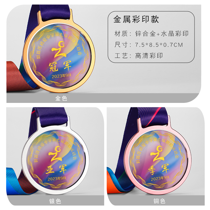 643 / 金属水晶奖牌挂牌定制定做学校职工运动会登山马拉松比赛冠军金牌