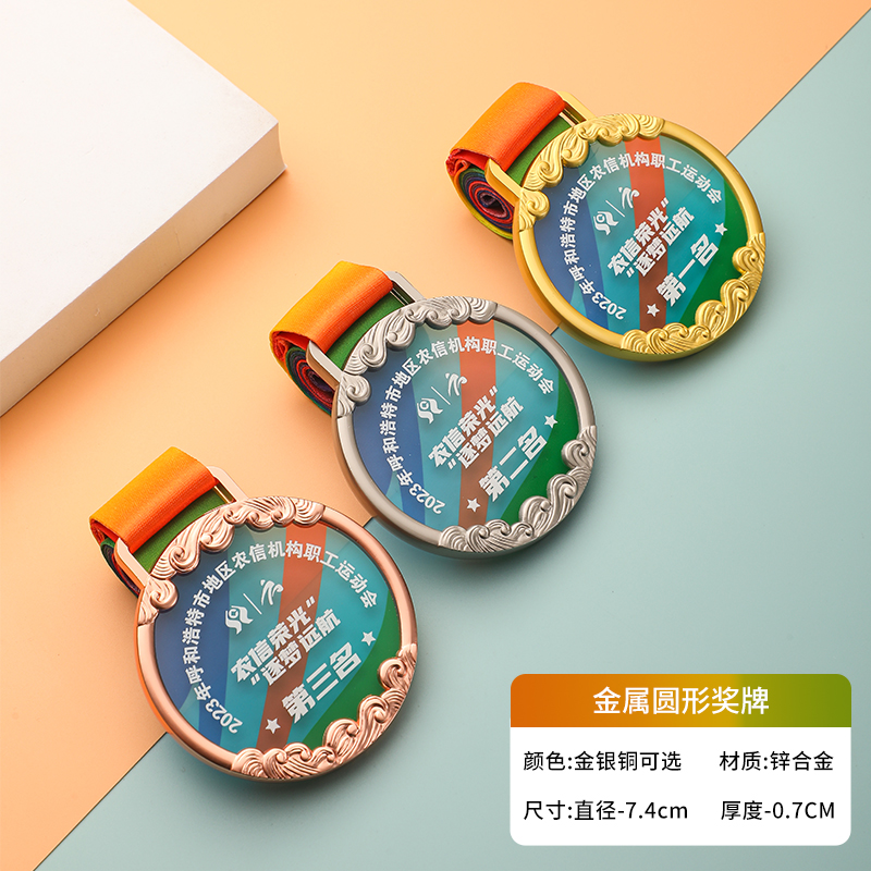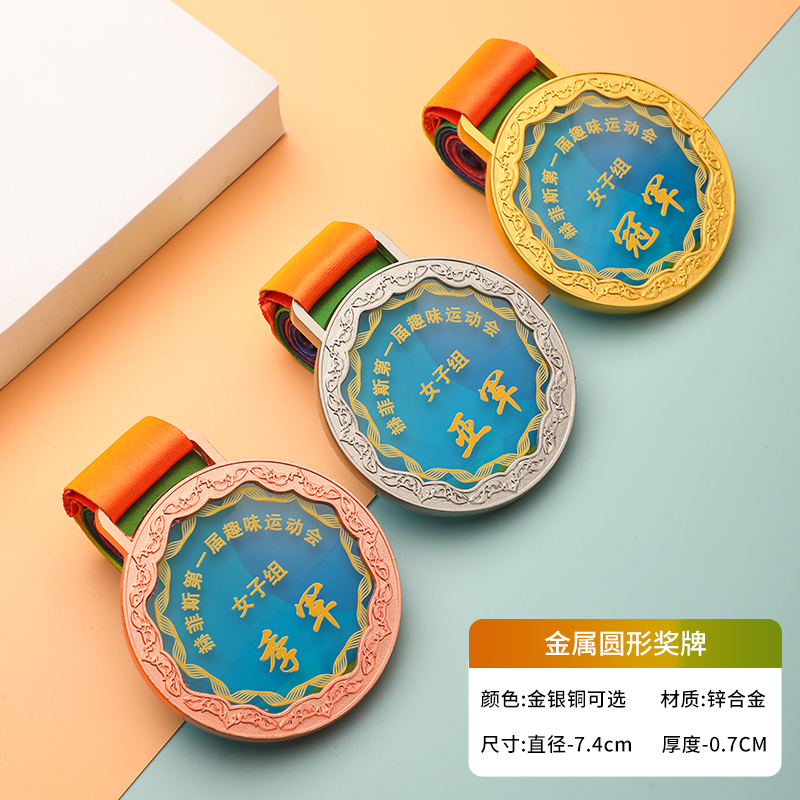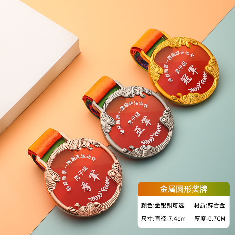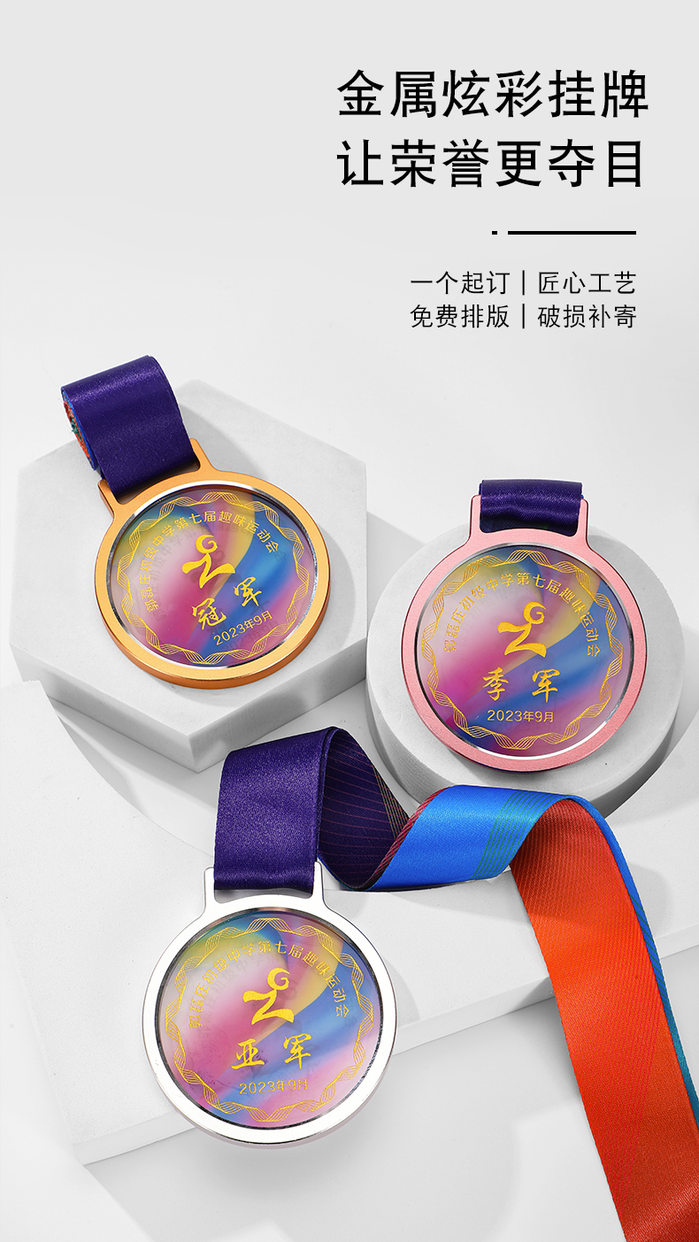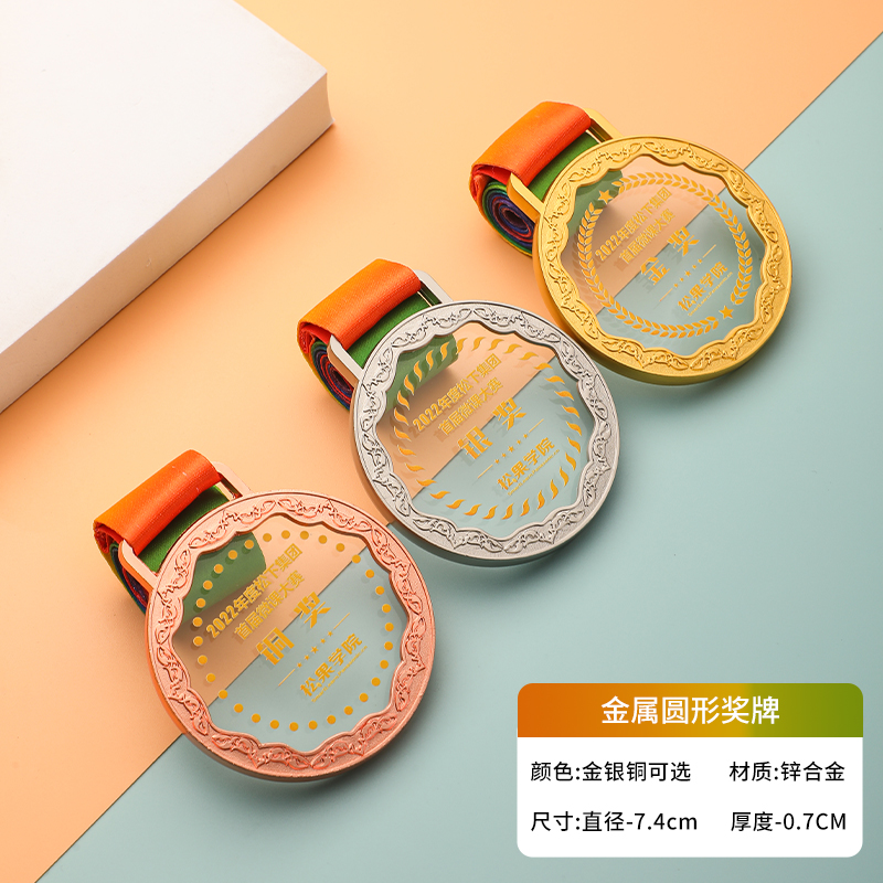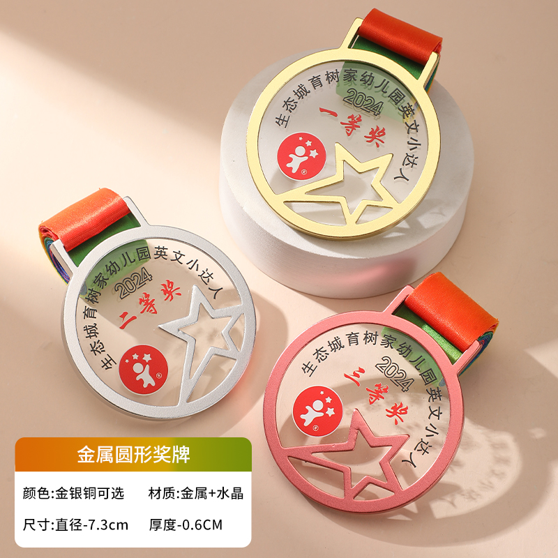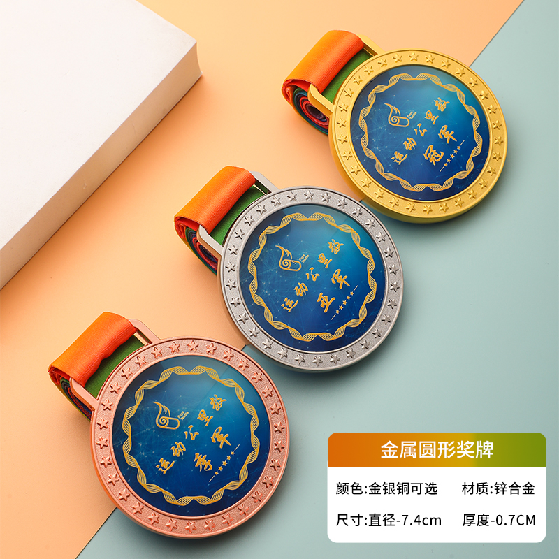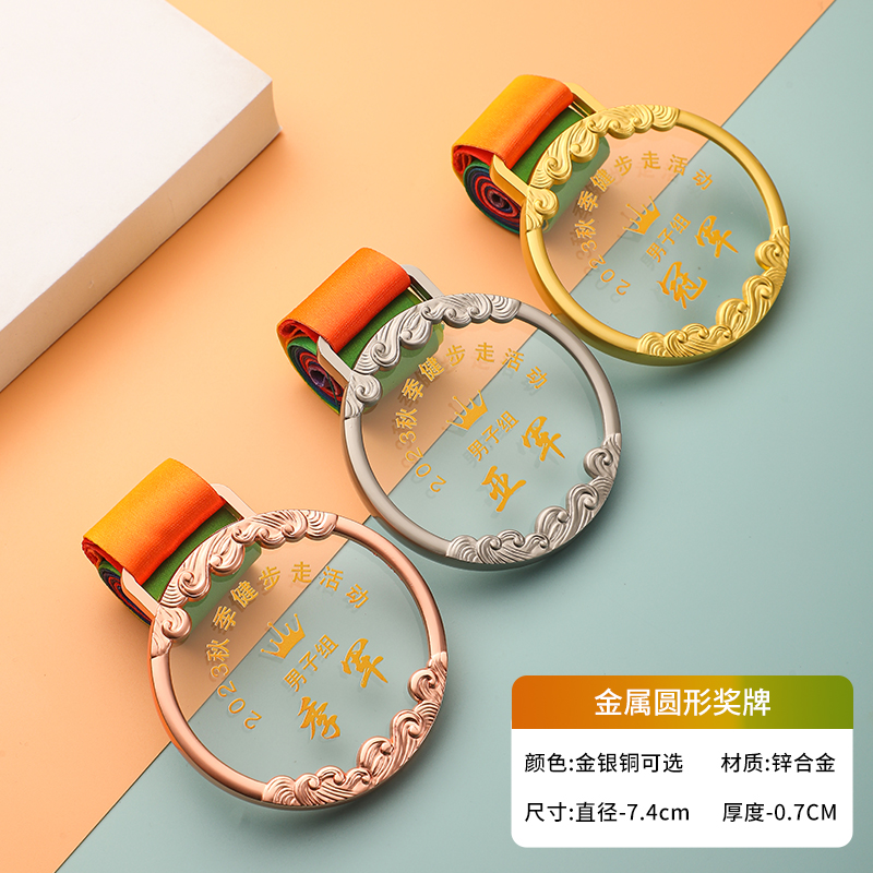 643 / 金属水晶奖牌挂牌定制定做学校职工运动会登山马拉松比赛冠军金牌