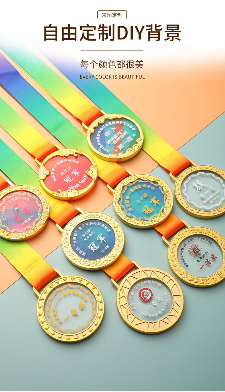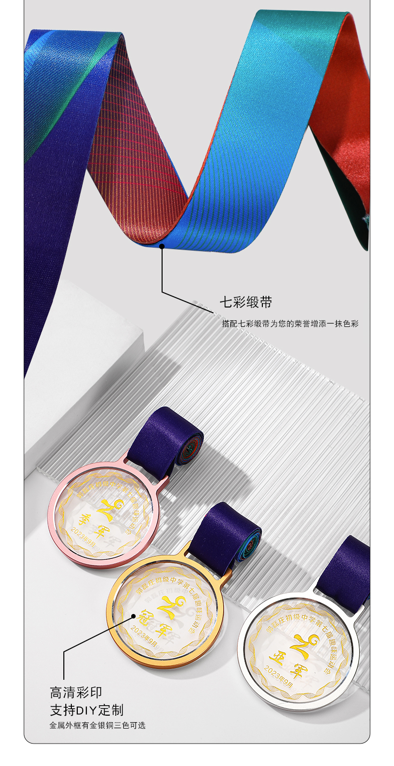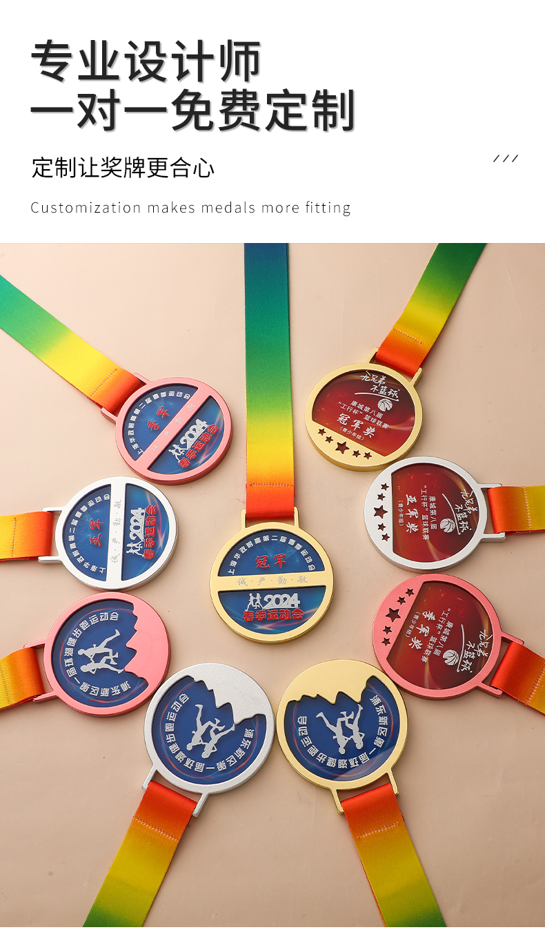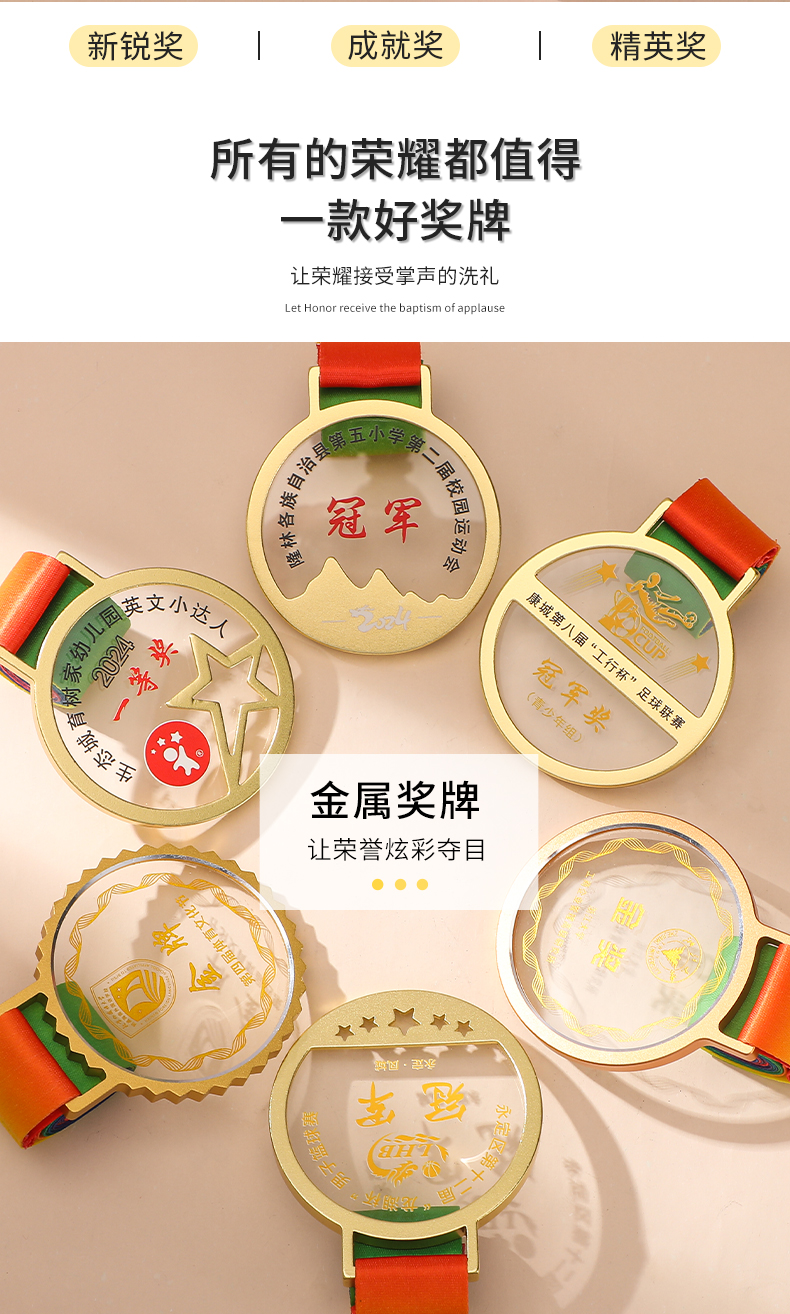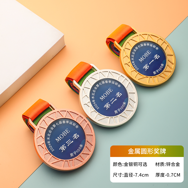 643 / 金属水晶奖牌挂牌定制定做学校职工运动会登山马拉松比赛冠军金牌
