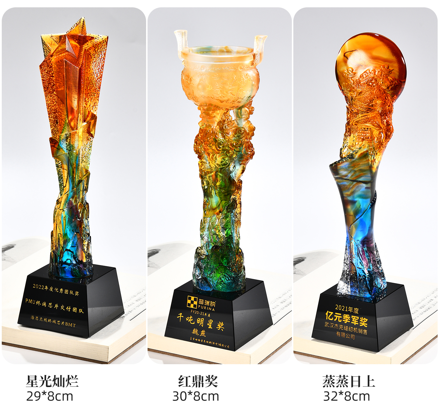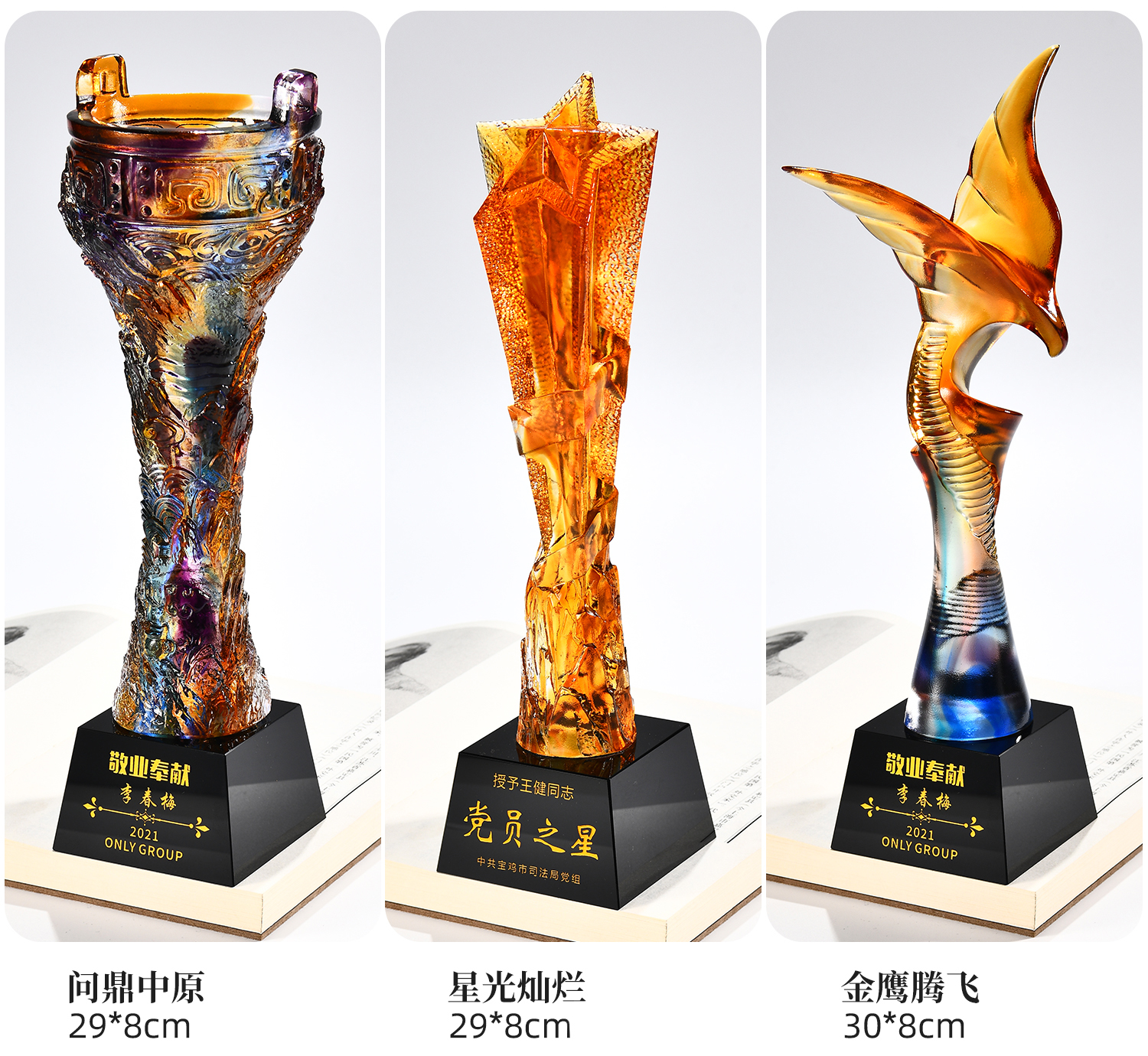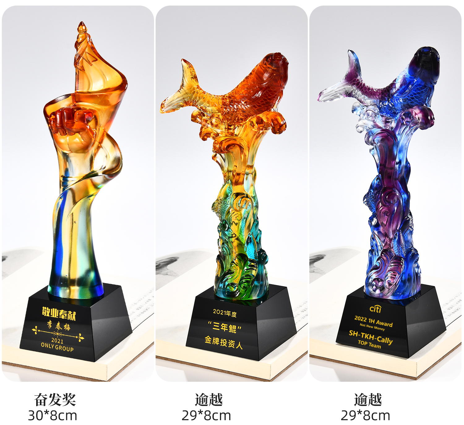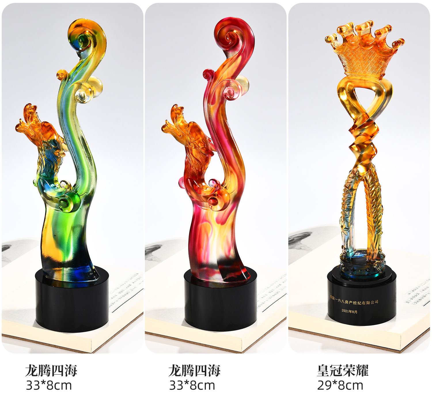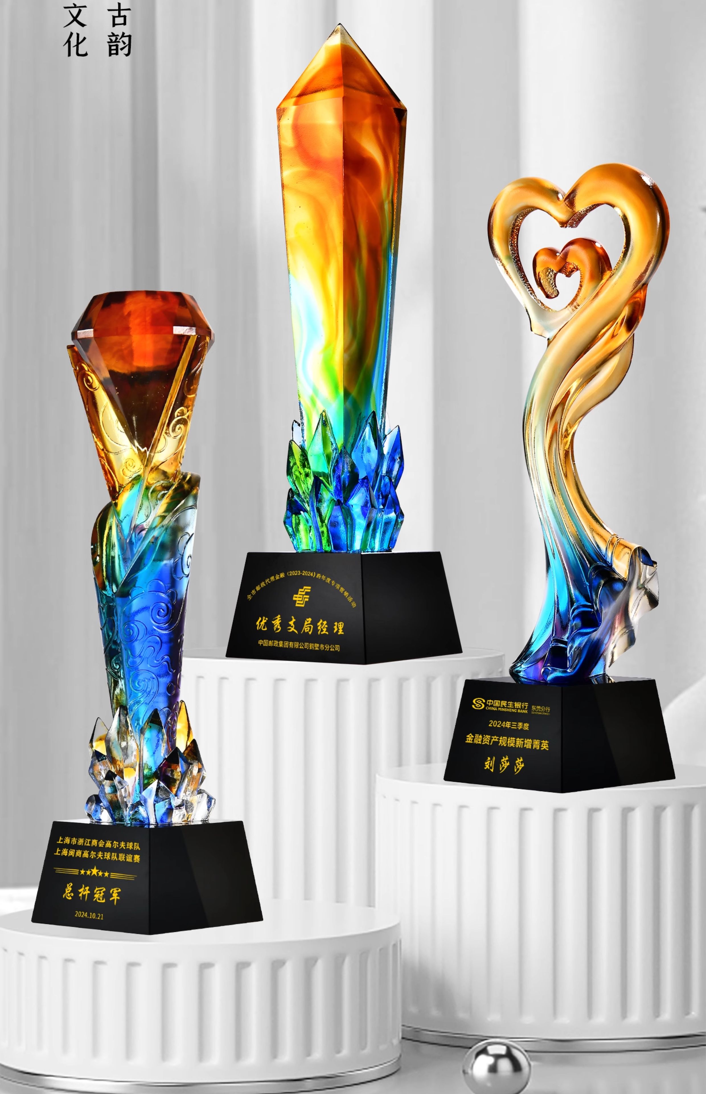1045 / 琉璃奖杯高档大气创意定制年会优秀员工定做冠军水晶蛇年奖牌古法