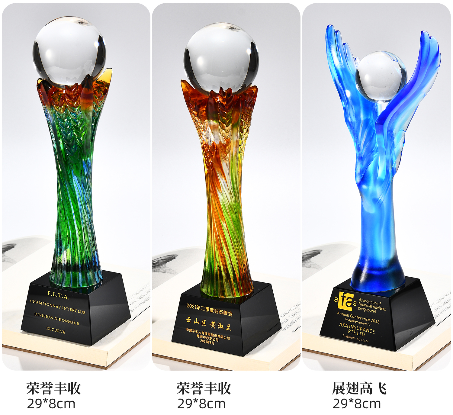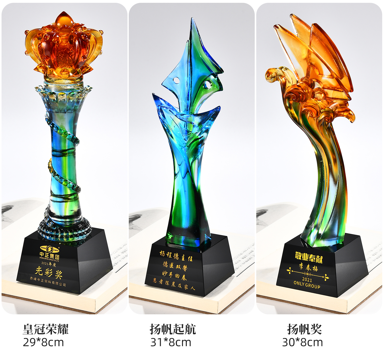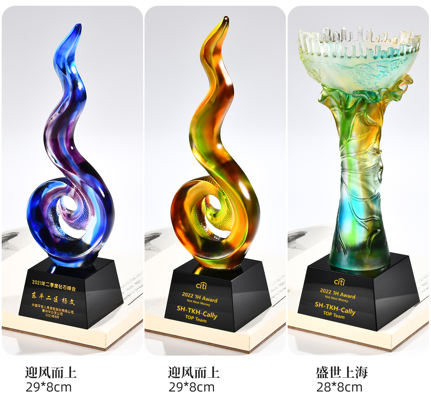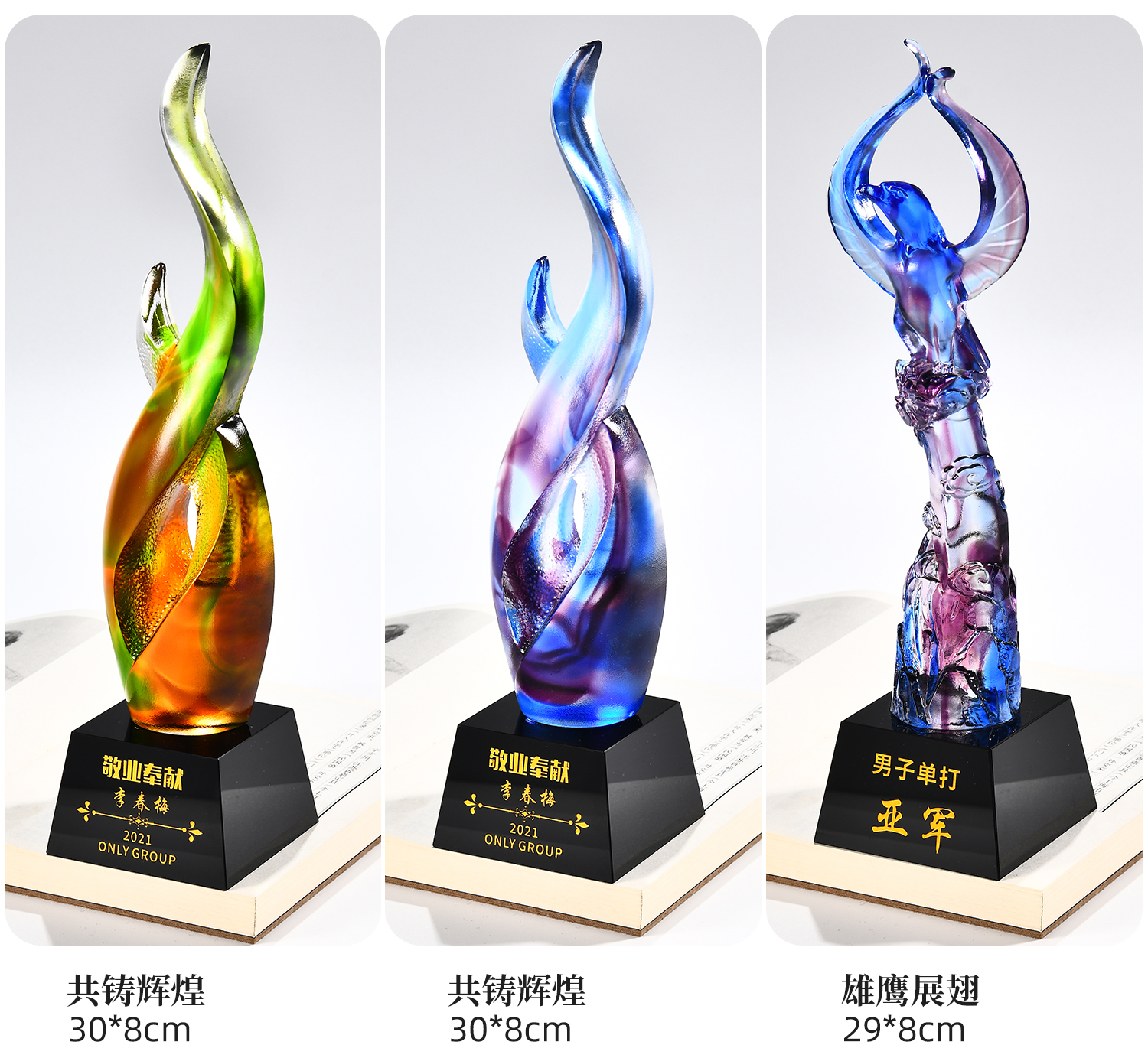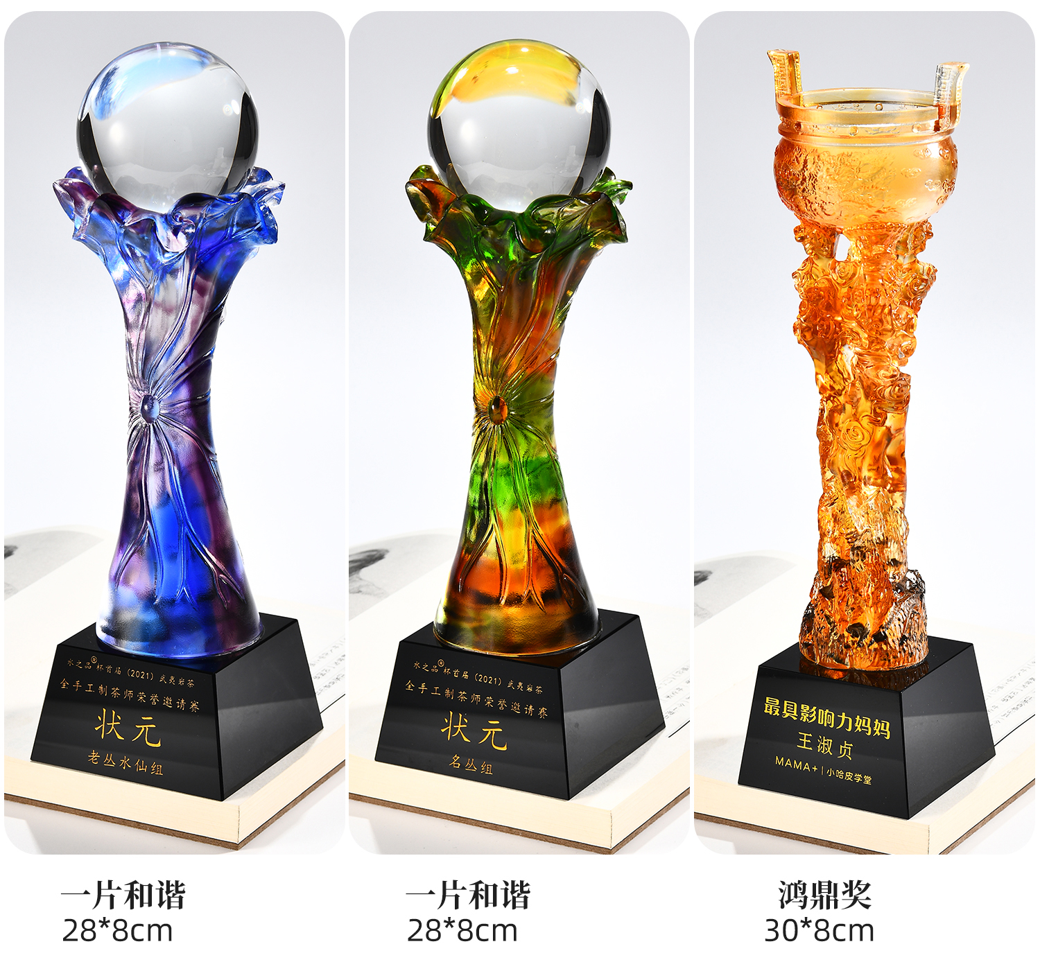 1045 / 琉璃奖杯高档大气创意定制年会优秀员工定做冠军水晶蛇年奖牌古法