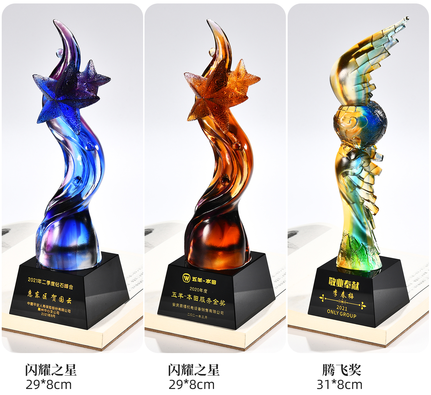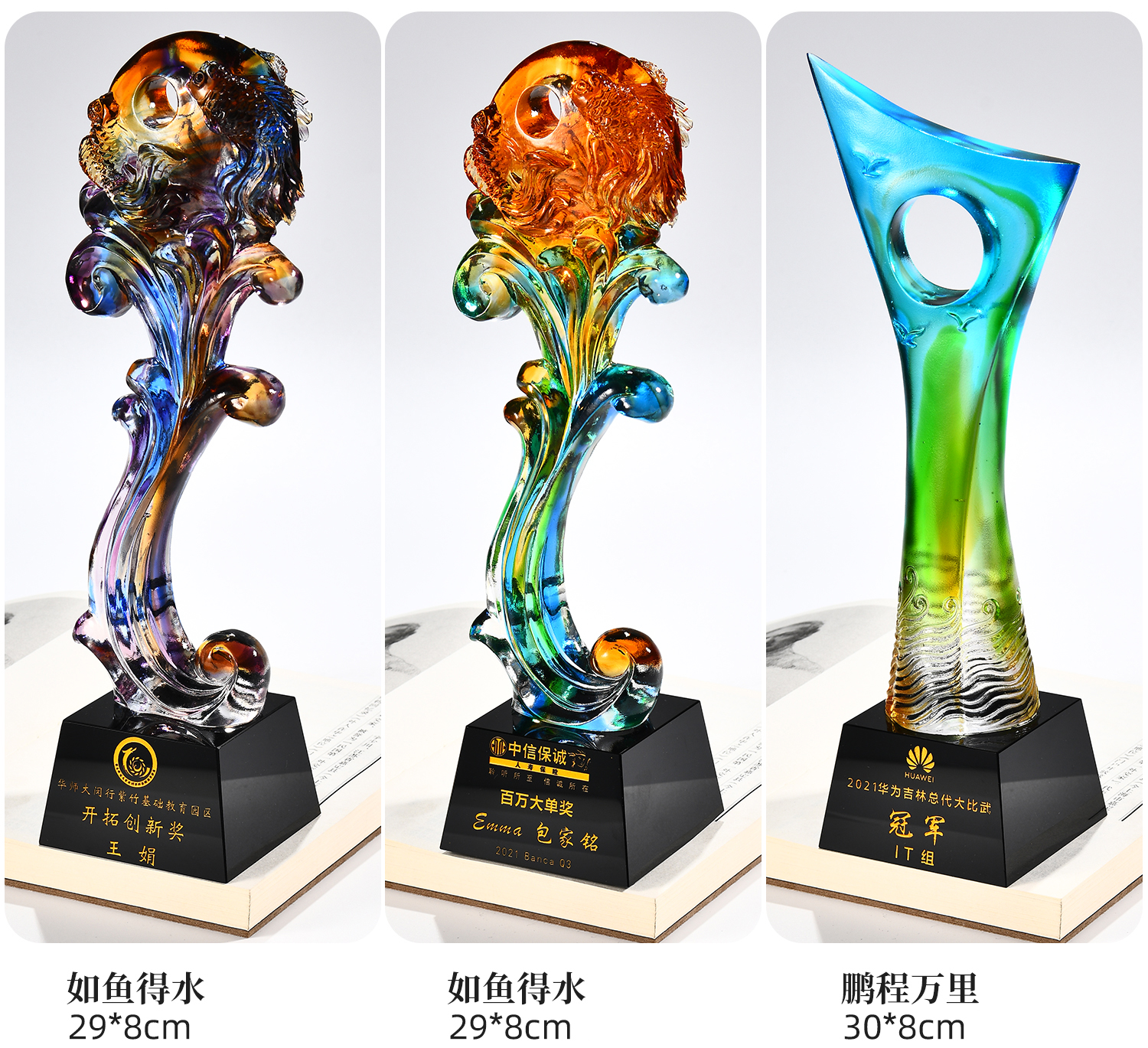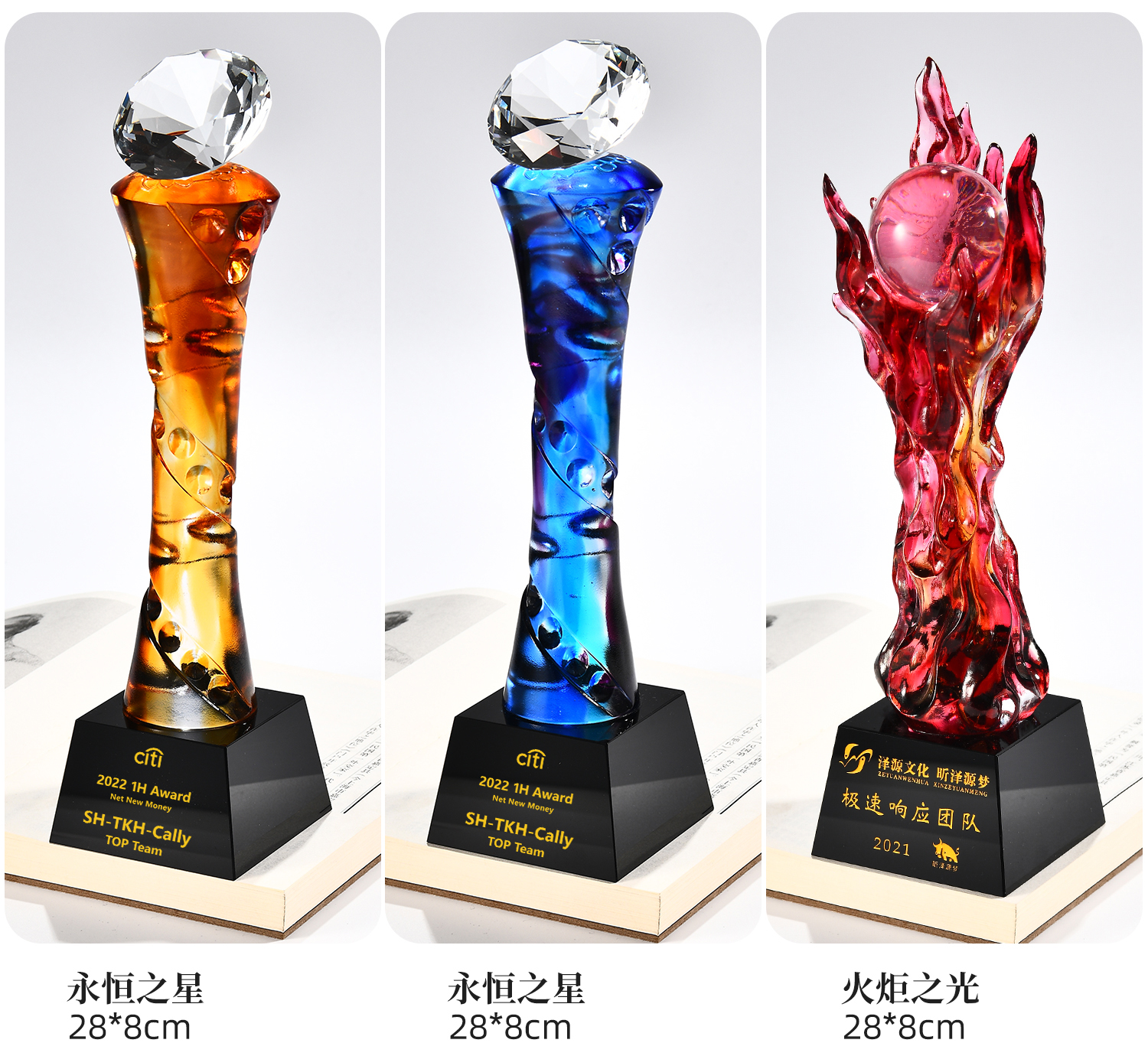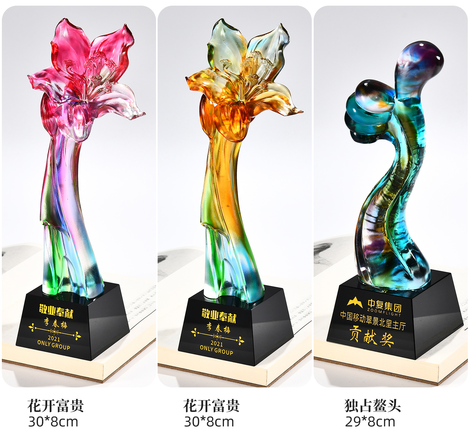 1045 / 琉璃奖杯高档大气创意定制年会优秀员工定做冠军水晶蛇年奖牌古法