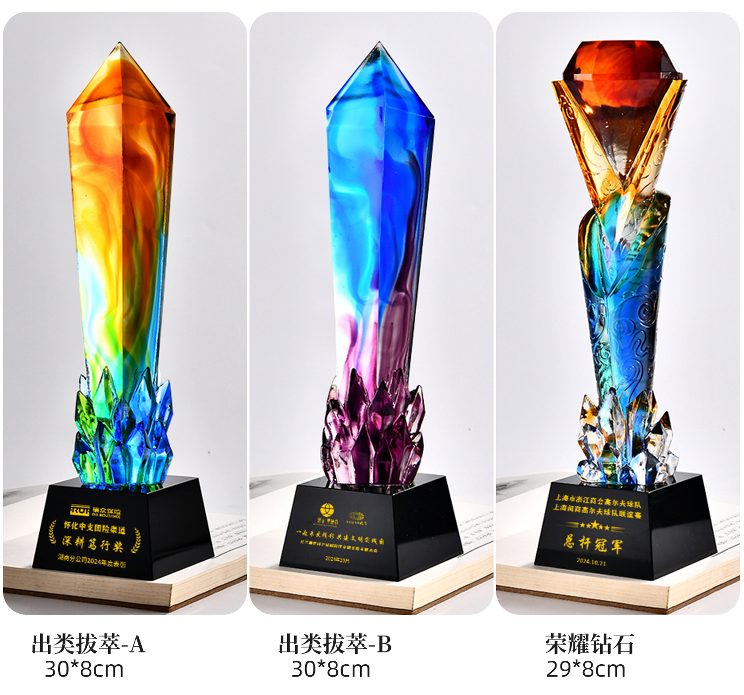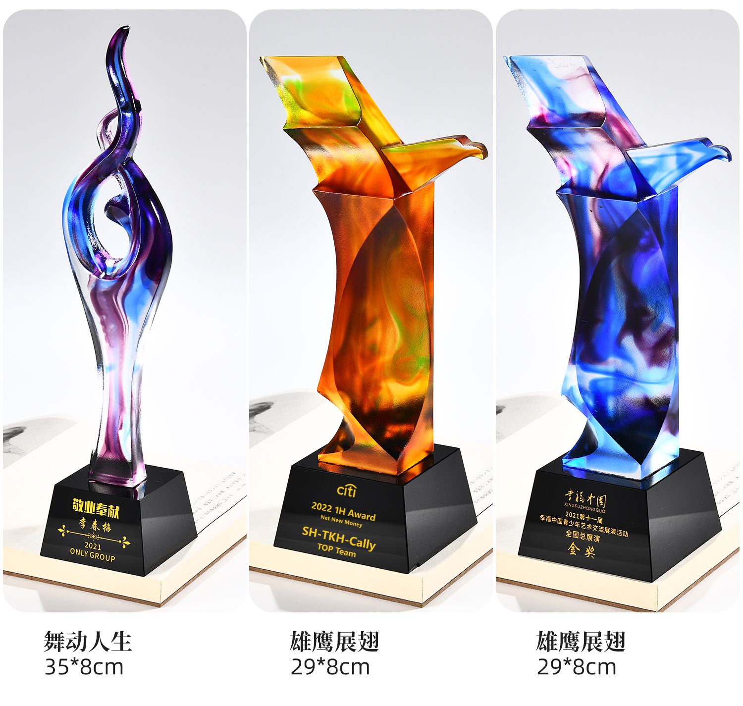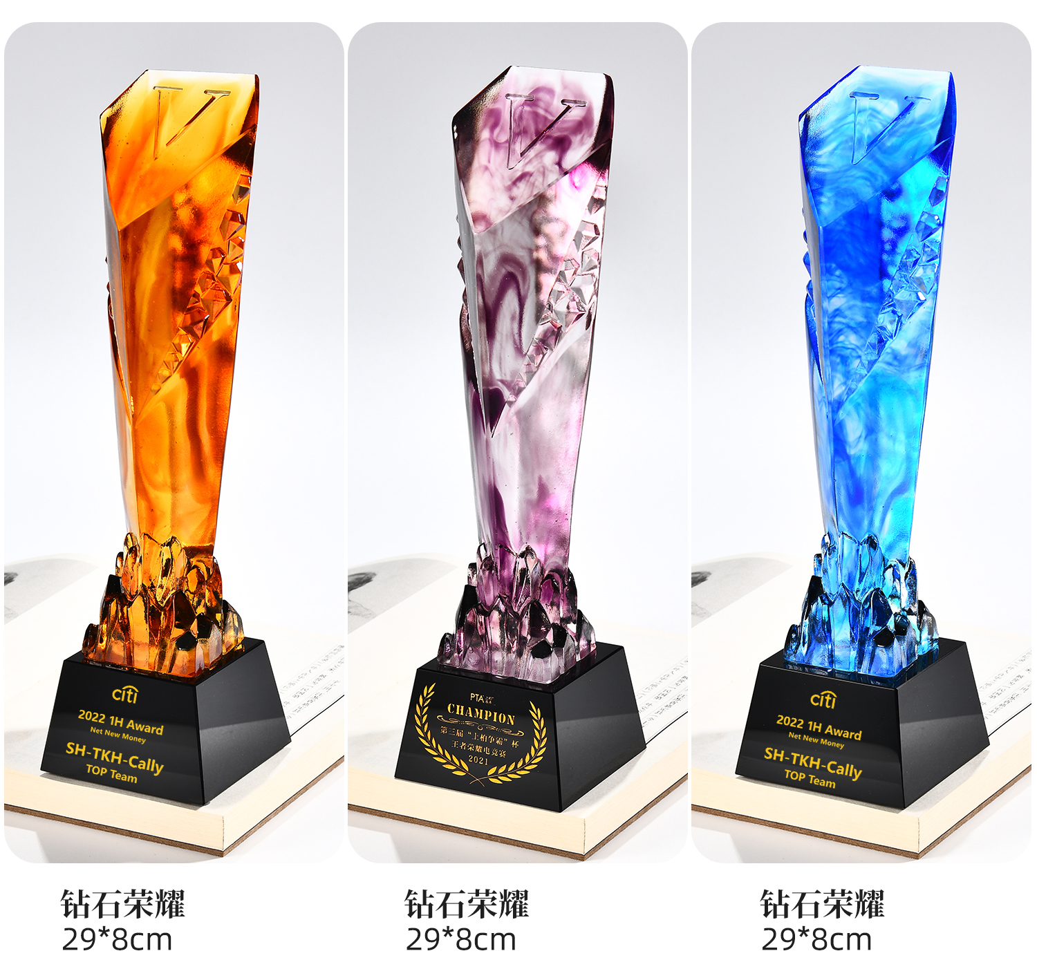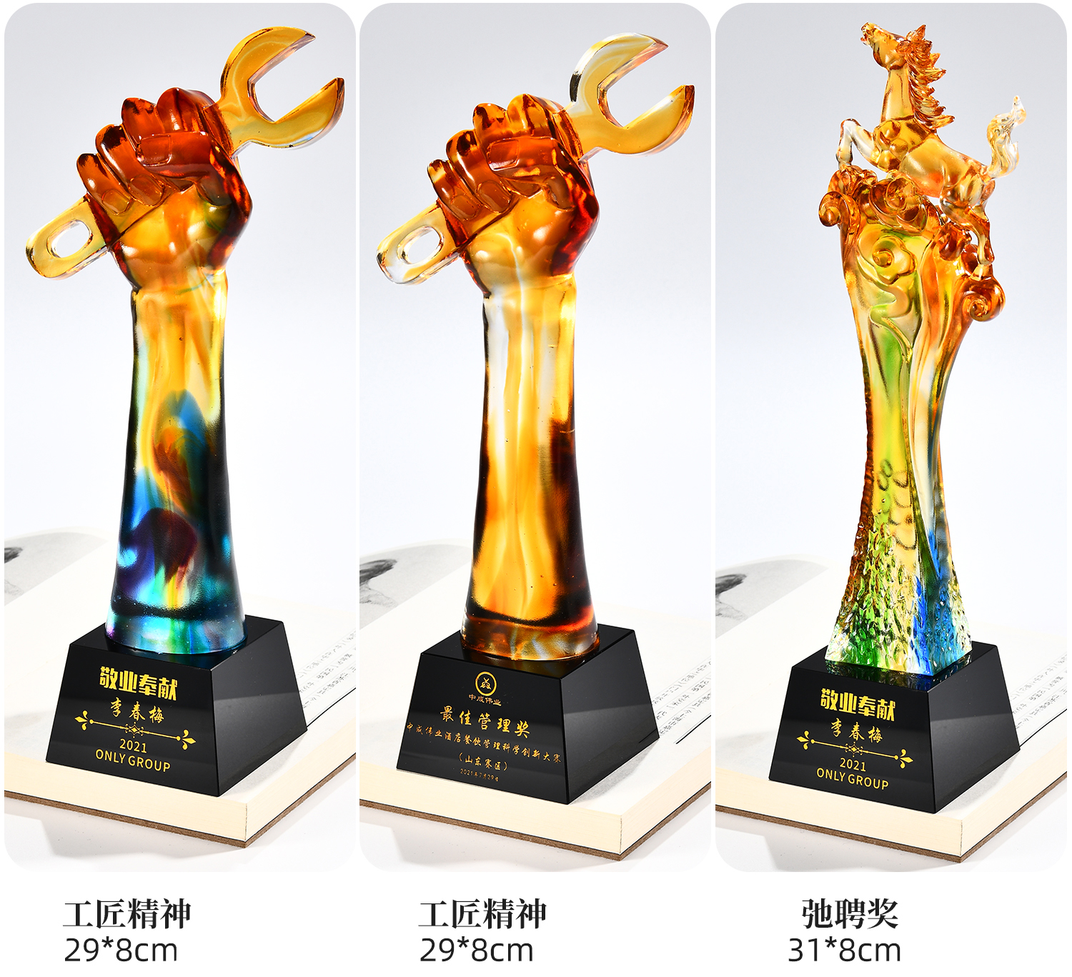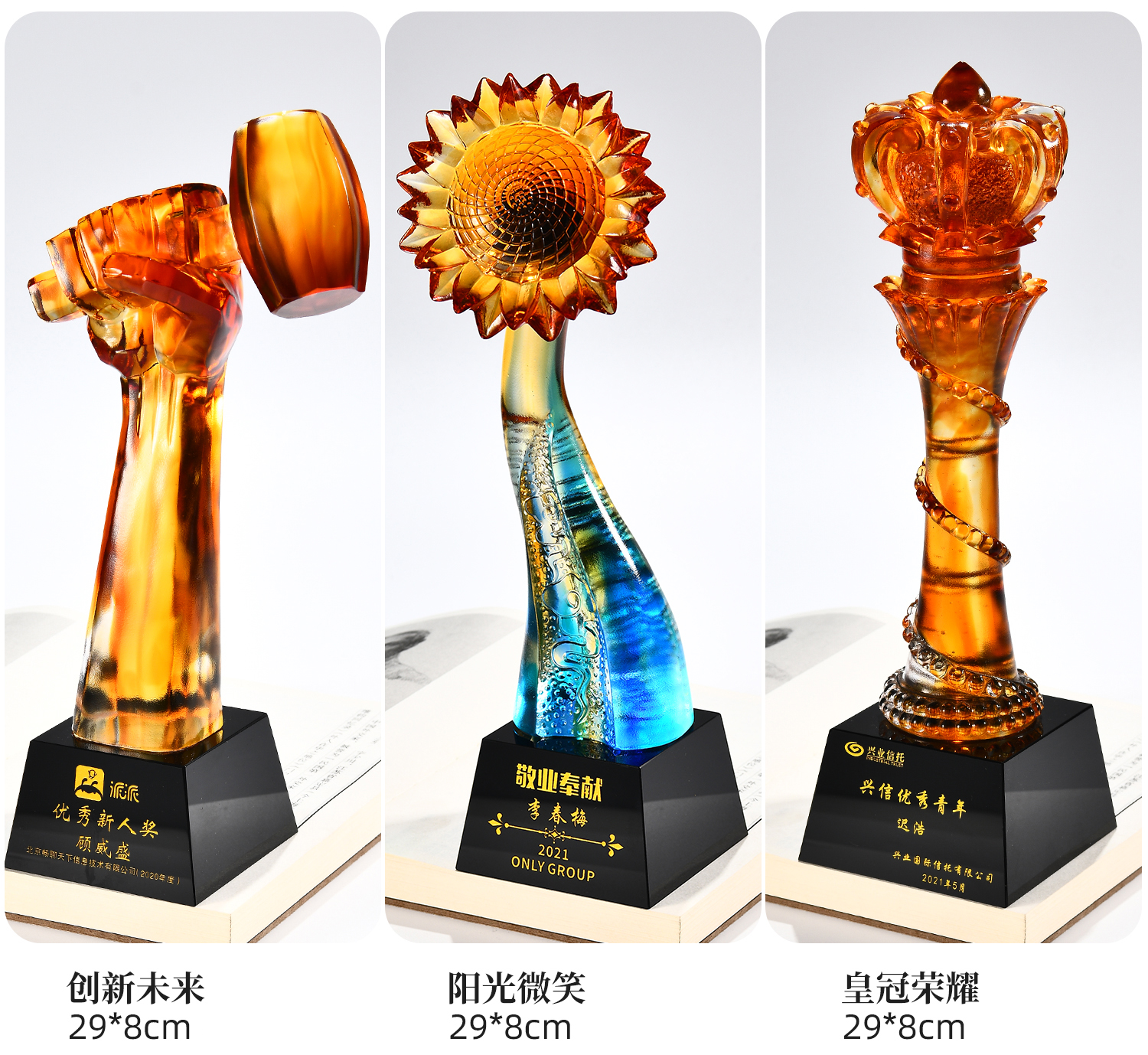 1045 / 琉璃奖杯高档大气创意定制年会优秀员工定做冠军水晶蛇年奖牌古法