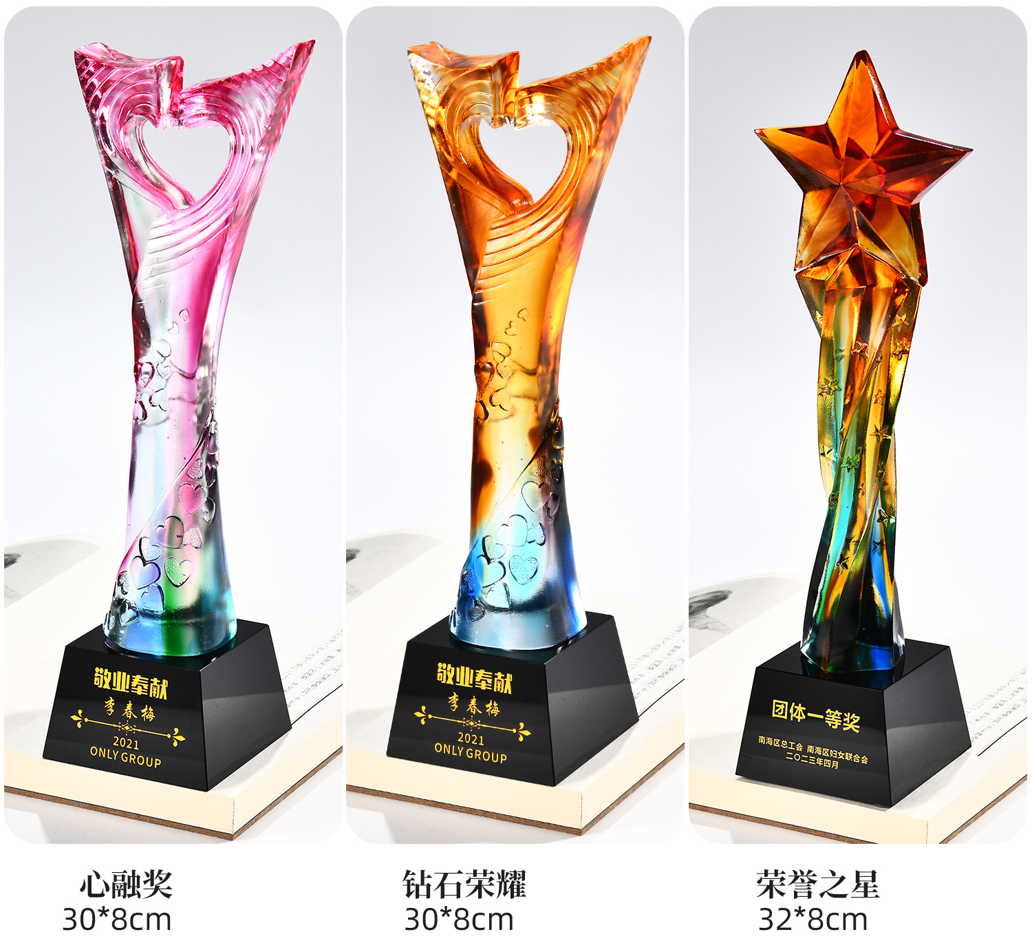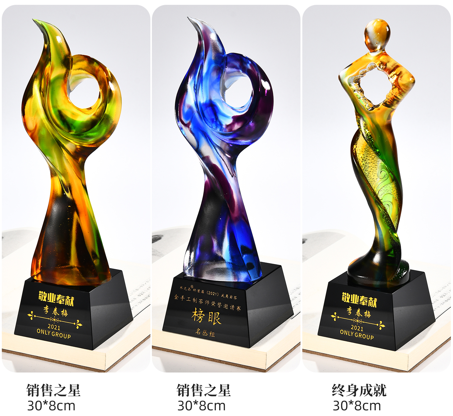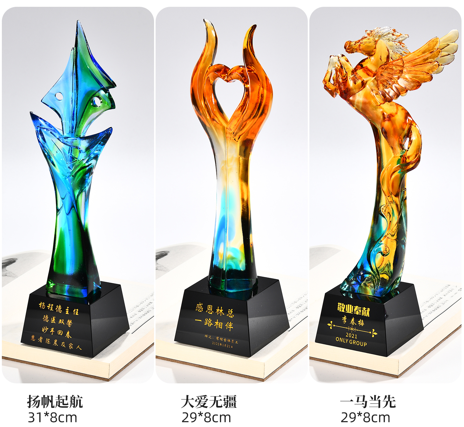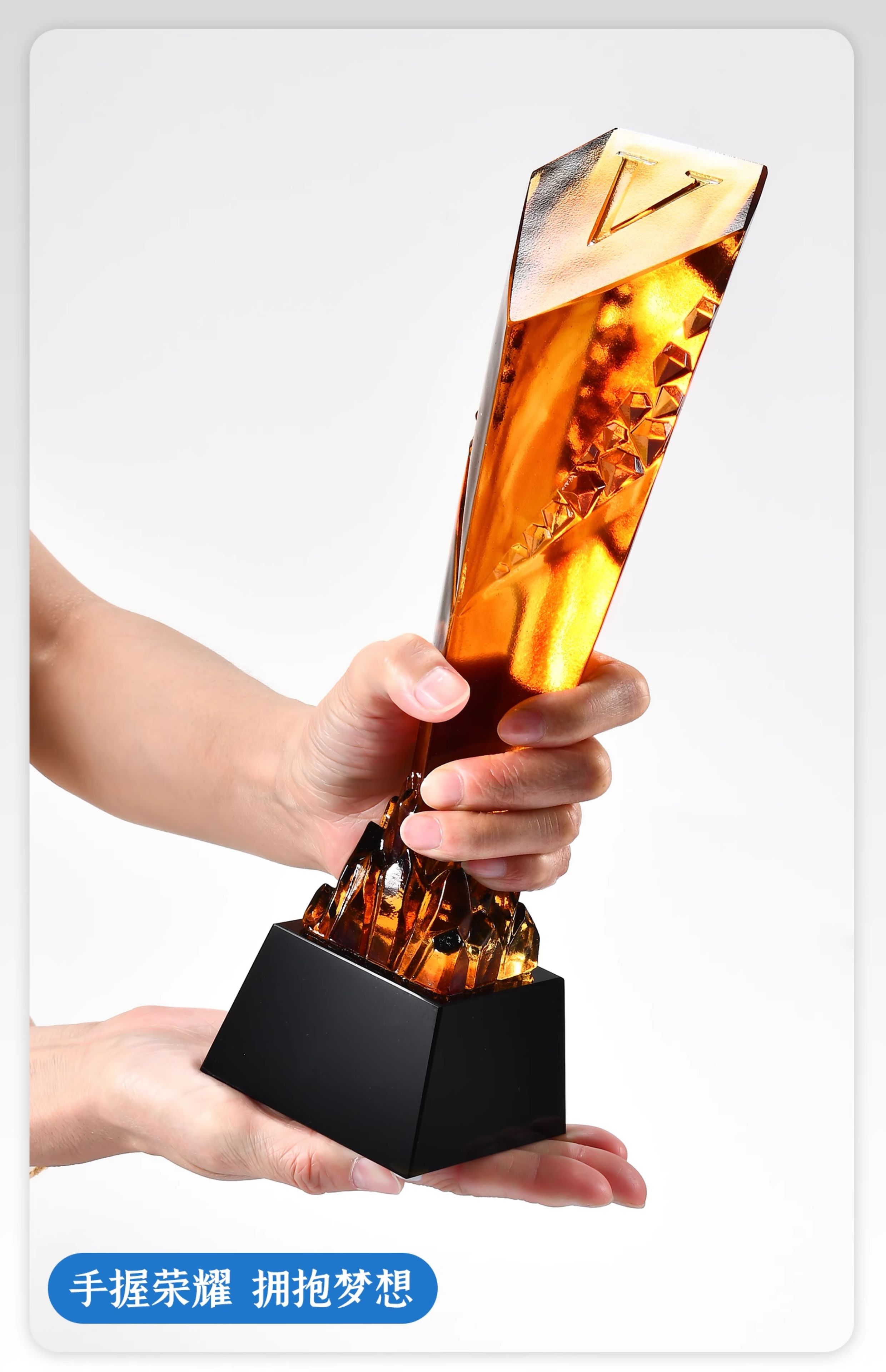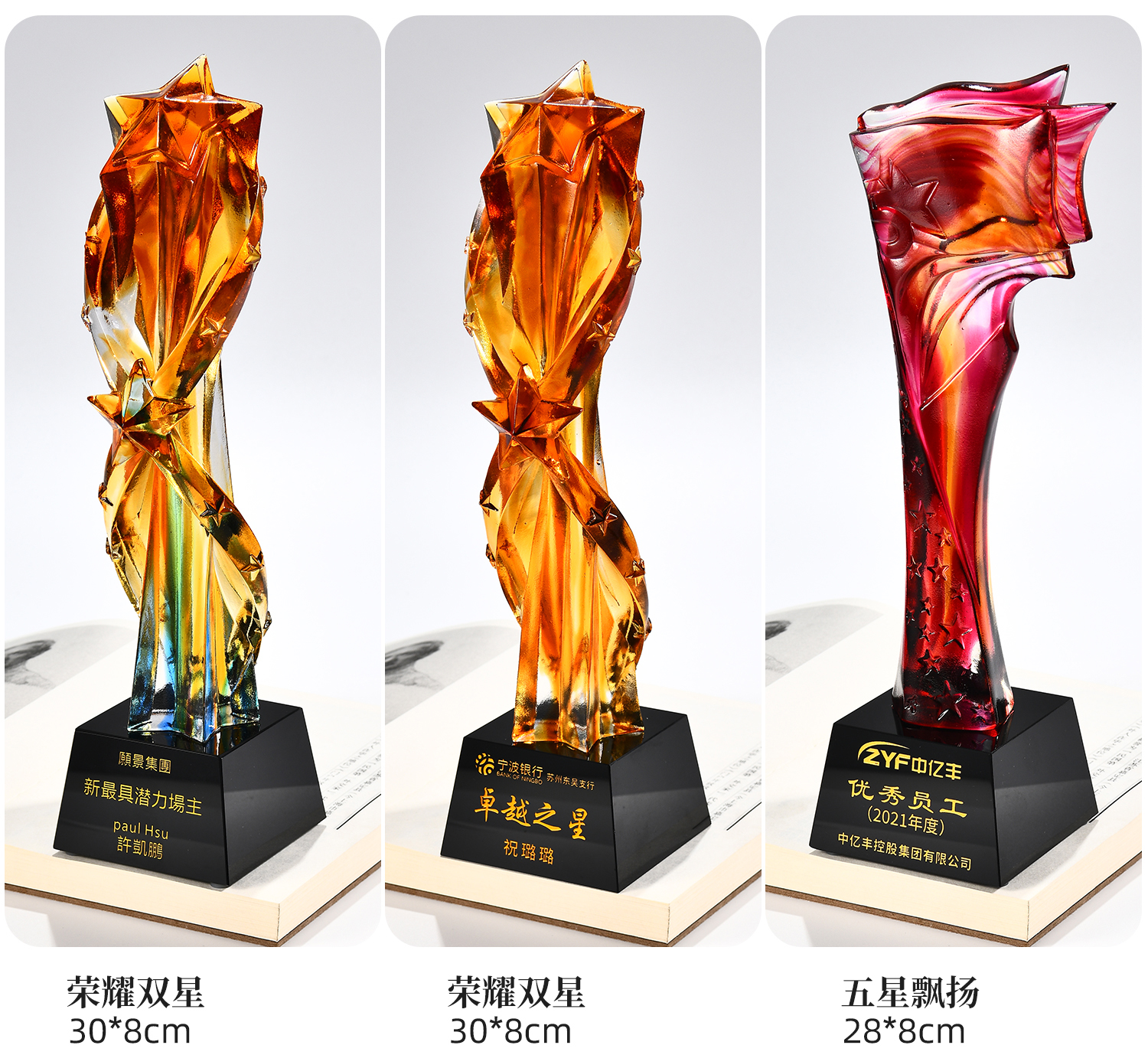 1045 / 琉璃奖杯高档大气创意定制年会优秀员工定做冠军水晶蛇年奖牌古法
