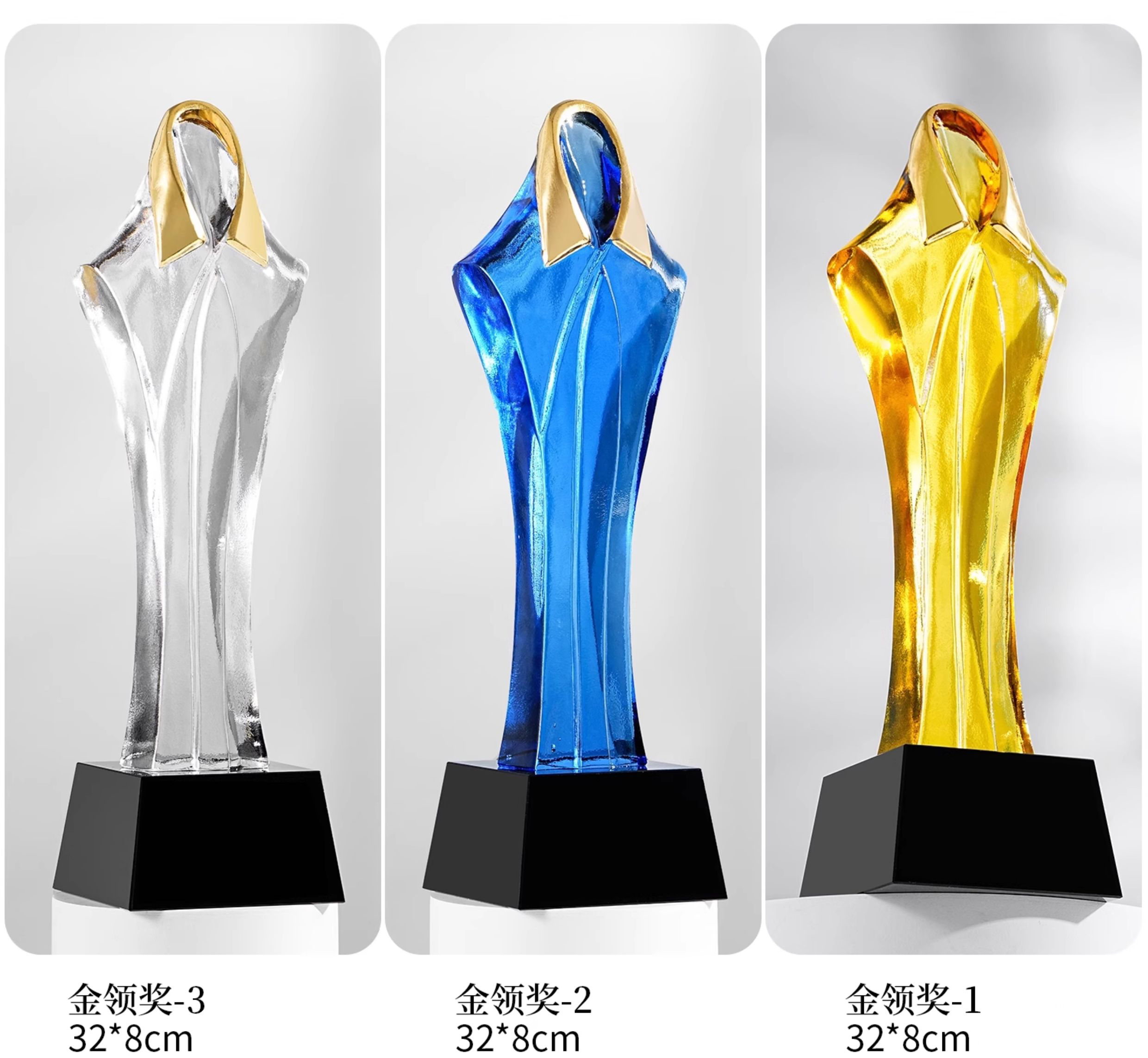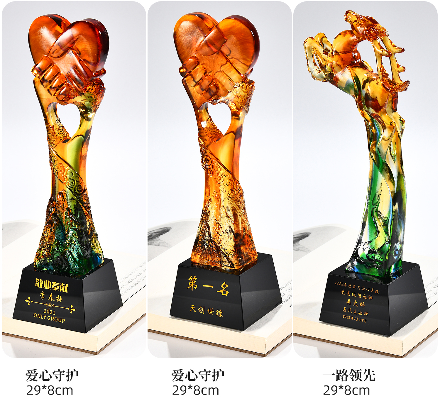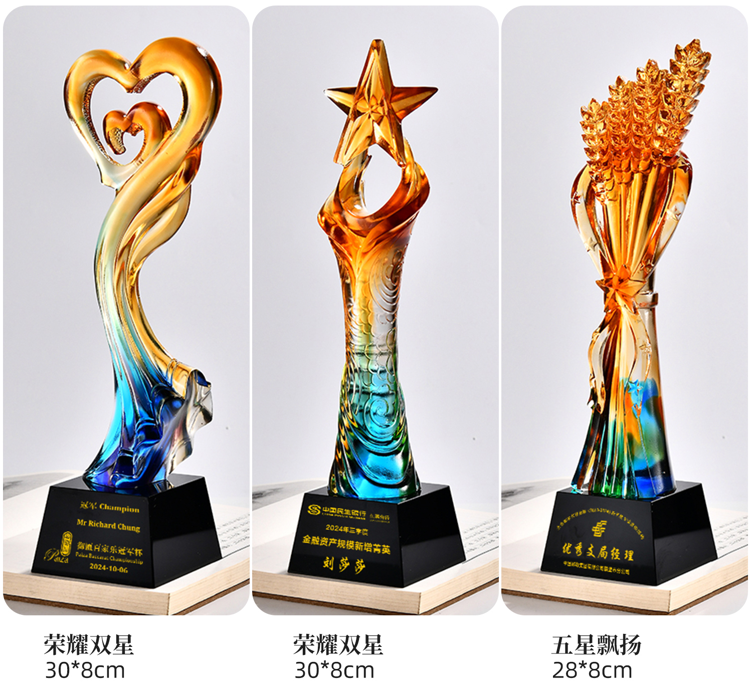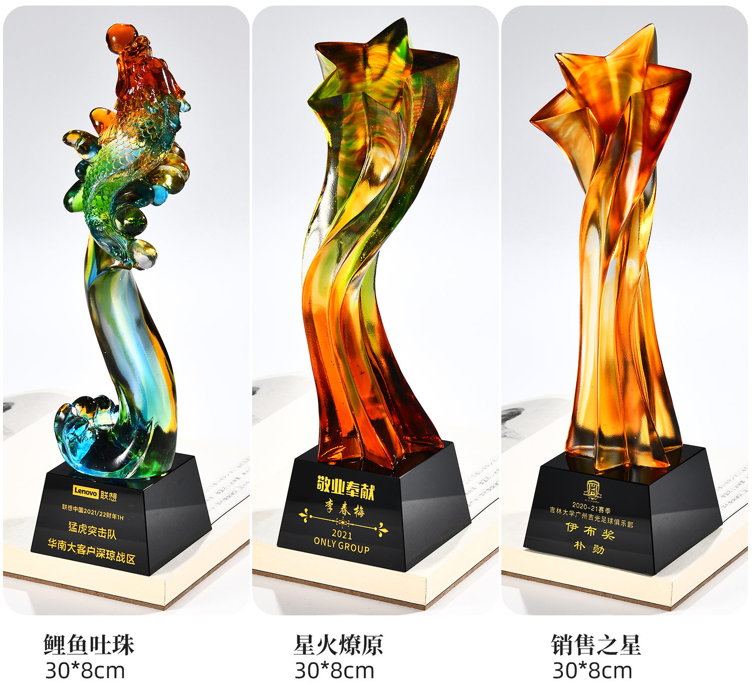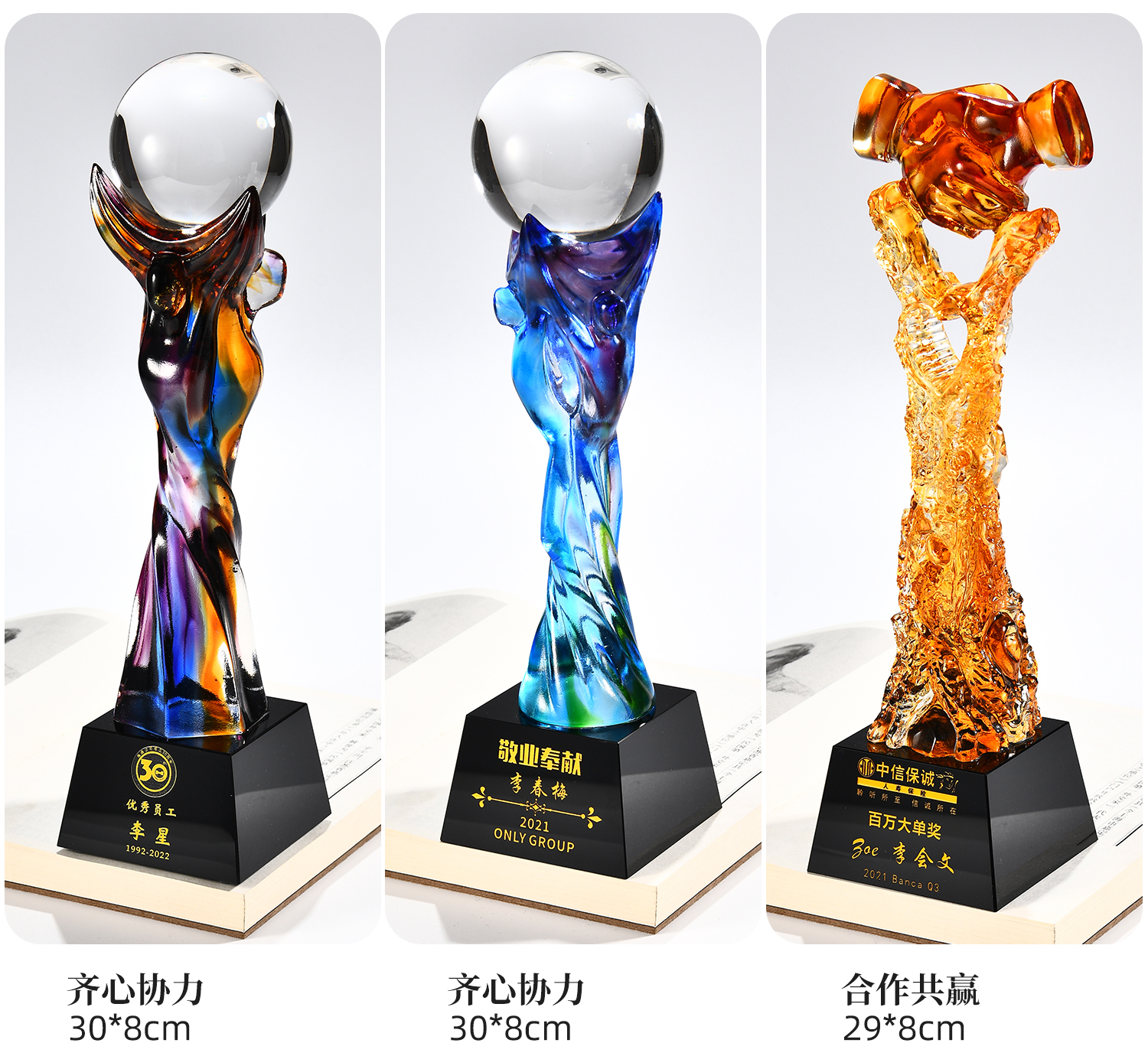 1045 / 琉璃奖杯高档大气创意定制年会优秀员工定做冠军水晶蛇年奖牌古法