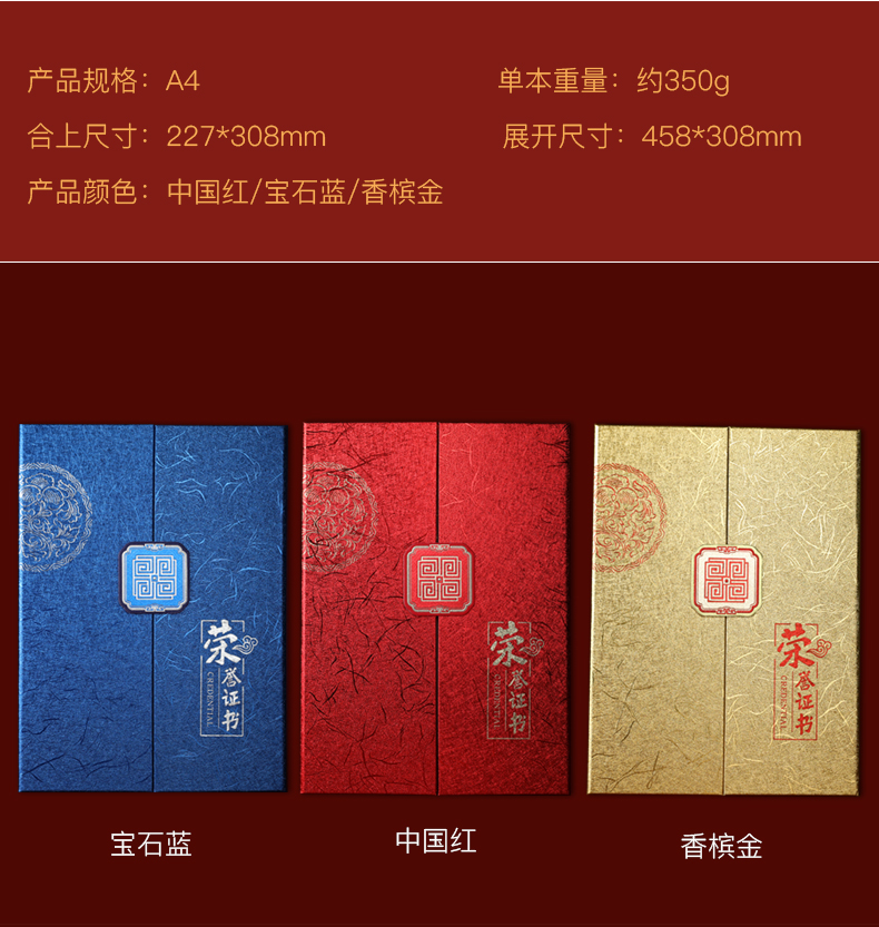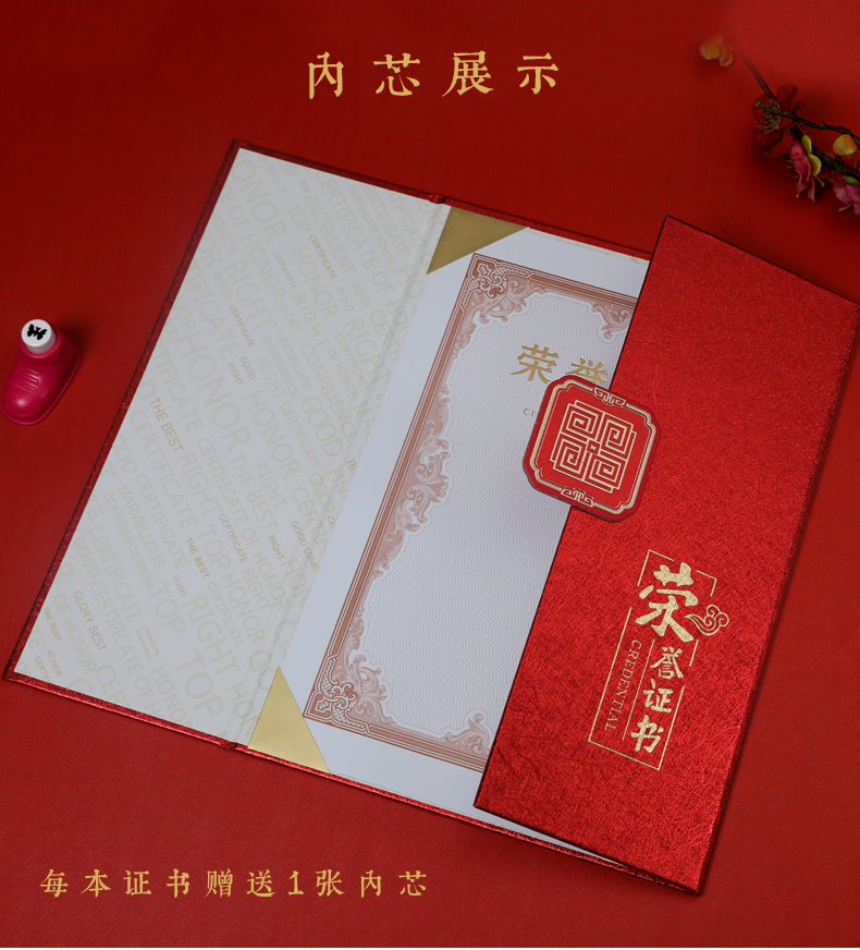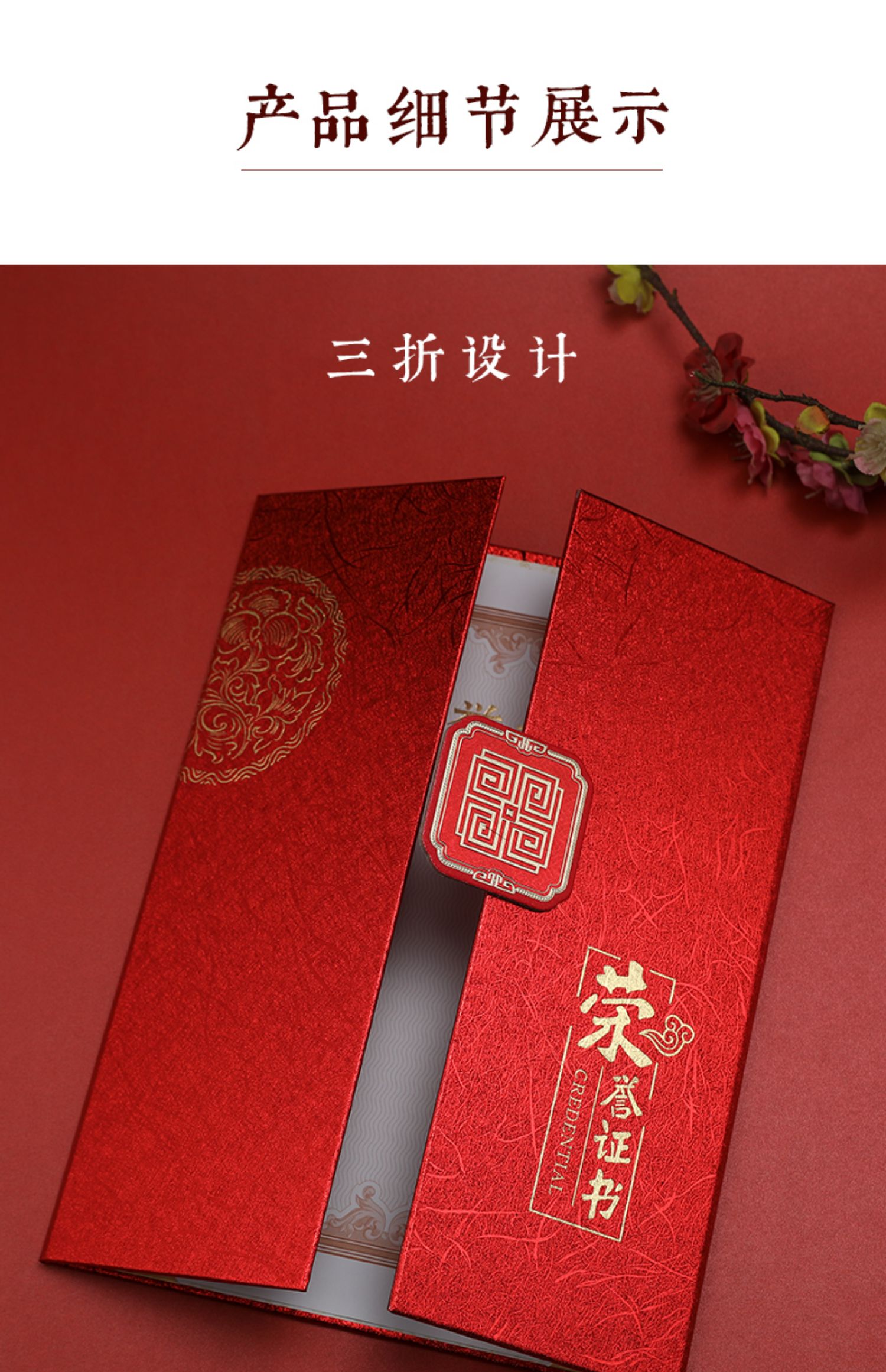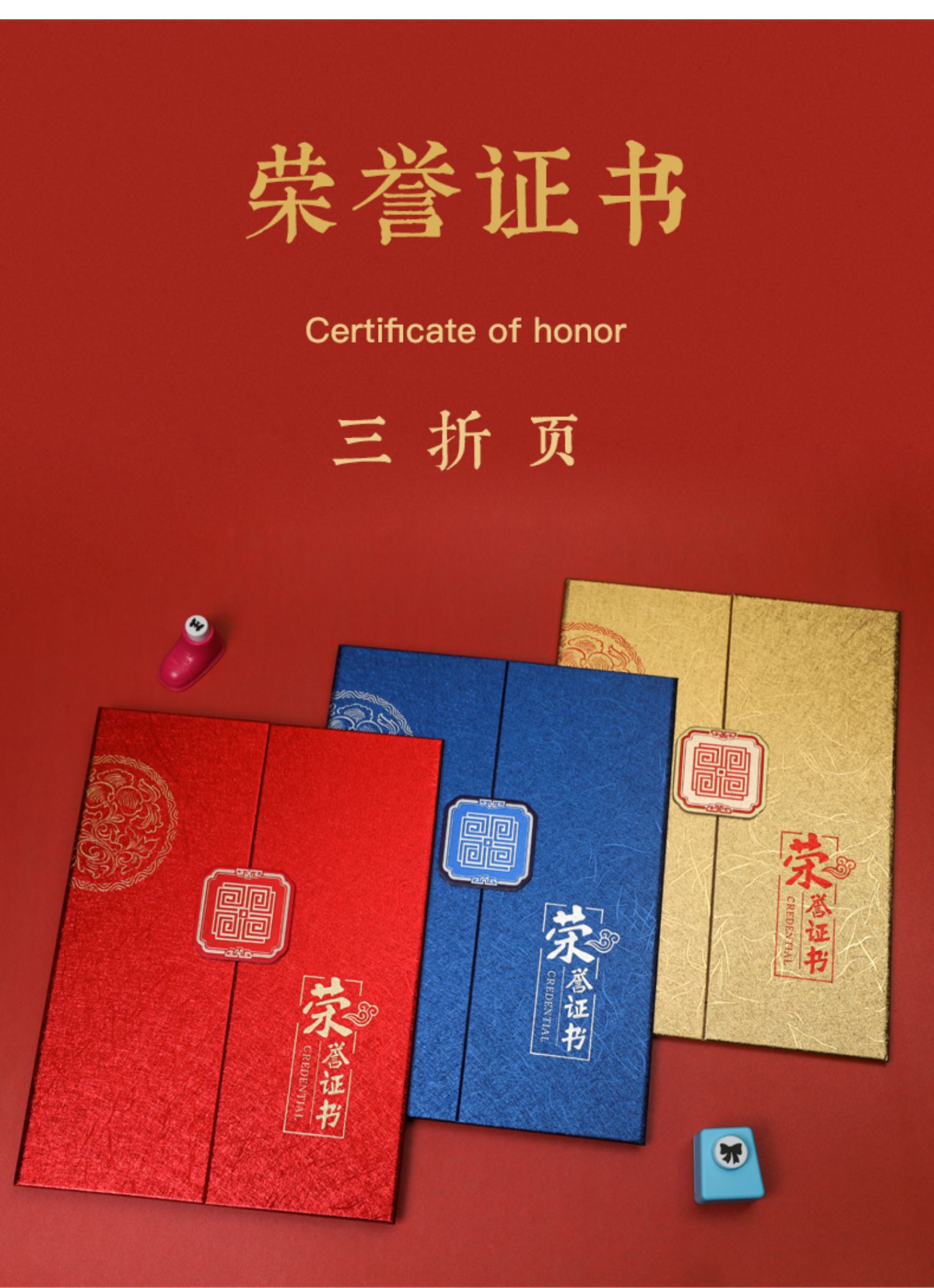 1062 / 三折新款荣誉证书外壳封面奖状定制定做奥利丝红蓝金色国潮风颁奖获得奖表彰证书横竖A4送加厚内页芯可打印