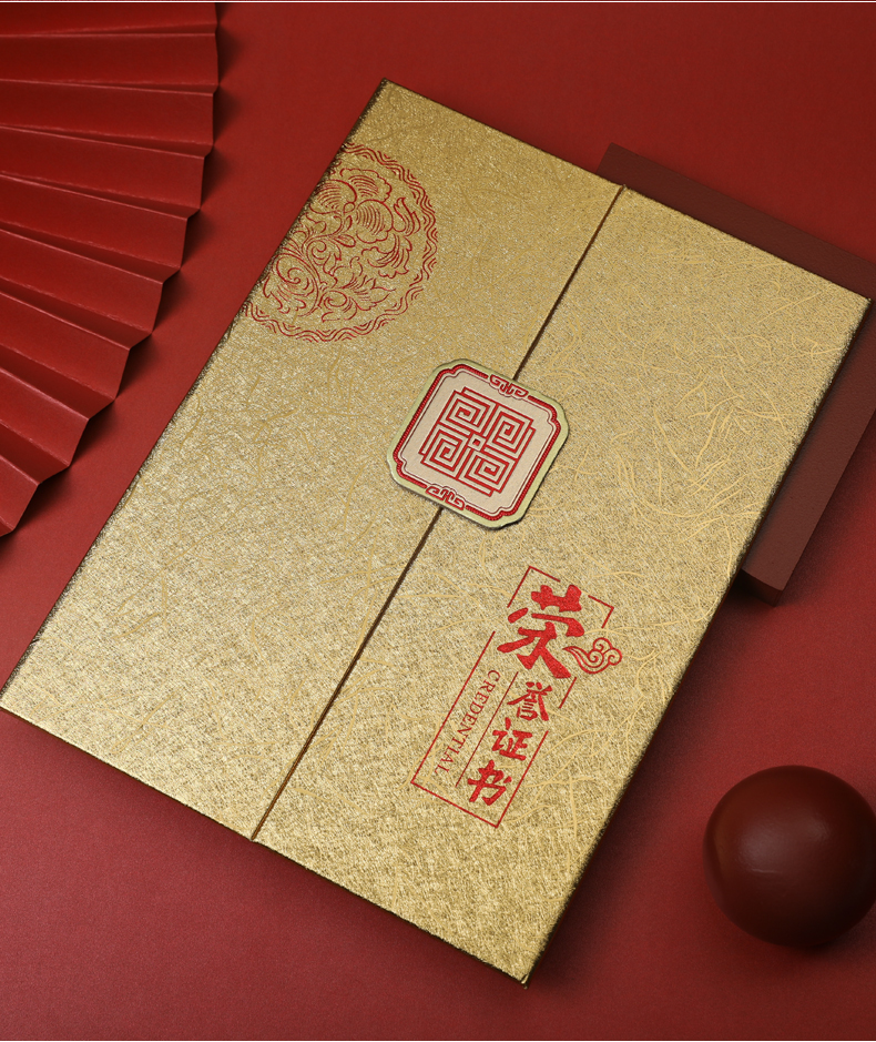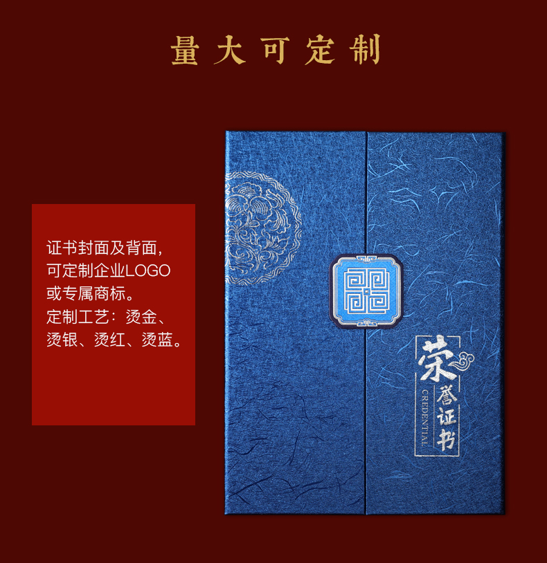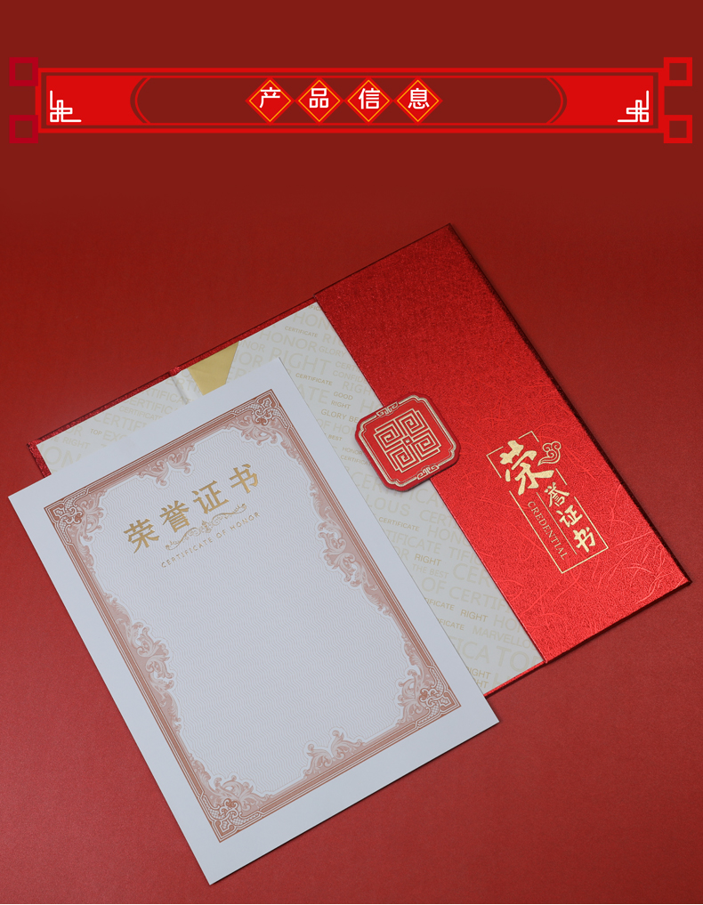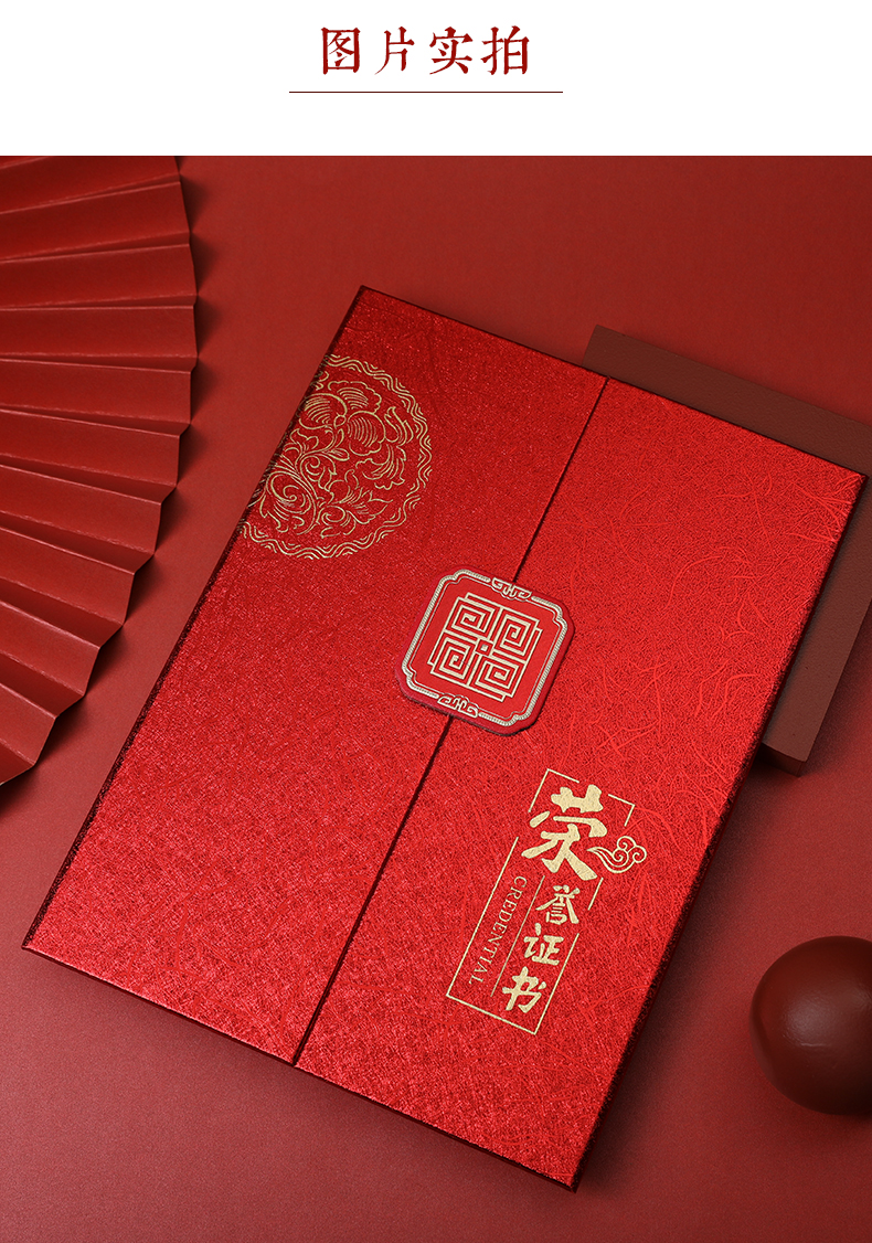 1062 / 三折新款荣誉证书外壳封面奖状定制定做奥利丝红蓝金色国潮风颁奖获得奖表彰证书横竖A4送加厚内页芯可打印