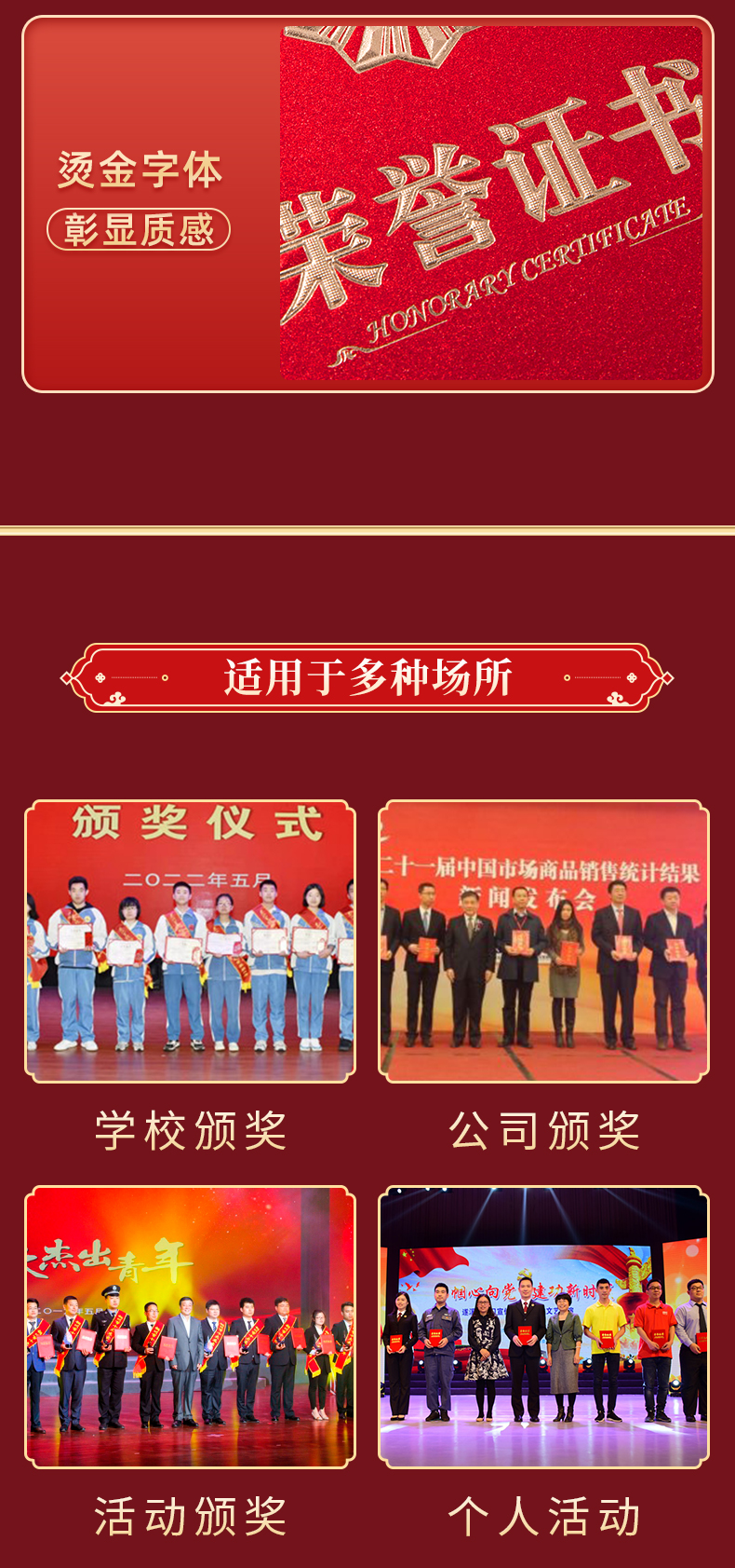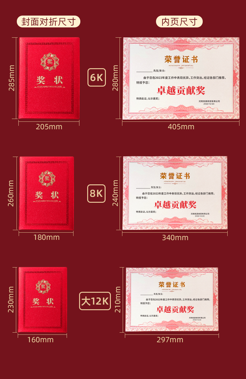 1063 / 荣誉证书证件书封面外壳封皮定制内页内芯打印企业优秀员工志愿者表彰奖励获奖捐赠a4奖状保护套烫金