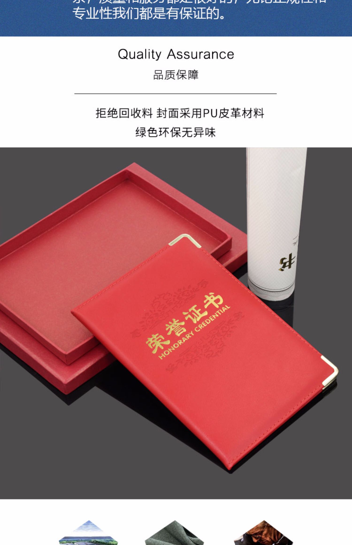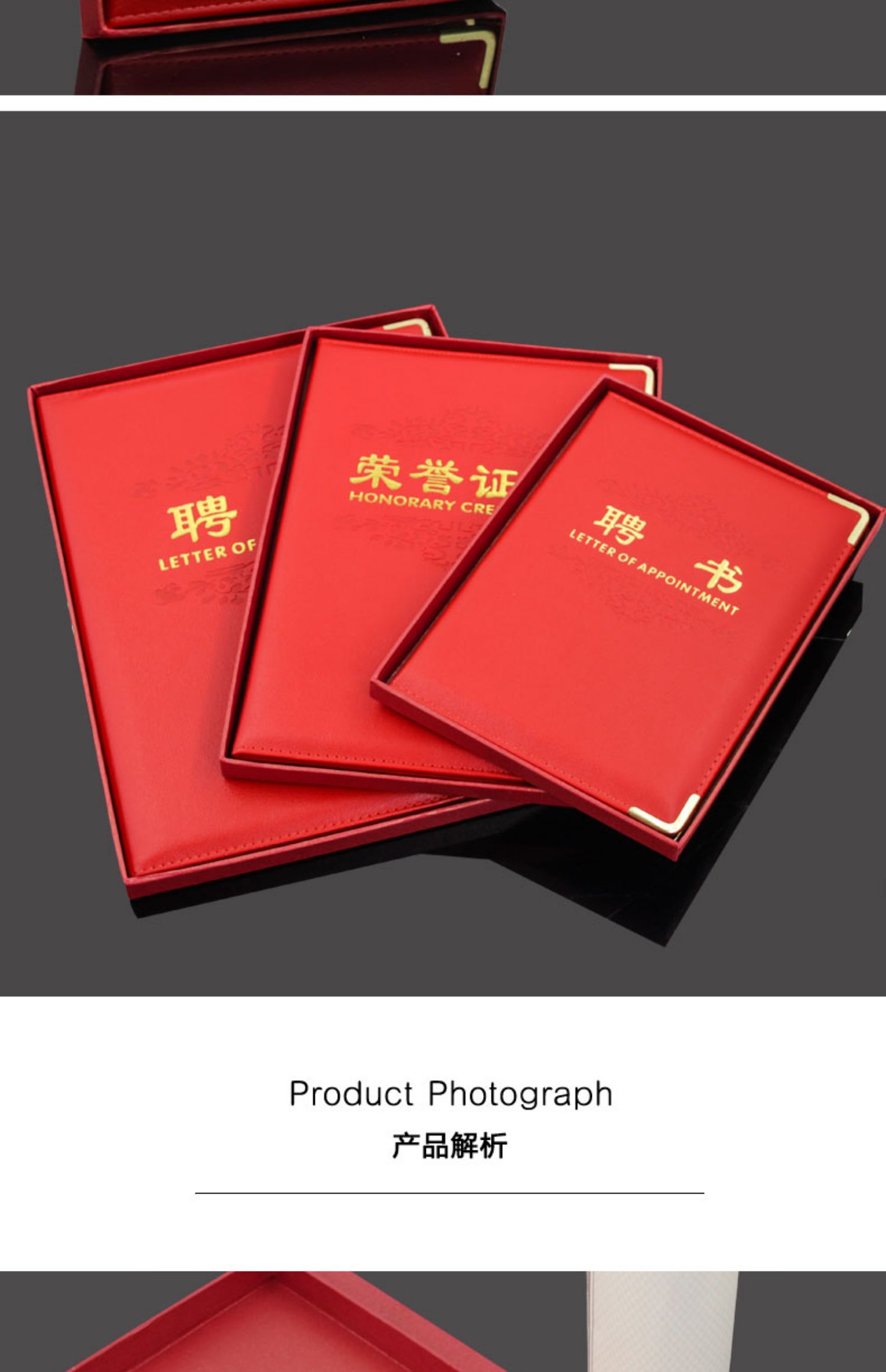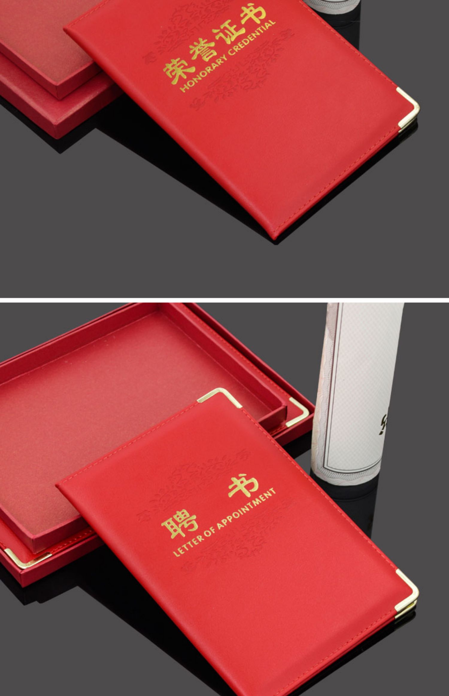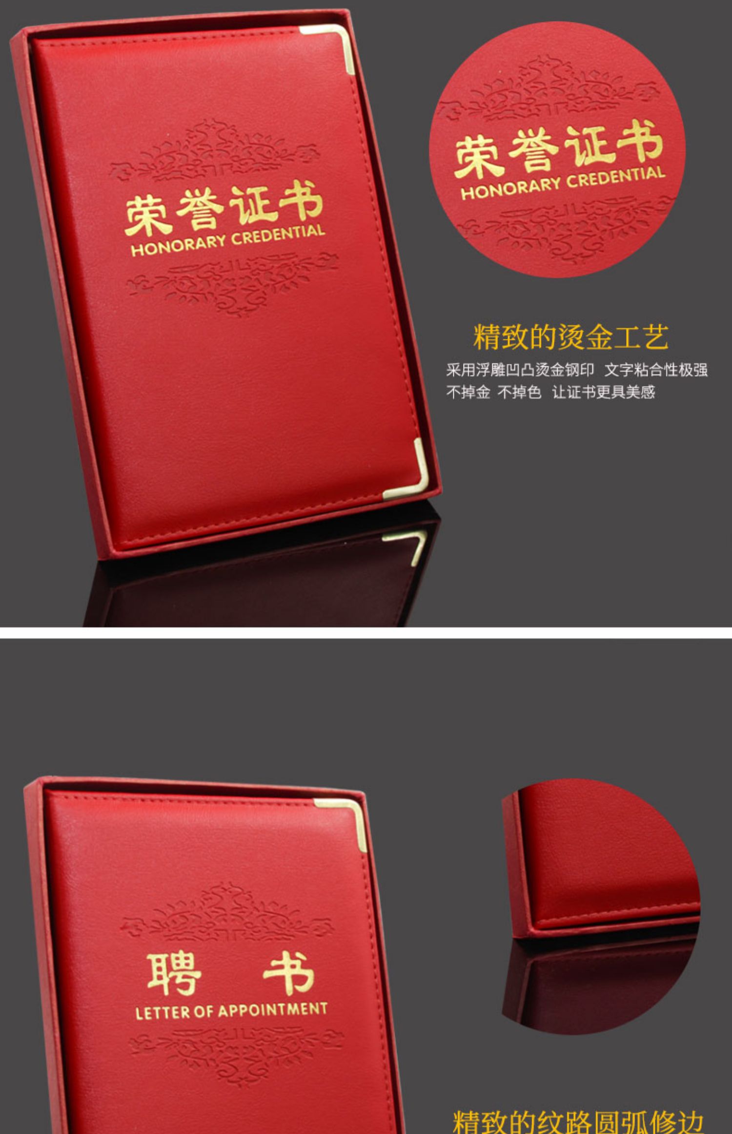 1074 / 皮革荣誉证书PU聘书皮面证书外壳奖状制作内页定制定制优秀员工证书聘请书封面定做获奖颁奖证书外壳内芯制