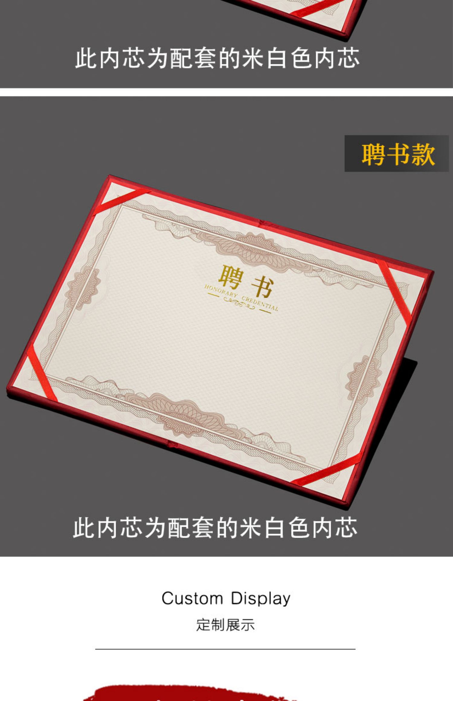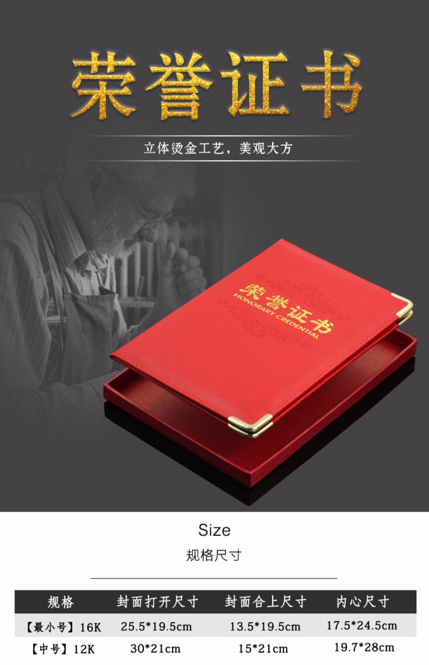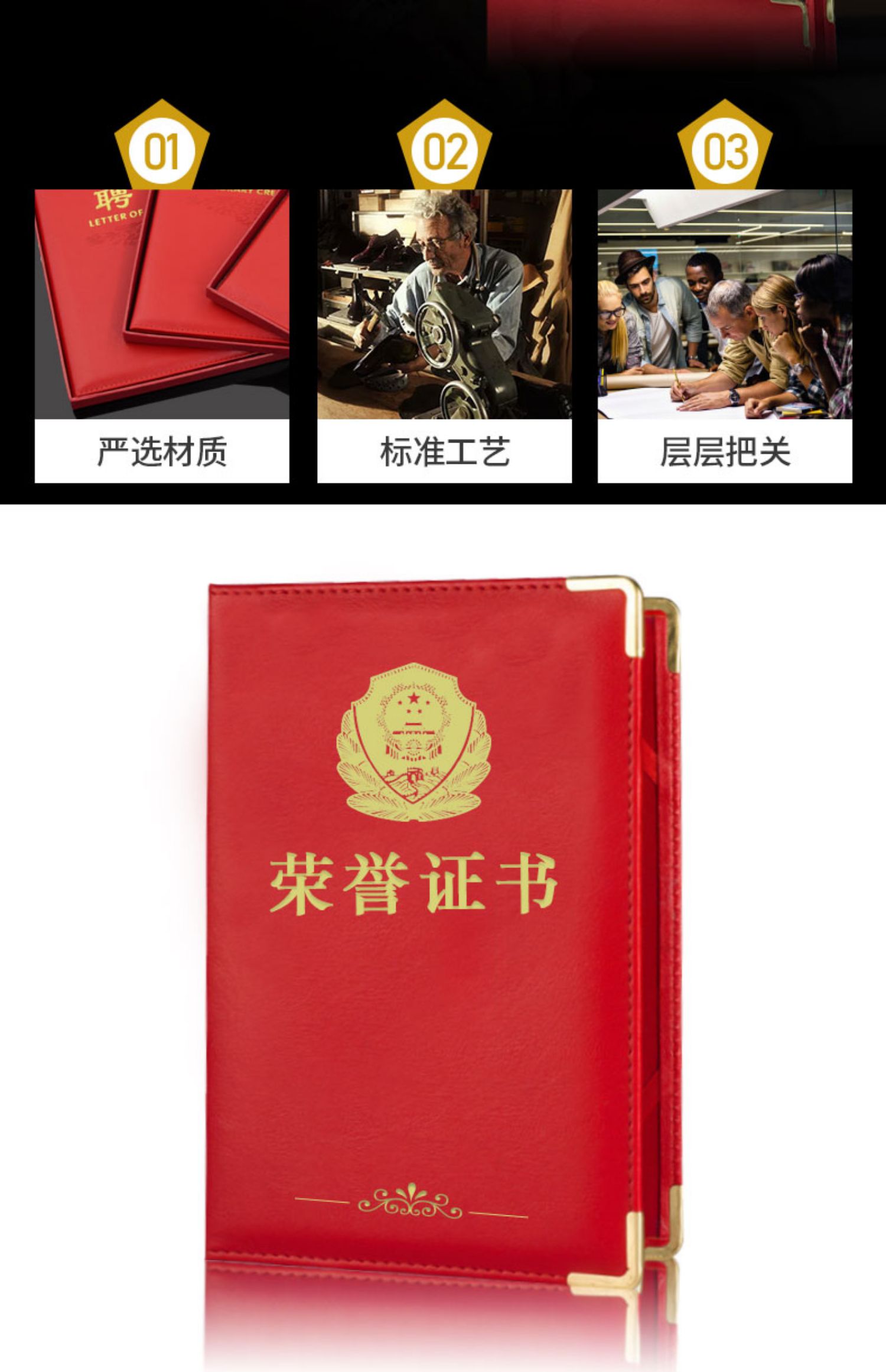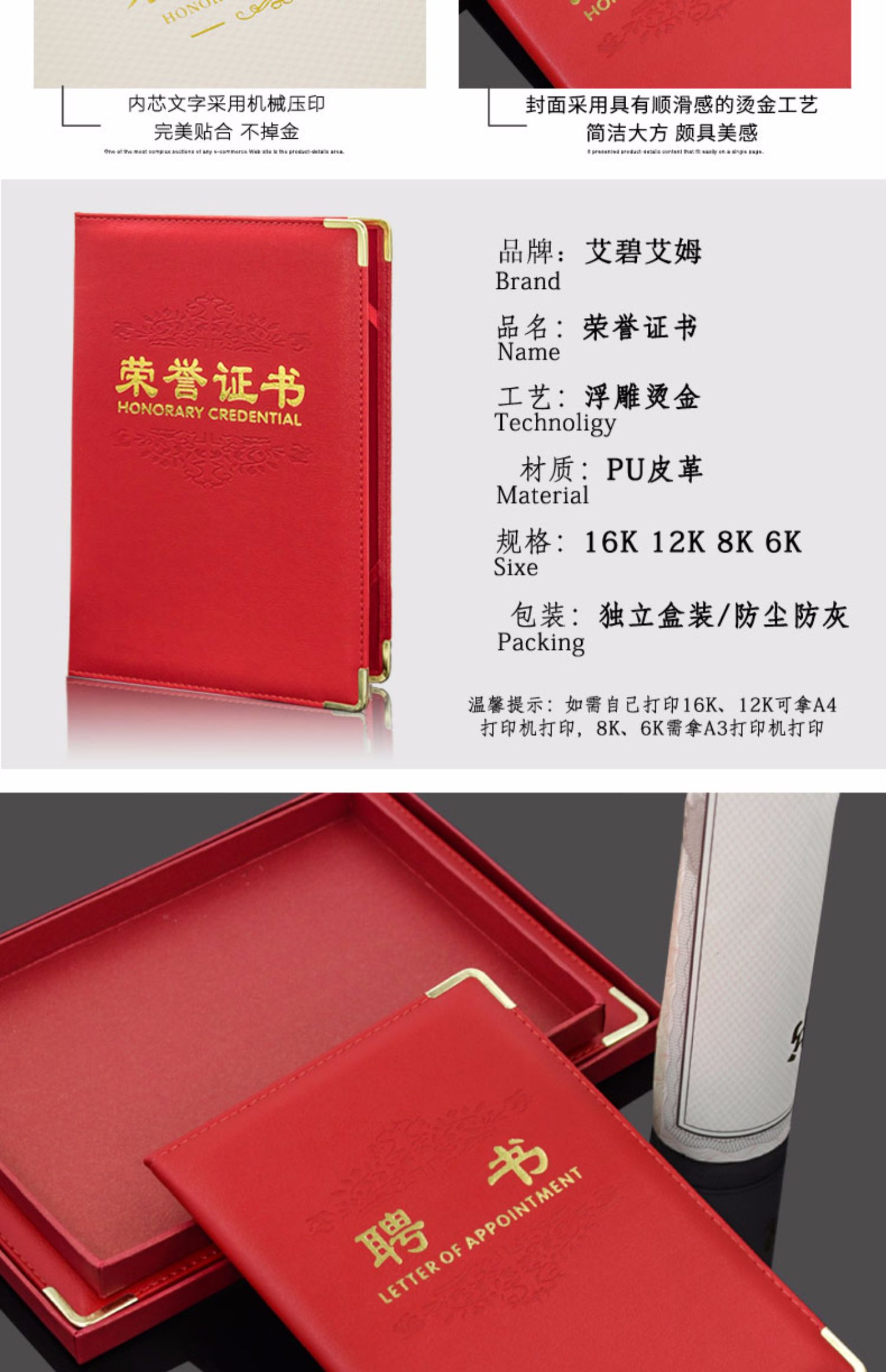1074 / 皮革荣誉证书PU聘书皮面证书外壳奖状制作内页定制定制优秀员工证书聘请书封面定做获奖颁奖证书外壳内芯制