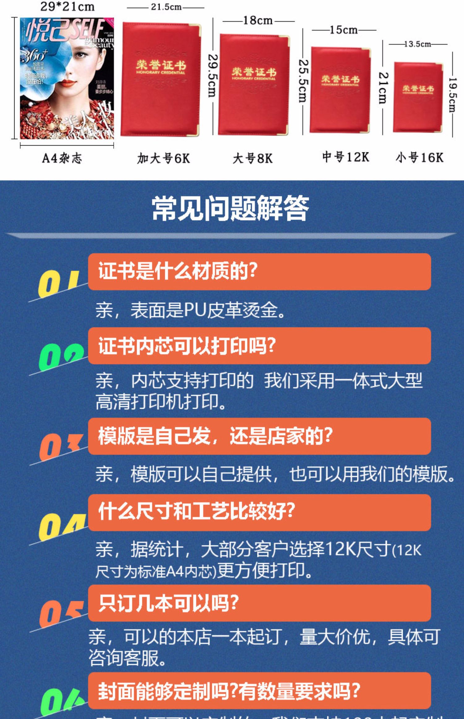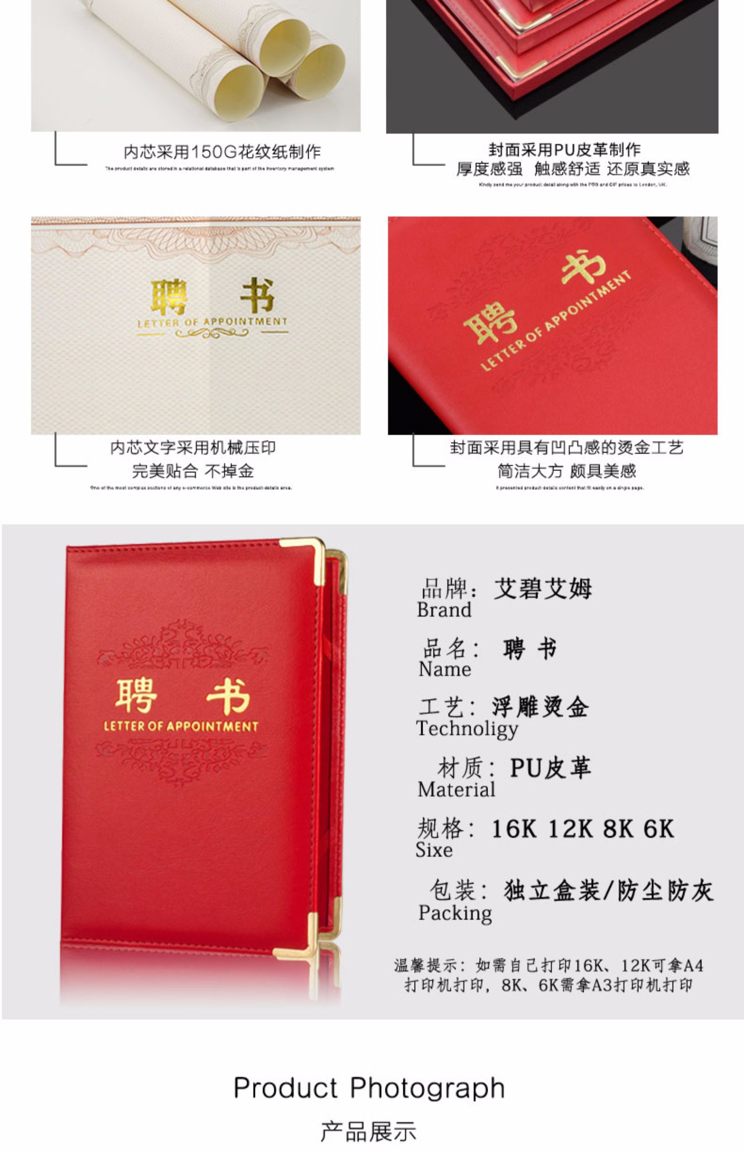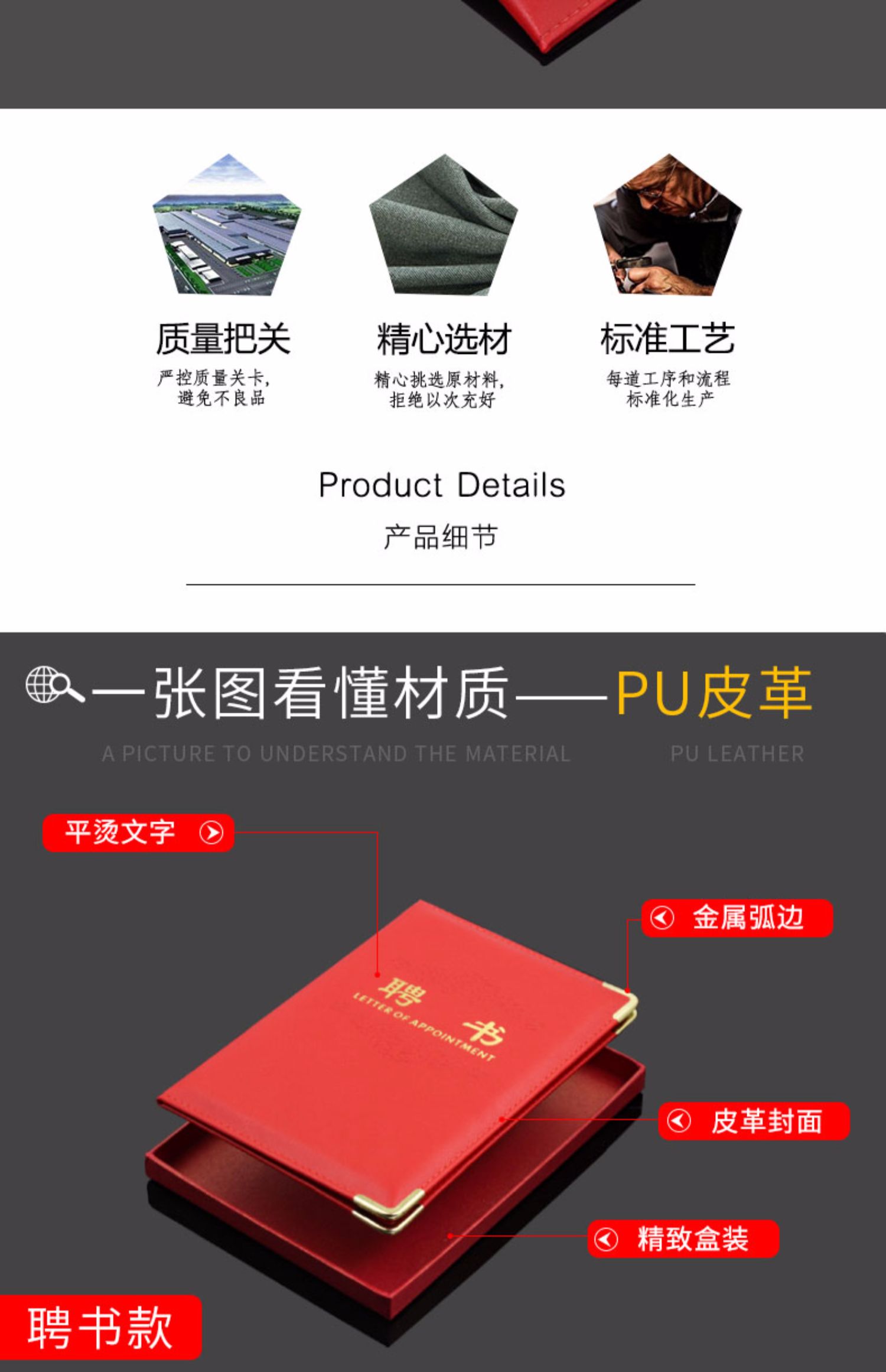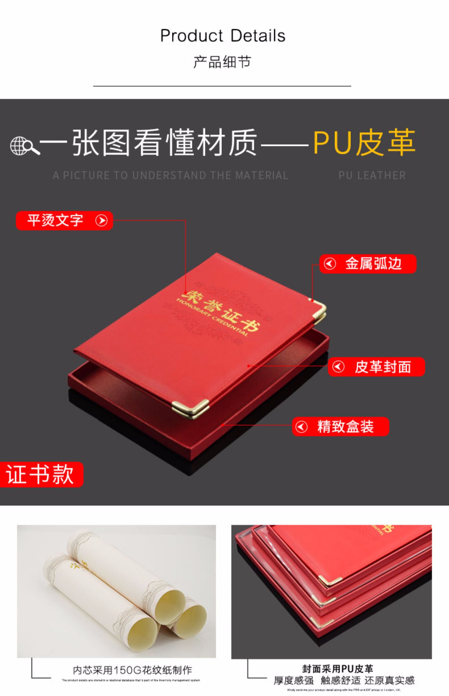 1074 / 皮革荣誉证书PU聘书皮面证书外壳奖状制作内页定制定制优秀员工证书聘请书封面定做获奖颁奖证书外壳内芯制