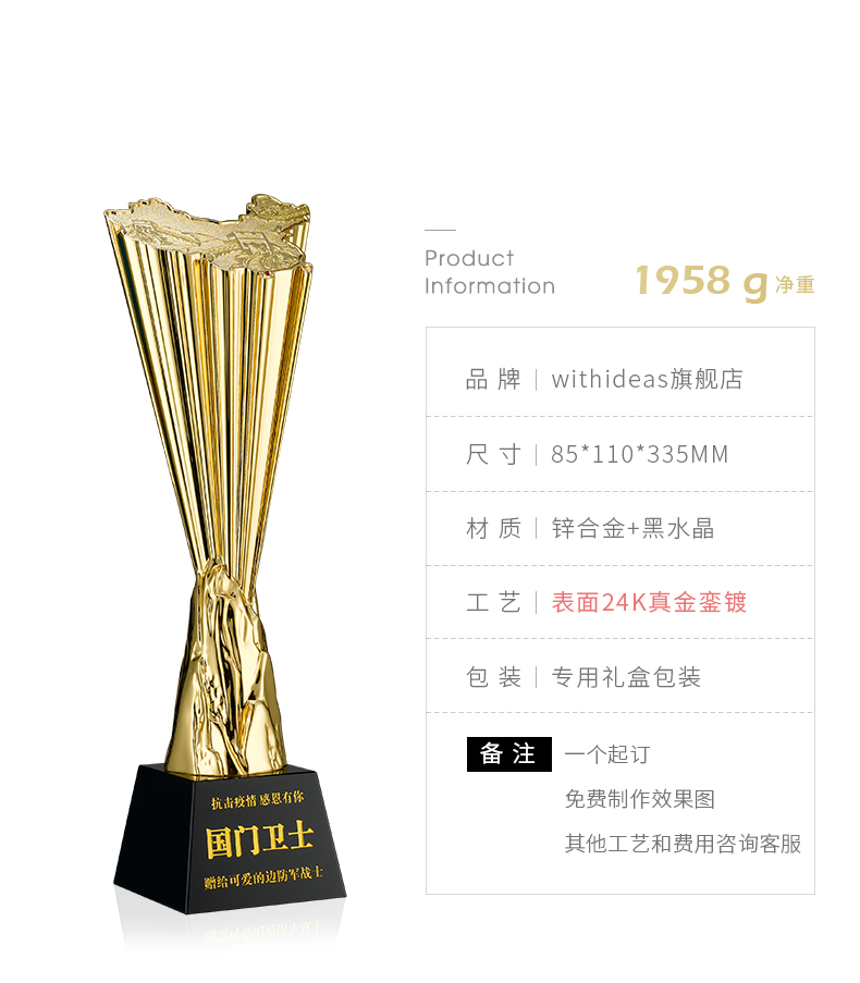 1083 / 年会镀金高级高端高档大气中国地图金属奖杯定制刻字销售冠军创意