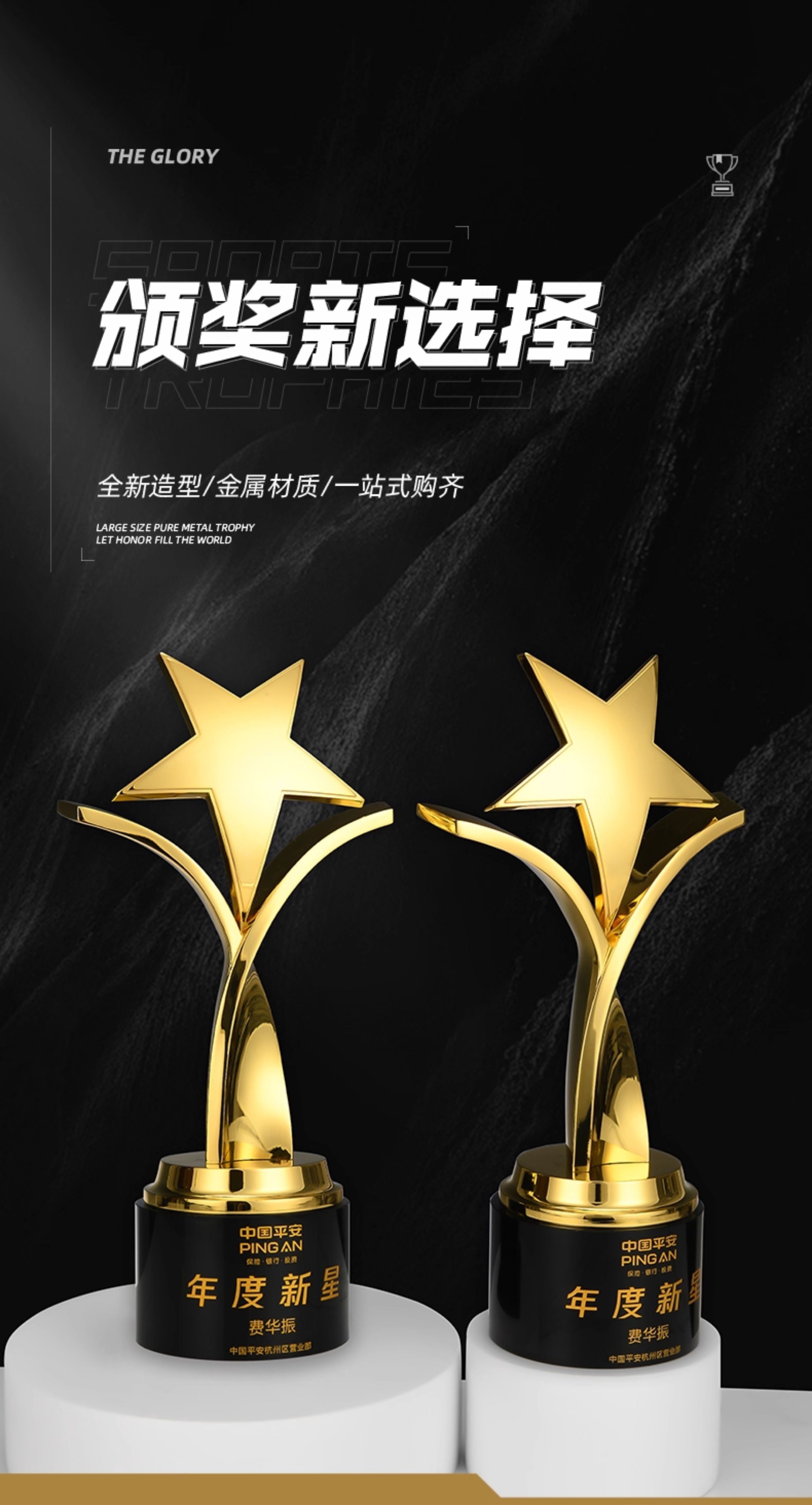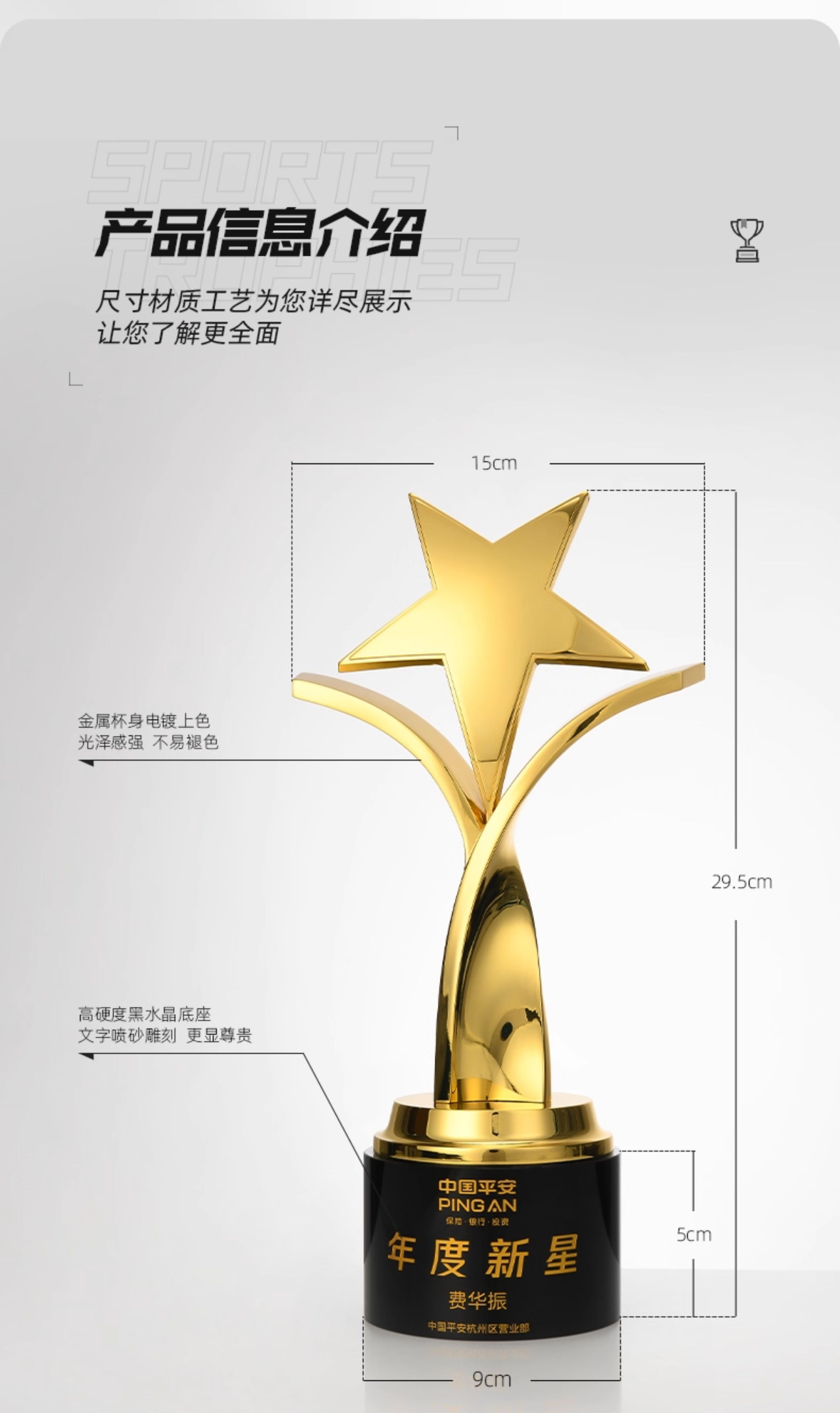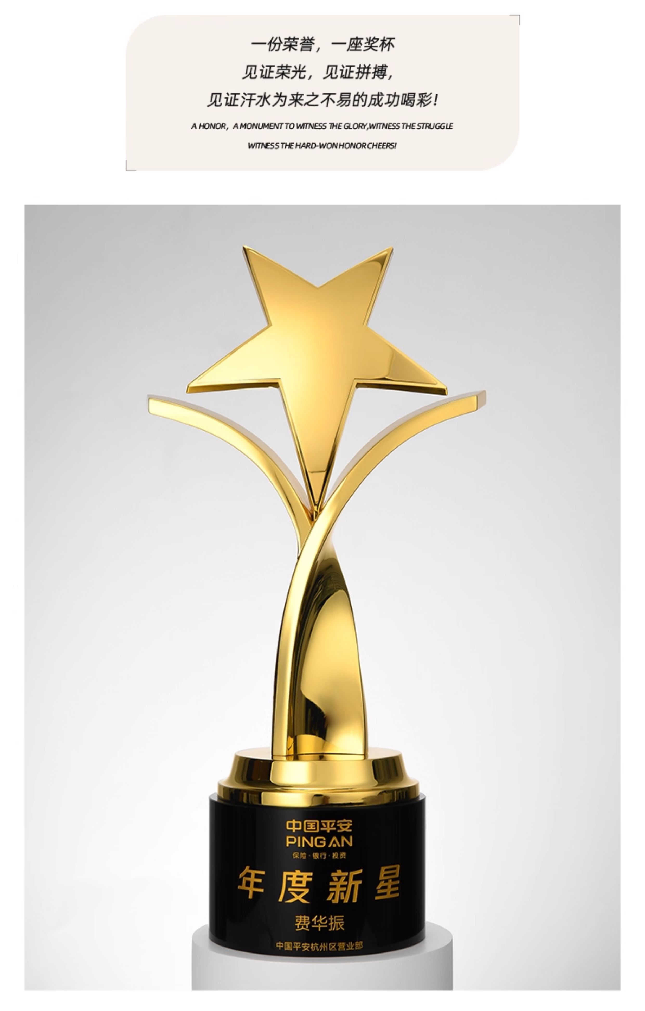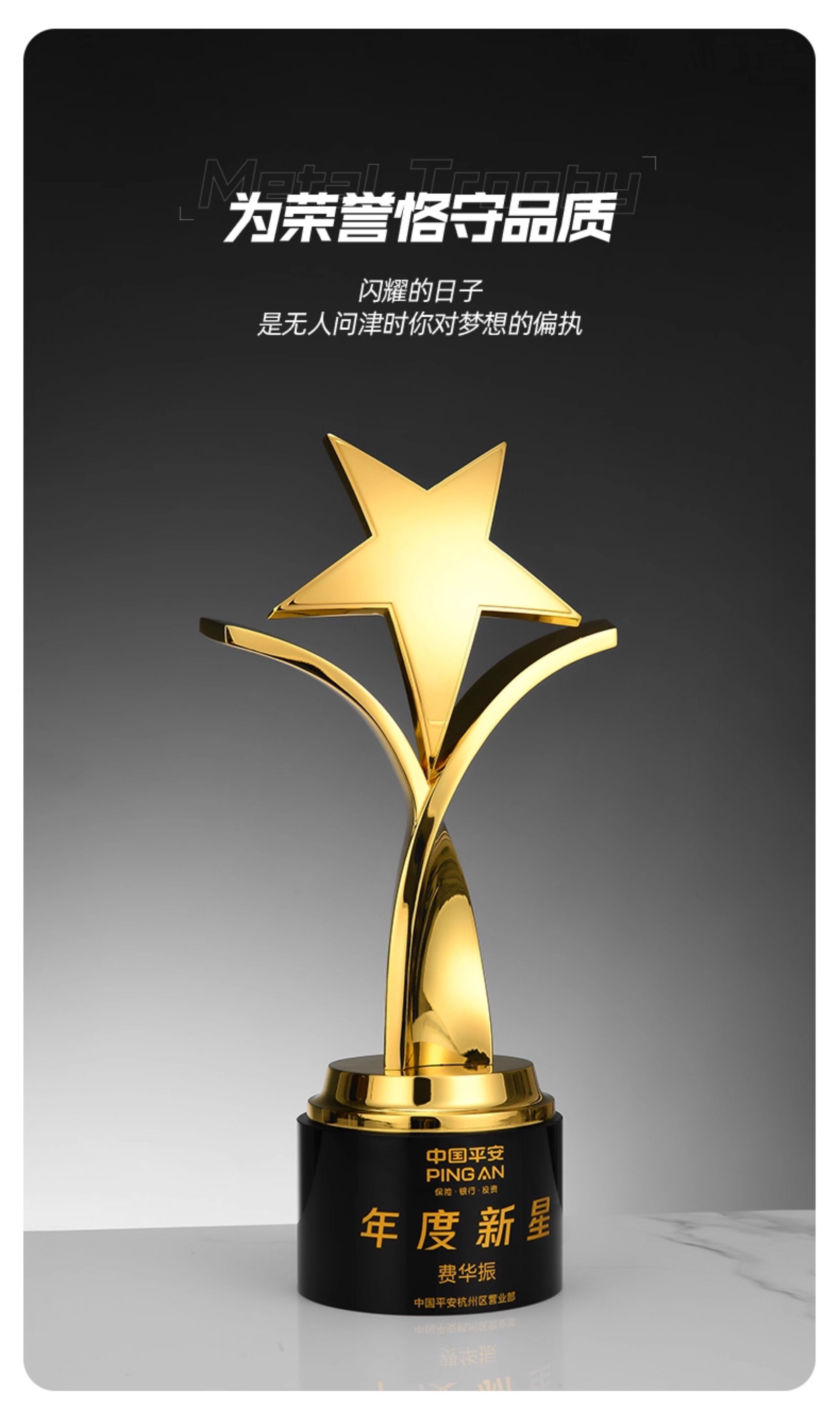 1094 / 创意五角星金属奖杯定制高档大气荣誉奖座订制做优秀员工免费刻字
