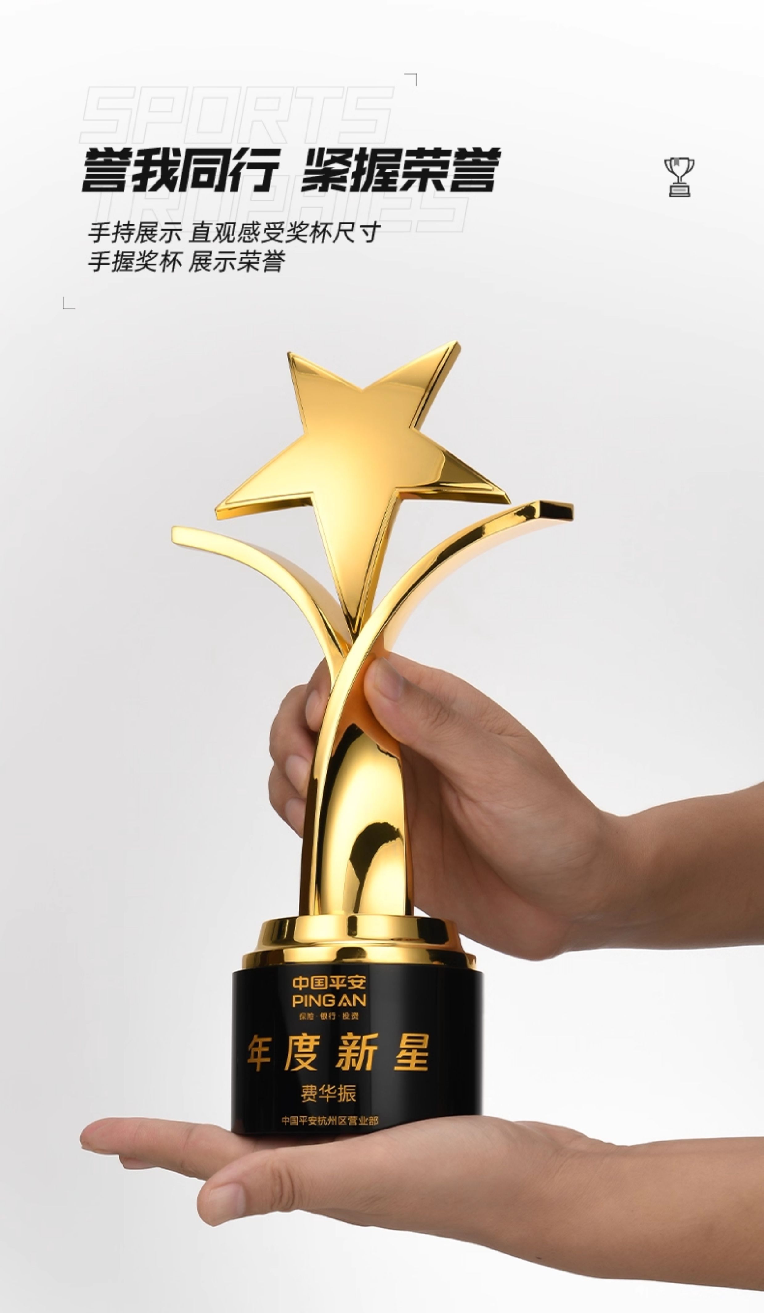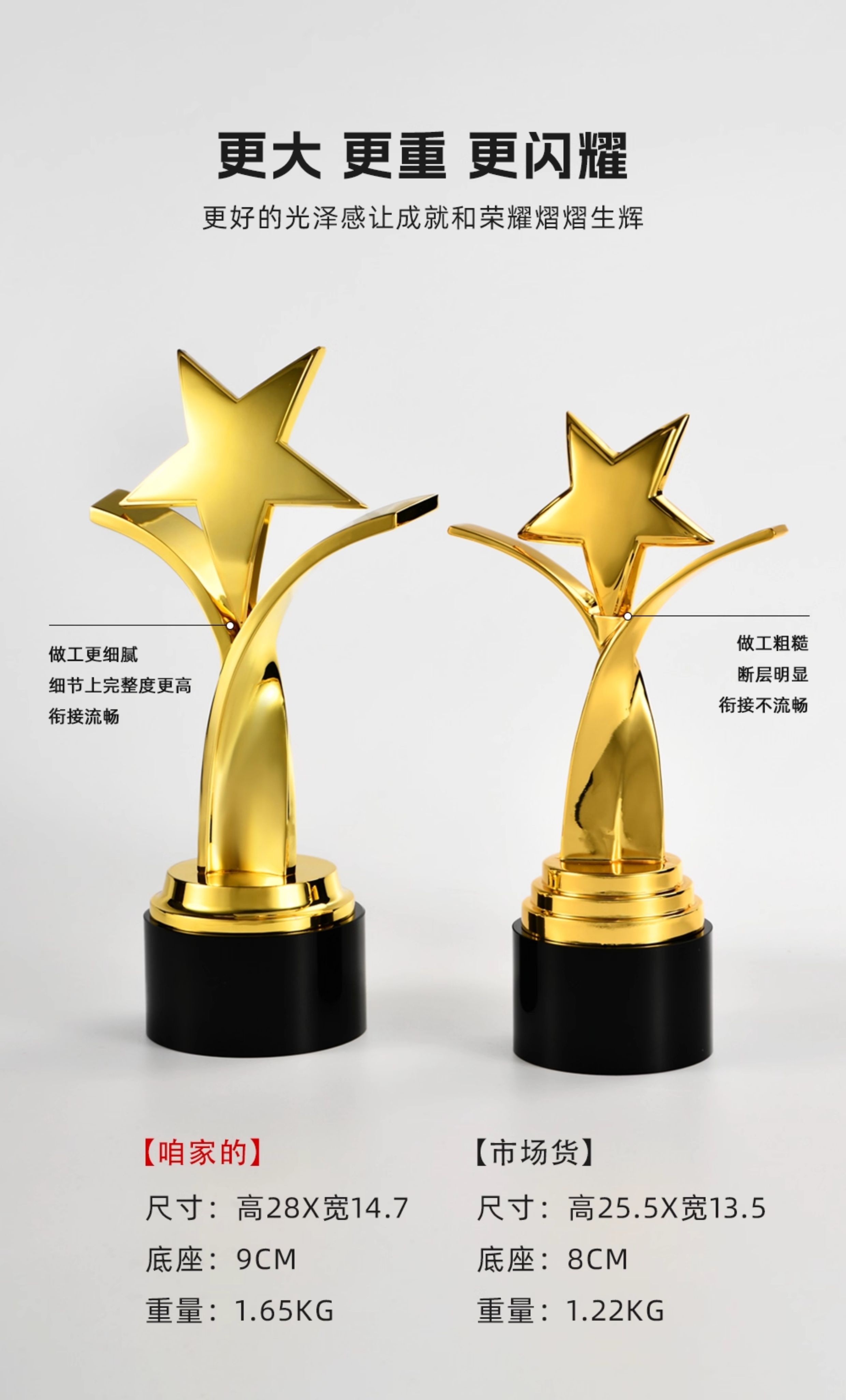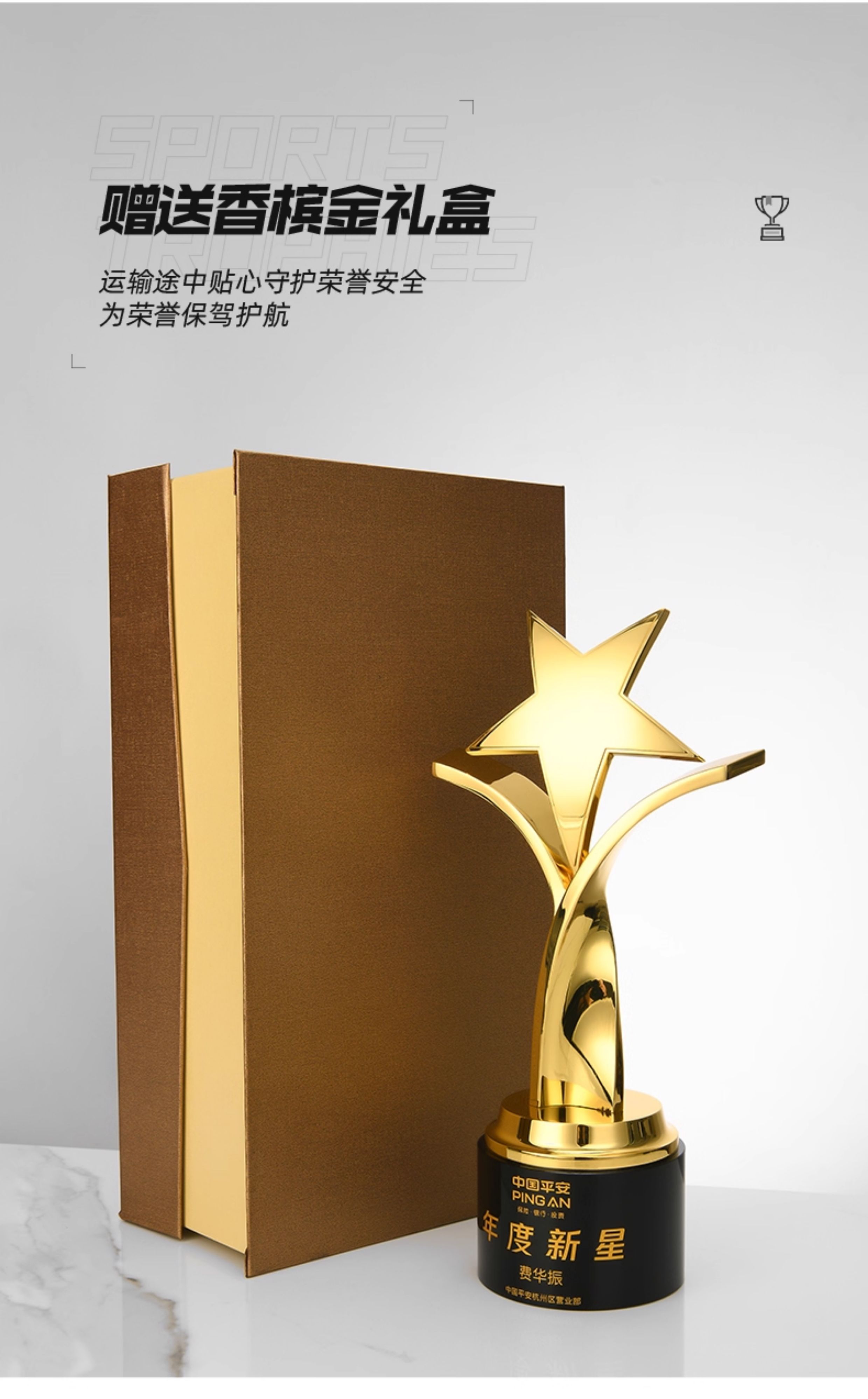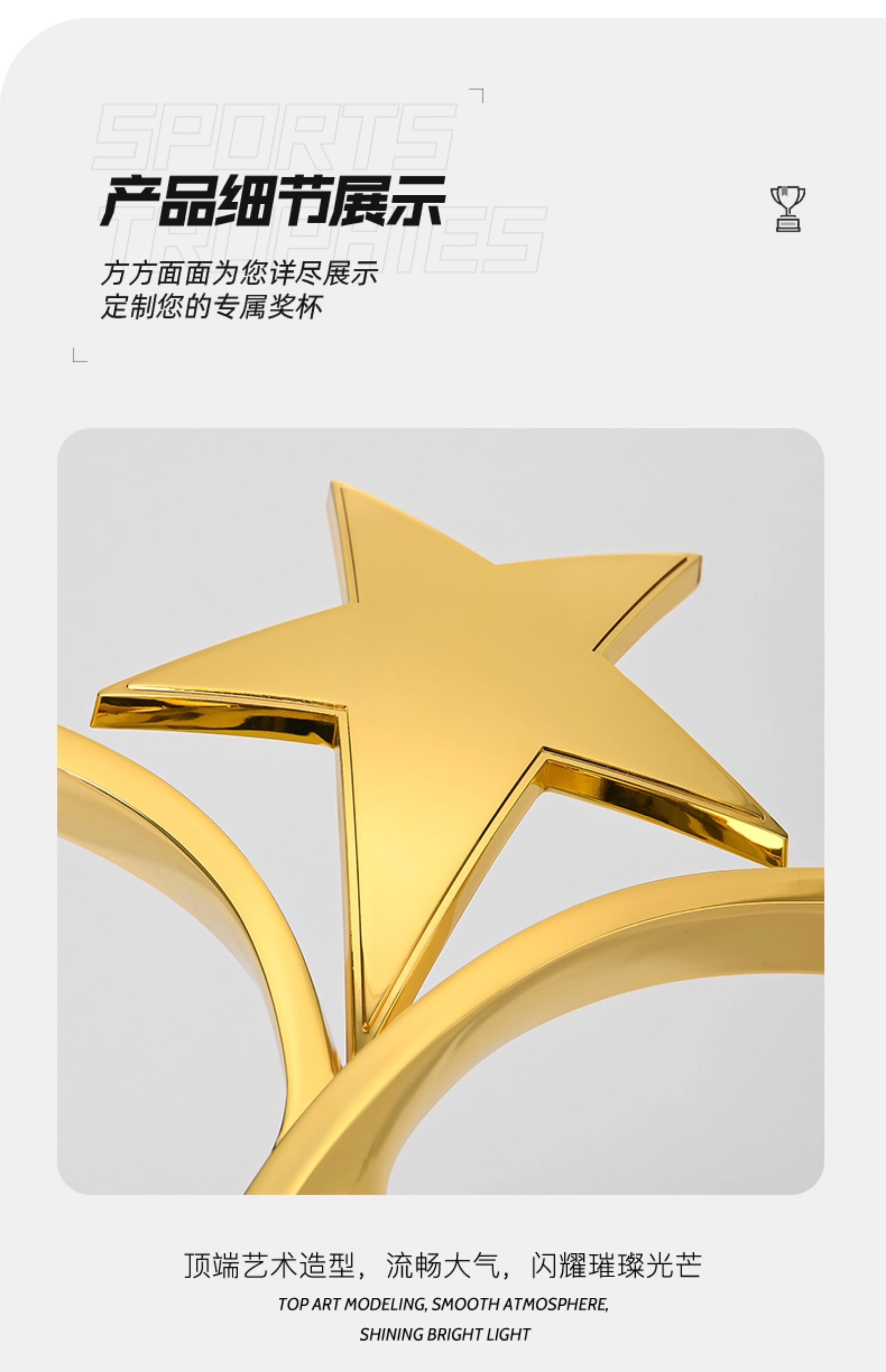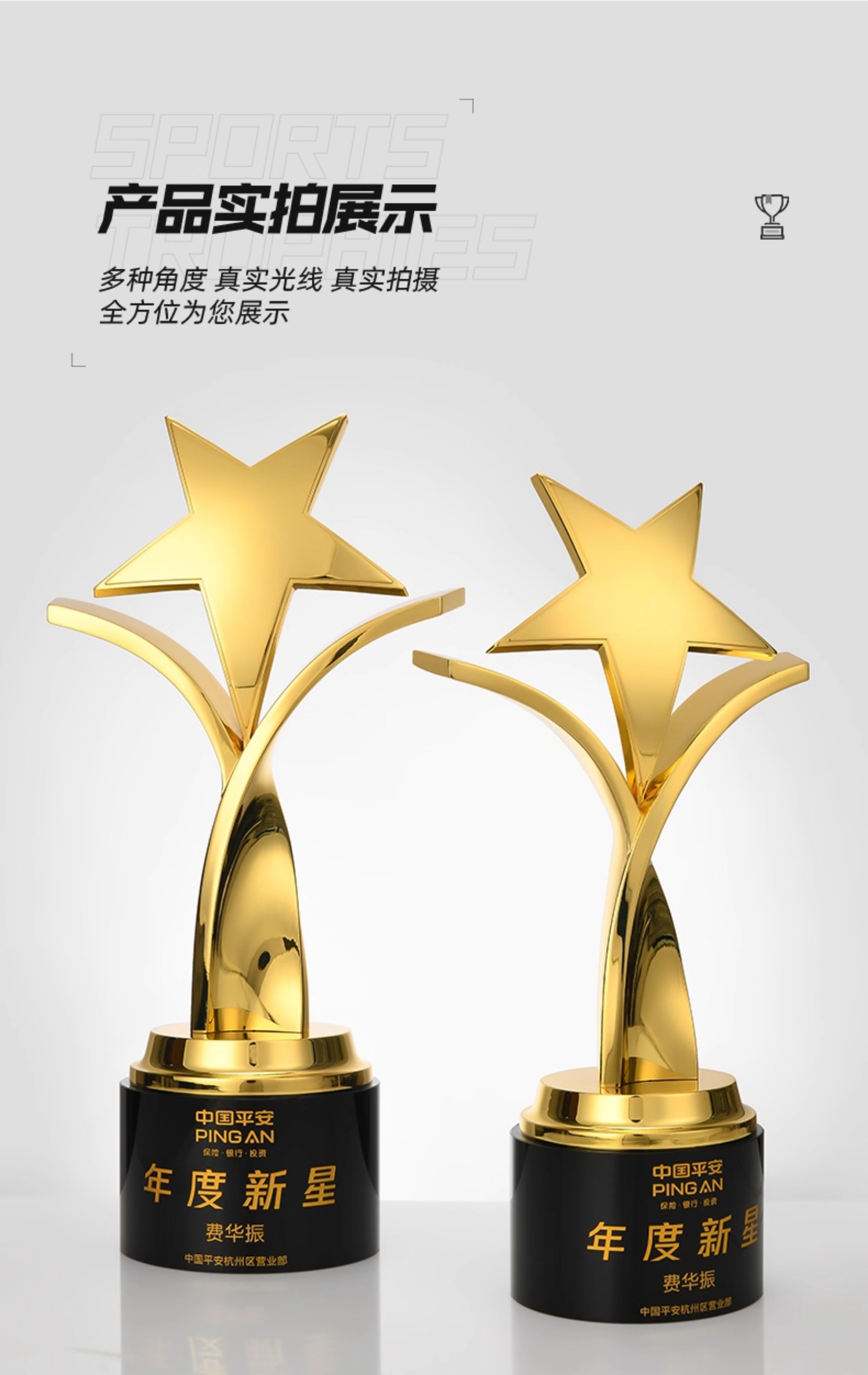1094 / 创意五角星金属奖杯定制高档大气荣誉奖座订制做优秀员工免费刻字