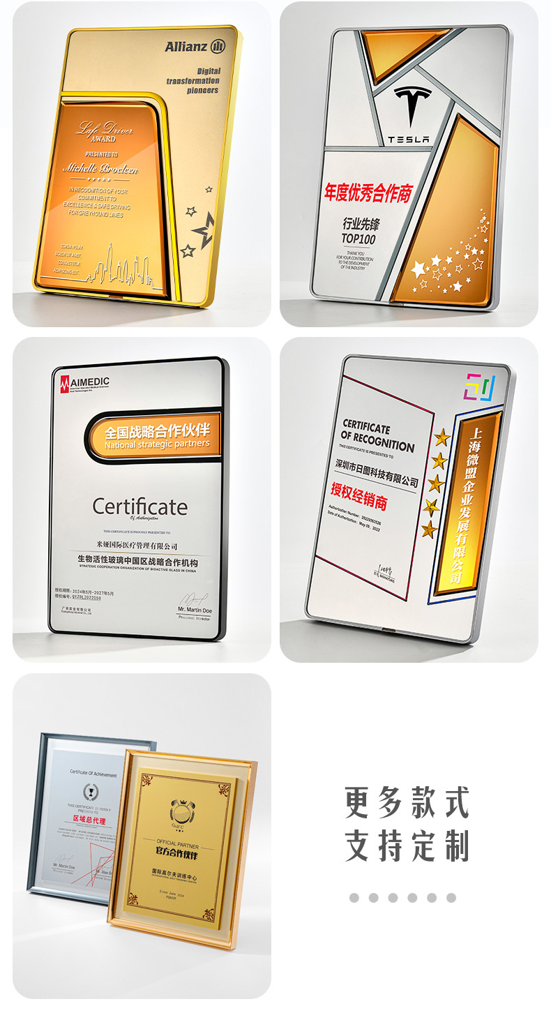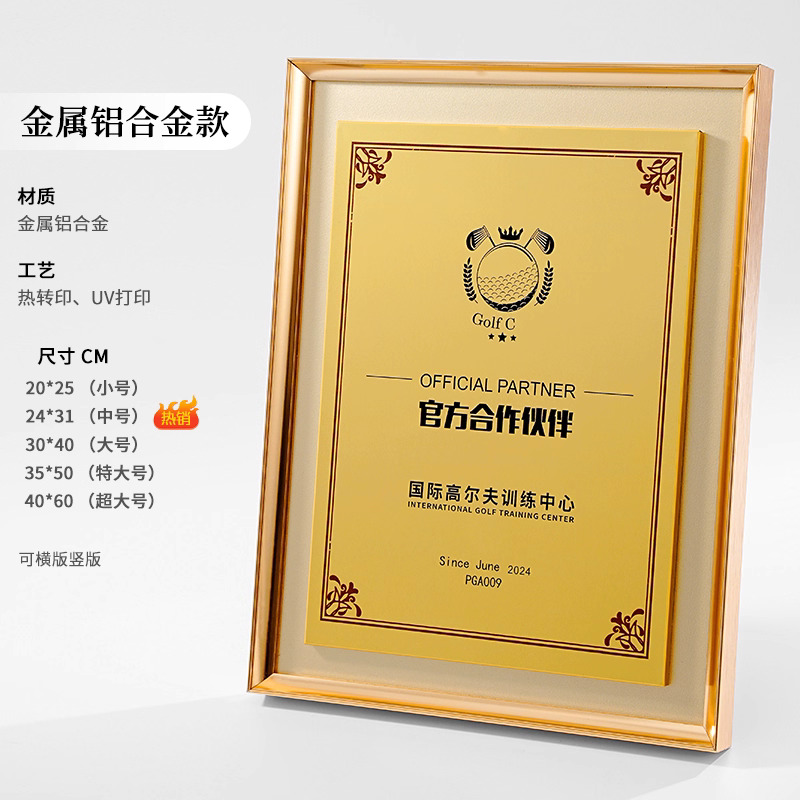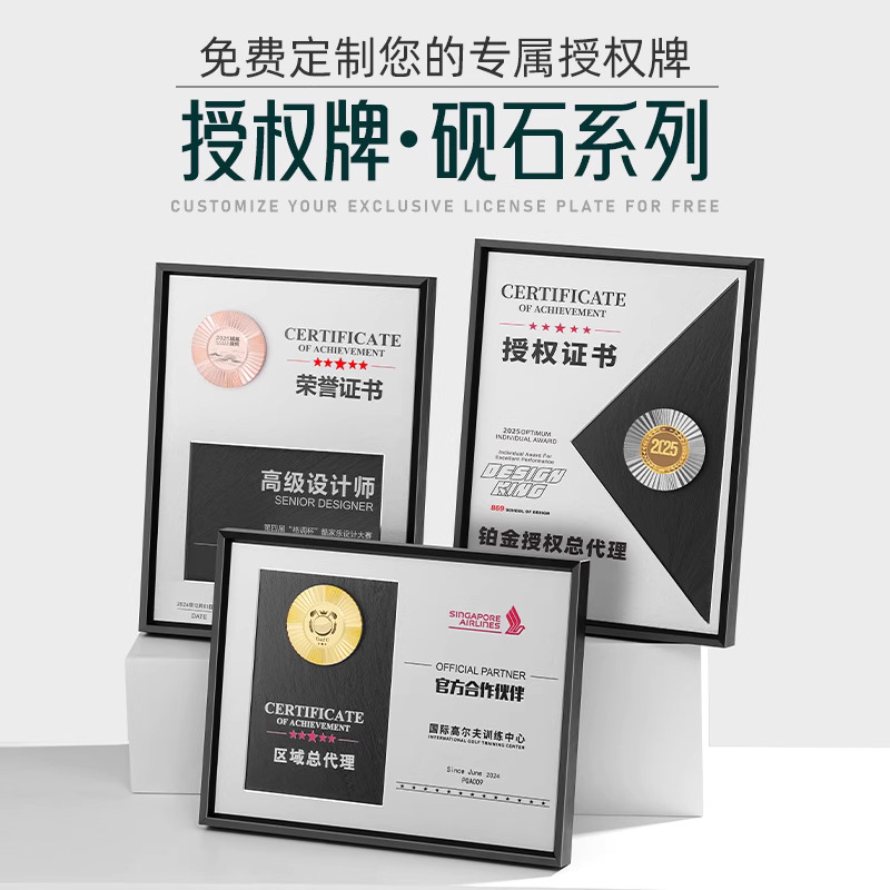 74 / 金属奖牌定制定做高档荣誉聘书代理加盟商铝合金牌匾授权牌订制