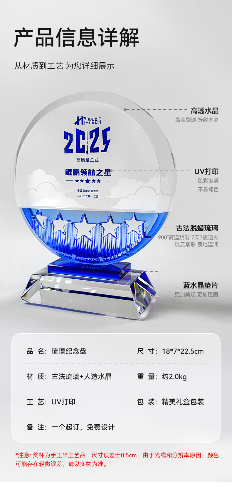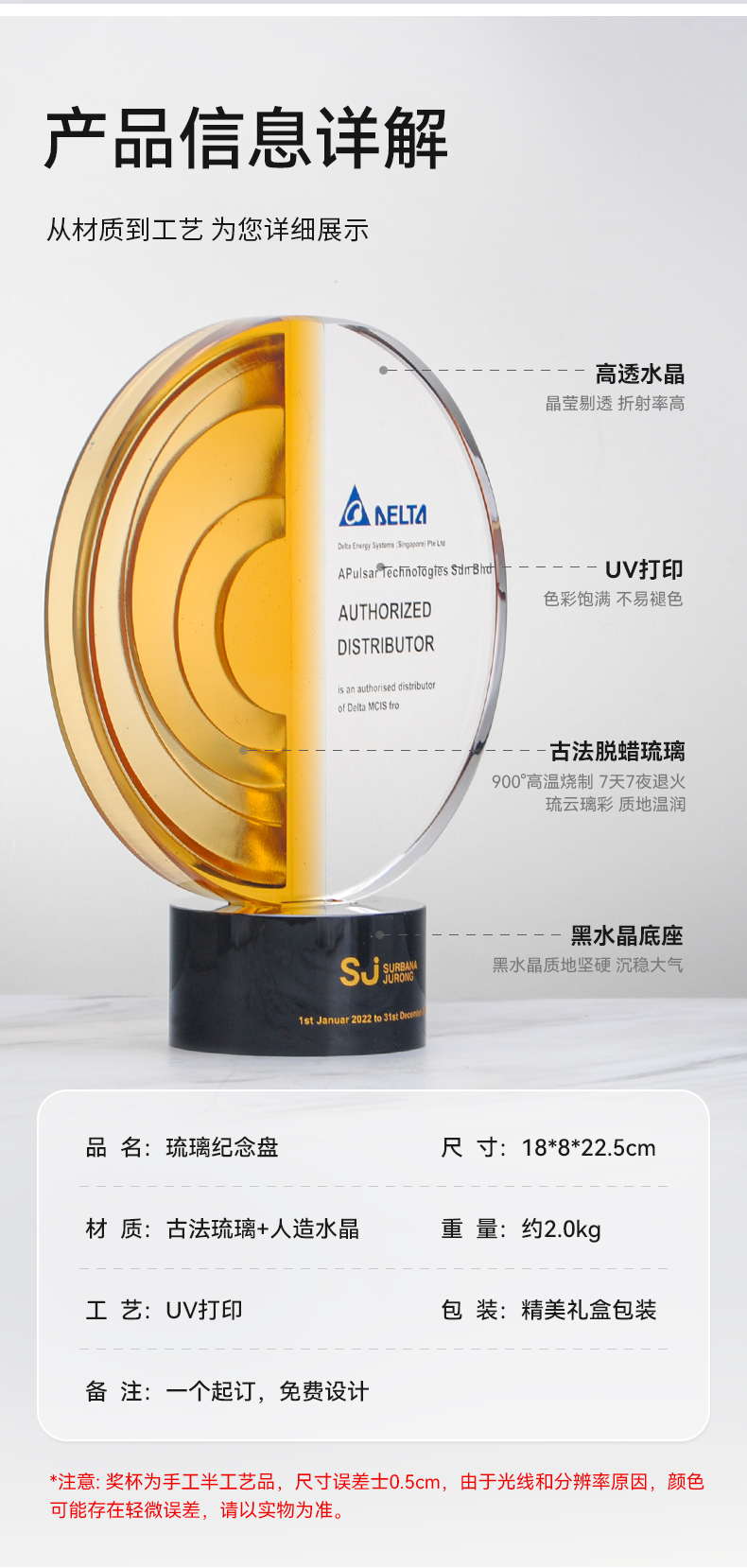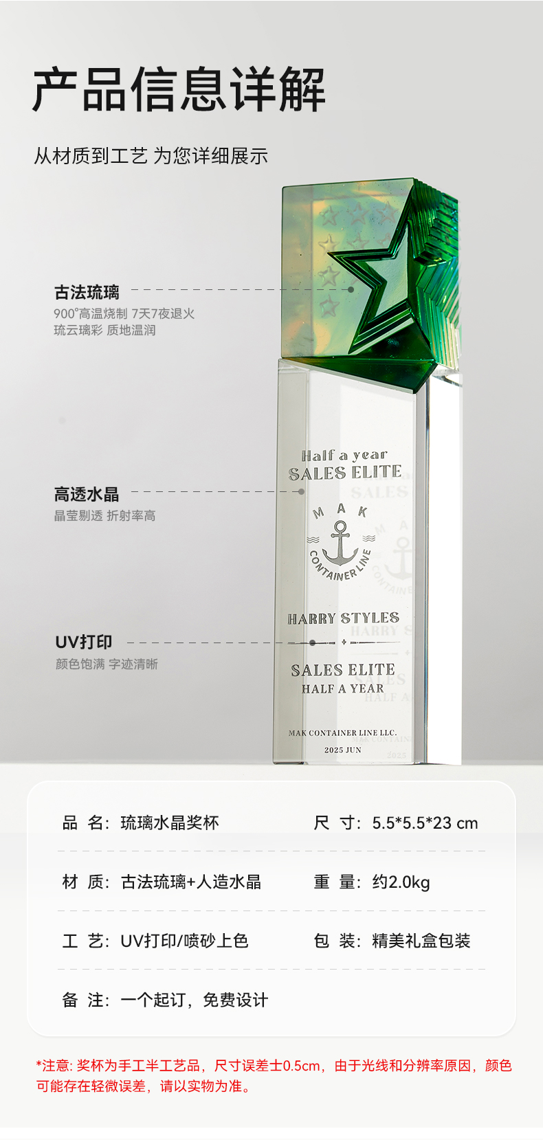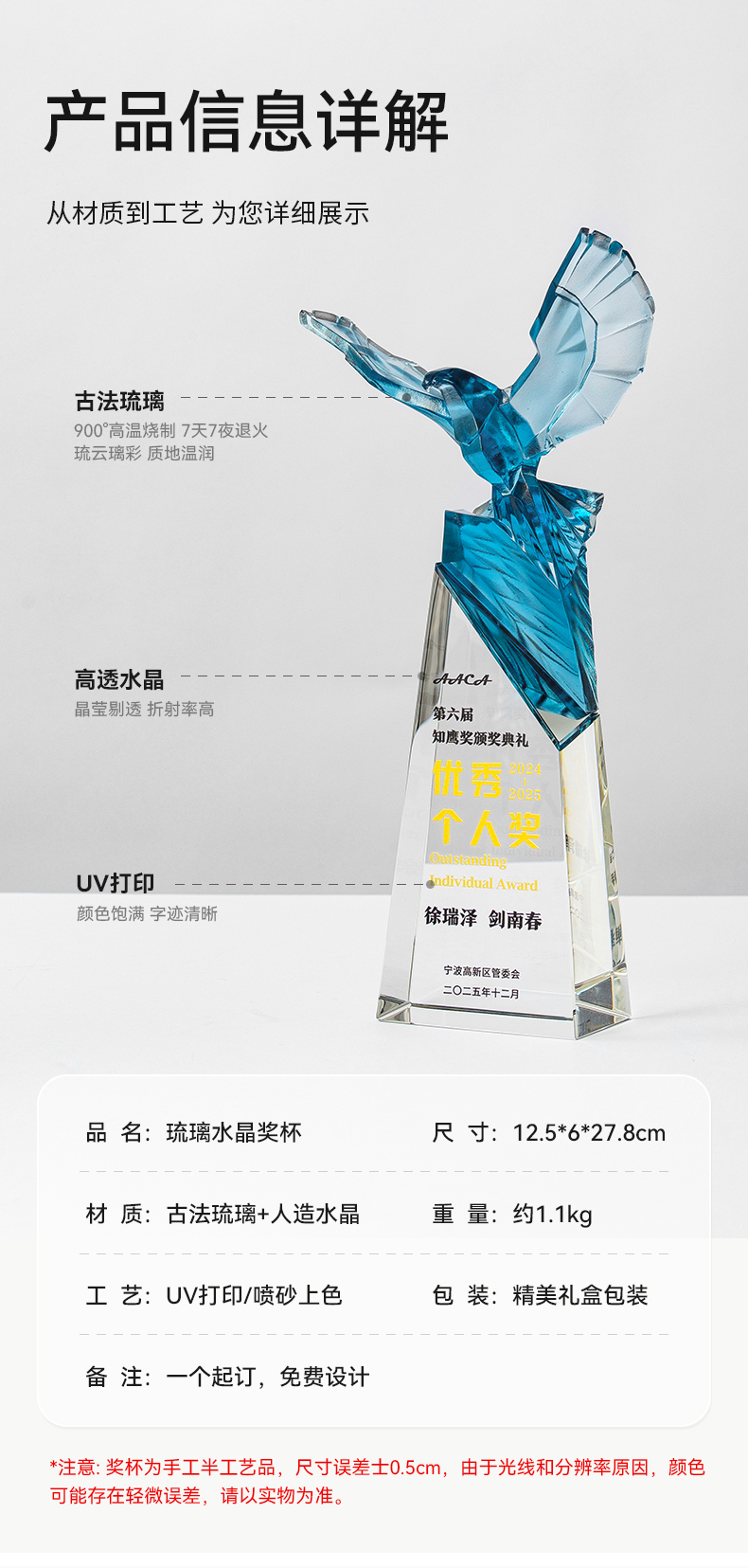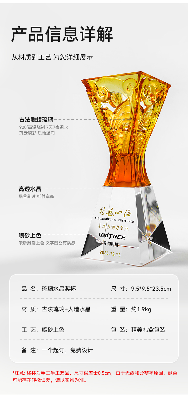 2 / 【2026新款琉璃水晶奖杯】定制定做公司年度优秀员工团队颁奖创意奖杯订制制作