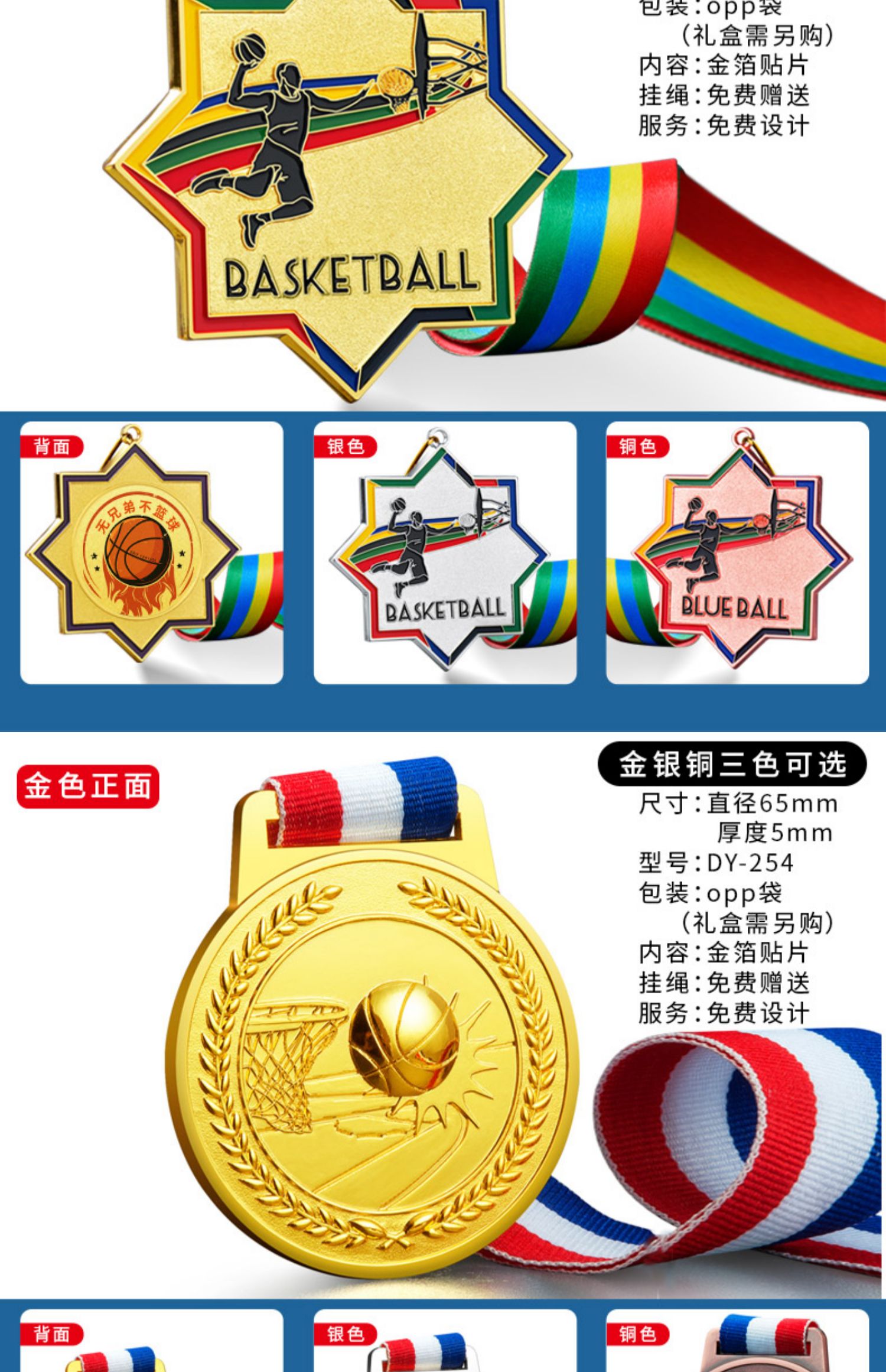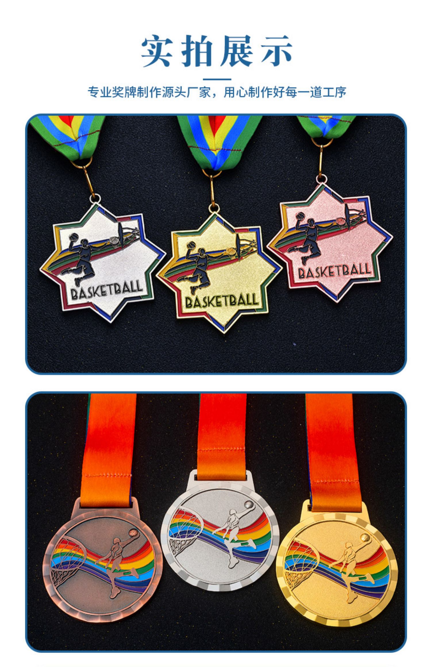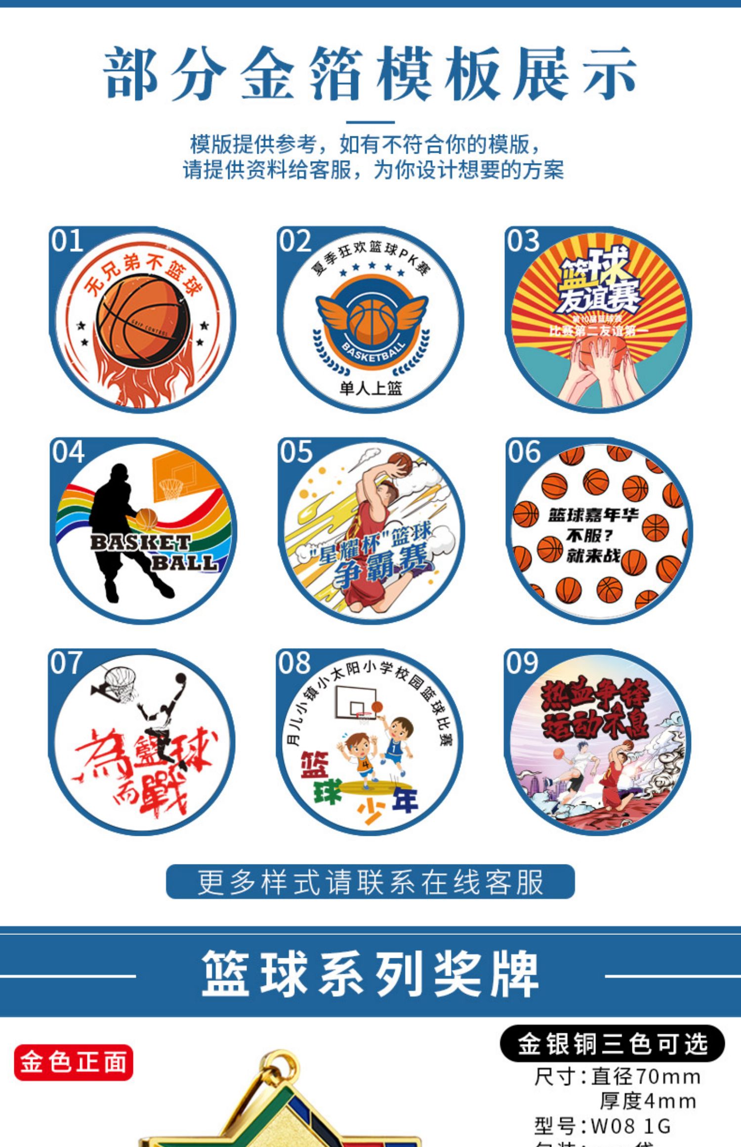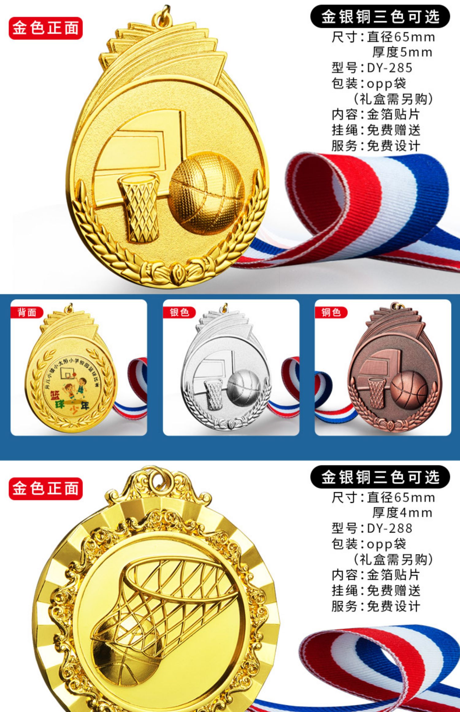 872 / 奖牌定制篮球运动赛事奖品金属荣誉挂牌定做金箔金牌儿童学校奖杯