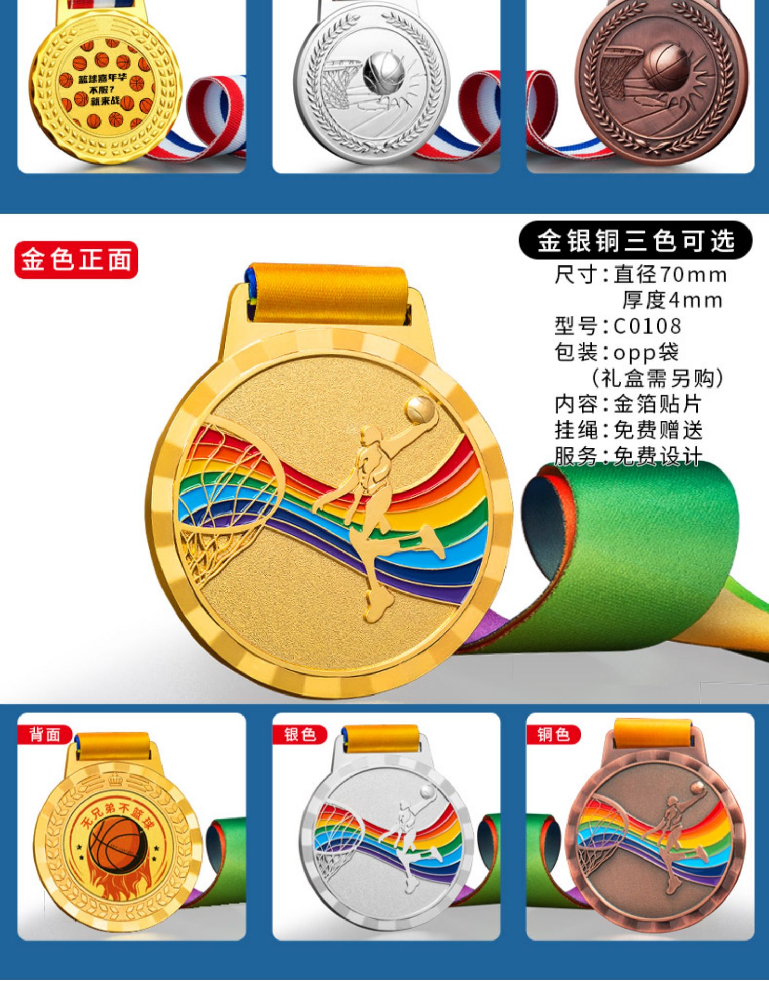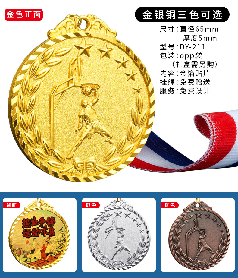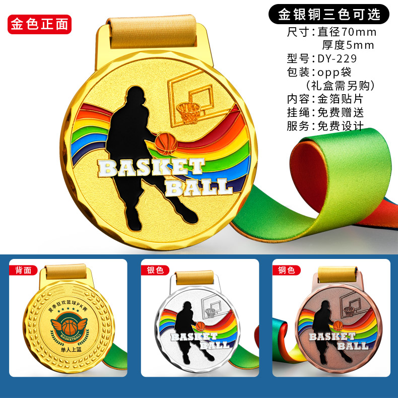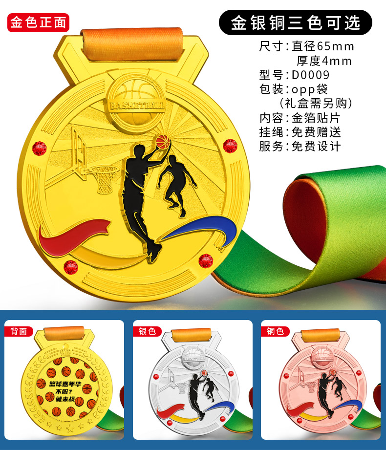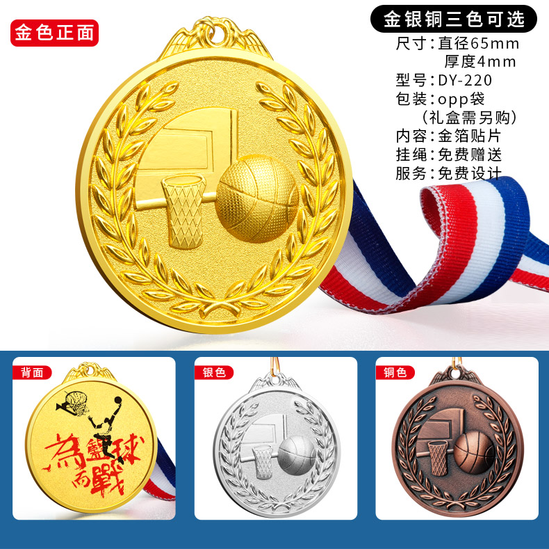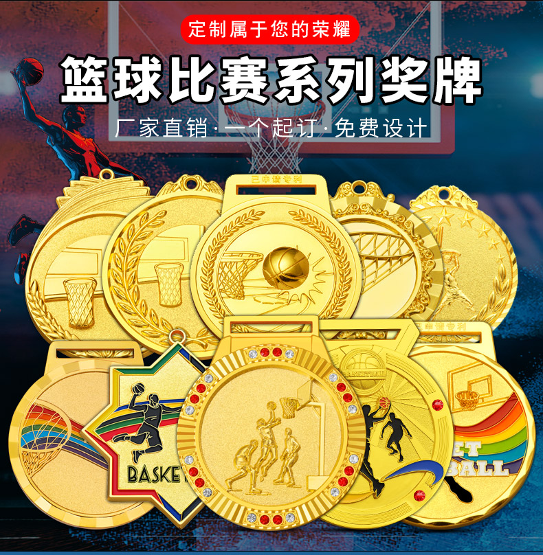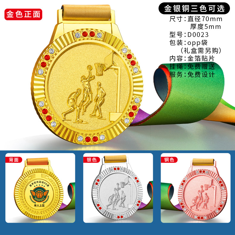 872 / 奖牌定制篮球运动赛事奖品金属荣誉挂牌定做金箔金牌儿童学校奖杯