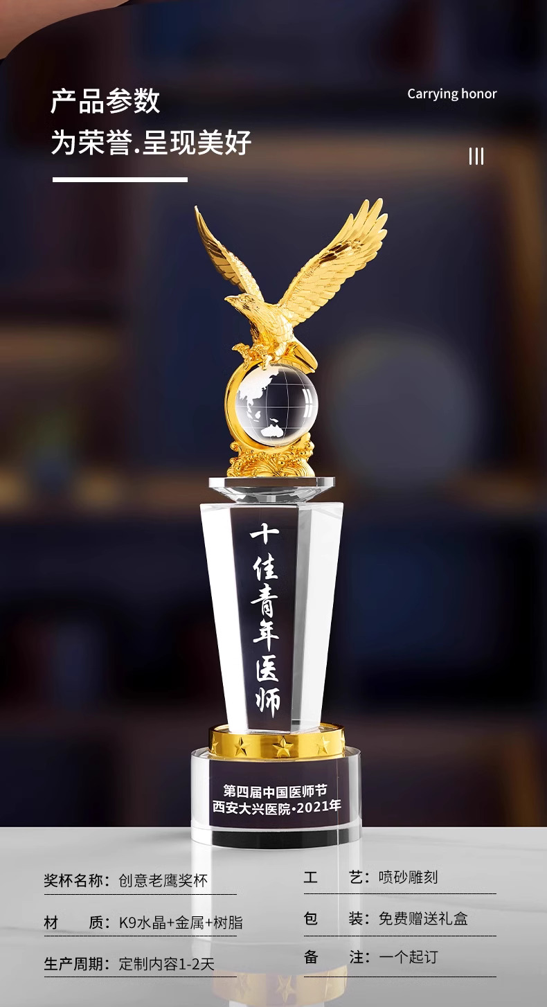 434 / 【雄鹰主题】高档牌金属老鹰精英水晶奖杯定制创意公司金鹰合作刻字高档纪念品