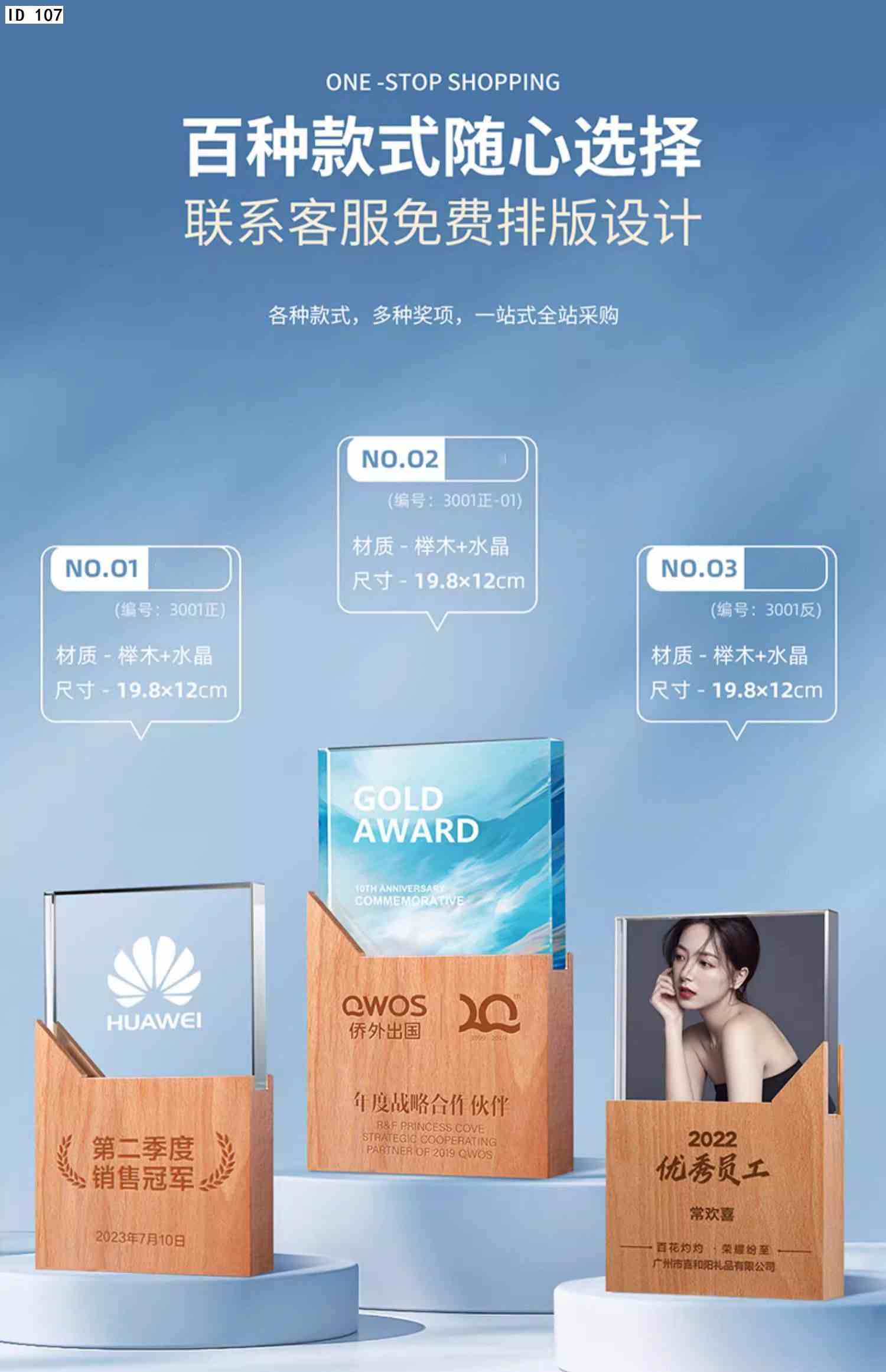 181 / 【实木水晶奖杯】定制创意奖牌订制年会优秀员工光荣退休运动会纪念品