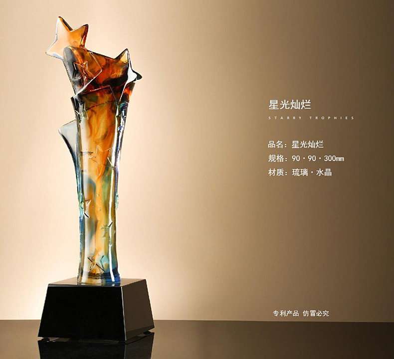 463 / 【古法琉璃奖杯】高档大气创意定制定做水晶五角星优秀员工高级感摆件