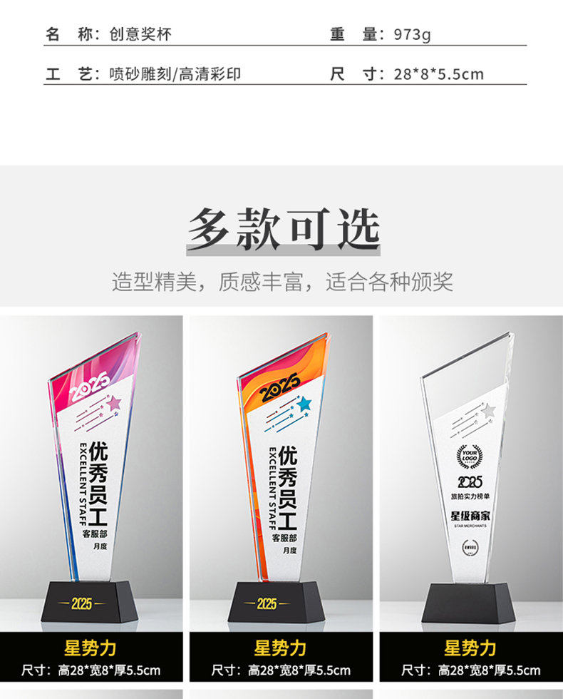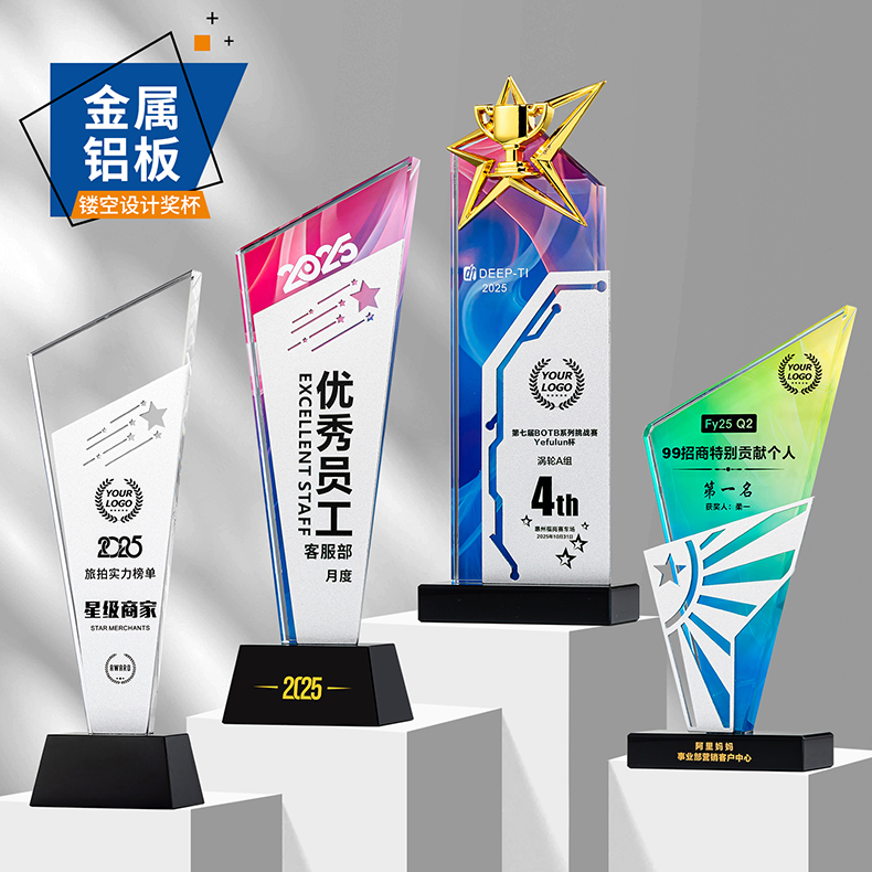 153 / 新款金属水晶奖杯定制定做年会颁奖优秀员工团队冠军比赛奖牌制作