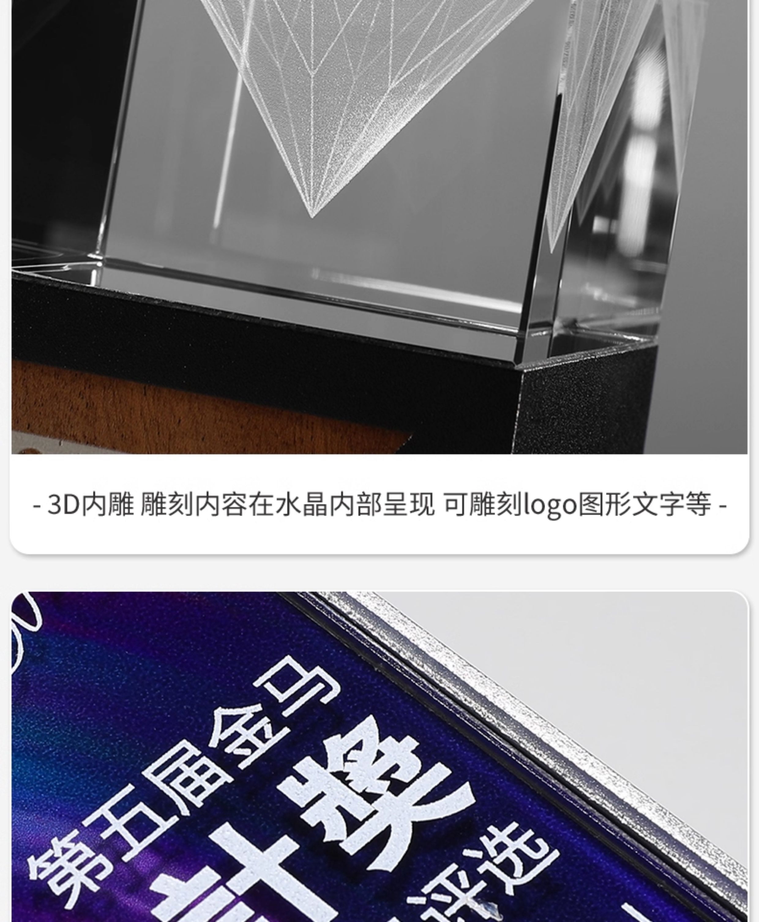 62 / 水晶奖杯定制创意高档金属3D内雕实木荣誉年会优秀员工奖杯订做