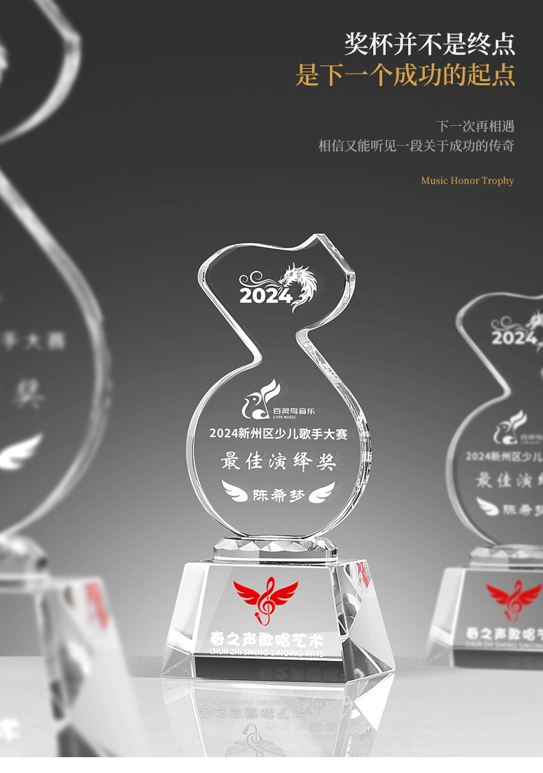 881 / 音乐音符水晶奖杯定制金话筒唱歌主持演讲辩论学生好声音比赛冠军