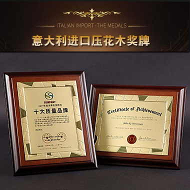 531 / 成都意大利进口木质奖牌定制订做高端商会牌匾加盟授权…