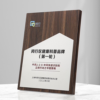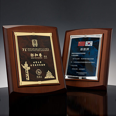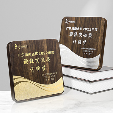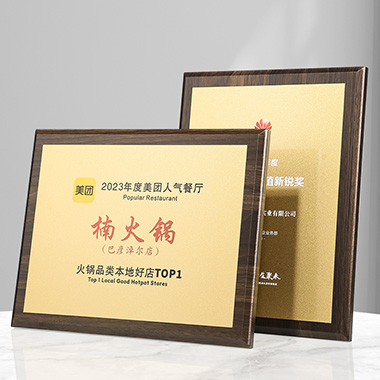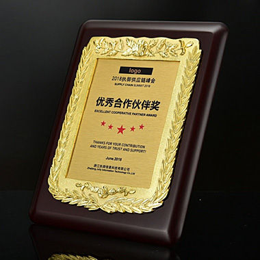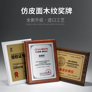524 / 成都高档仿胡桃木奖牌定制定做企业公司品牌授权牌优秀…