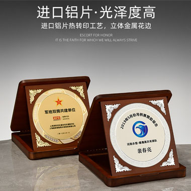 525 / 成都角压花铝片奖牌创意奖牌定制定做胡桃木质荣誉牌匾…