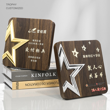 513 / 成都金属五星胡桃木奖牌木质奖牌定制胡桃实木加盟牌匾…