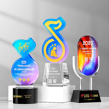 881 / 成都音乐音符水晶奖杯定制金话筒唱歌主持演讲辩论学生…