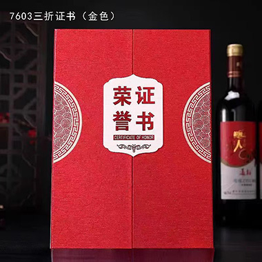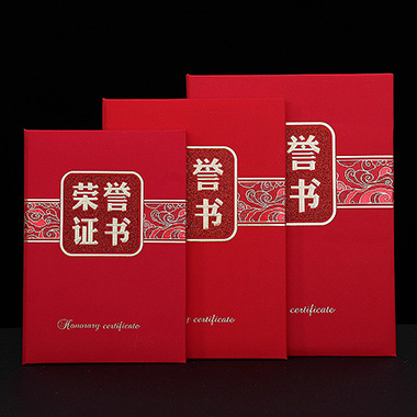 1062 / 成都三折新款荣誉证书外壳封面奖状定制定做奥利丝红…