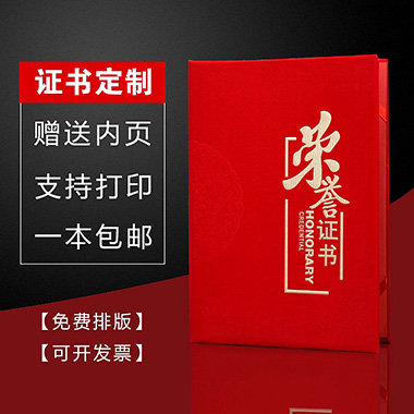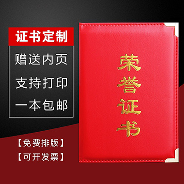 1065 / 成都定制荣誉证书聘书外壳制作内页打印A4内芯封面…