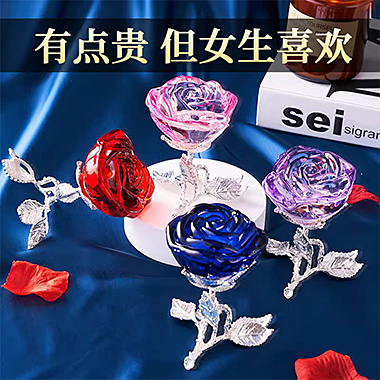 918 / 成都【水晶玫瑰花】工艺品生日礼物新品高级感永生花桌…